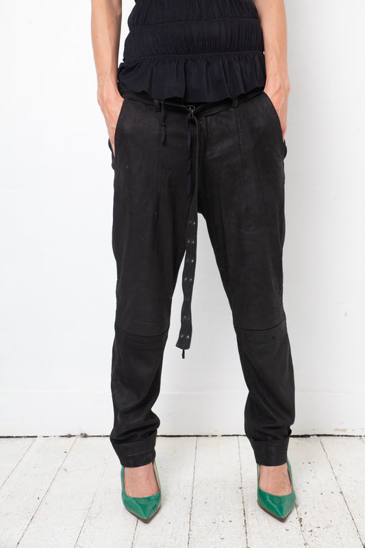 A.F. Vandervorst 2000's black leather loose trousers with belt