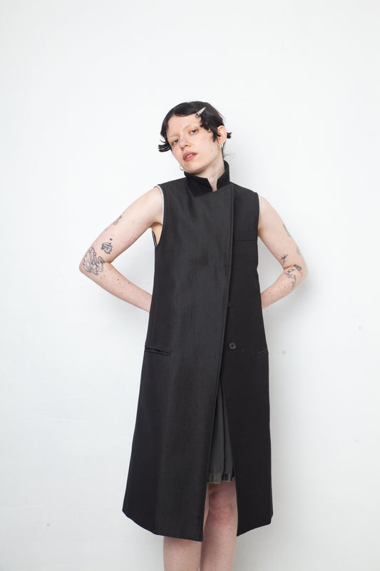 Martine Sitbon wool grey sleeveless blazer with upright collar