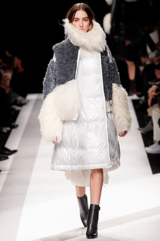 Sacaï Fall 2014 mongolian fur sleeveless leather jacket
