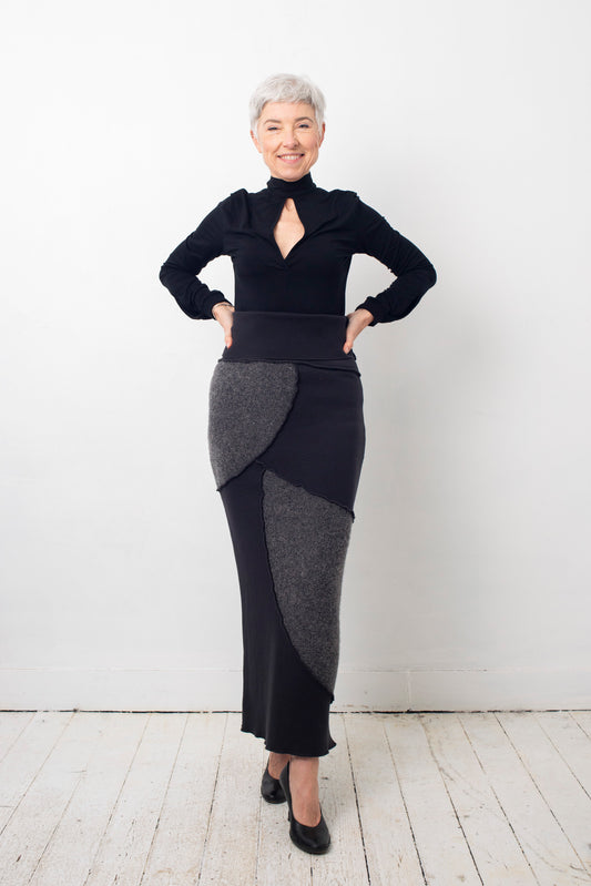 Helena van Haeren 2000's patchwork grey and black wool skirt