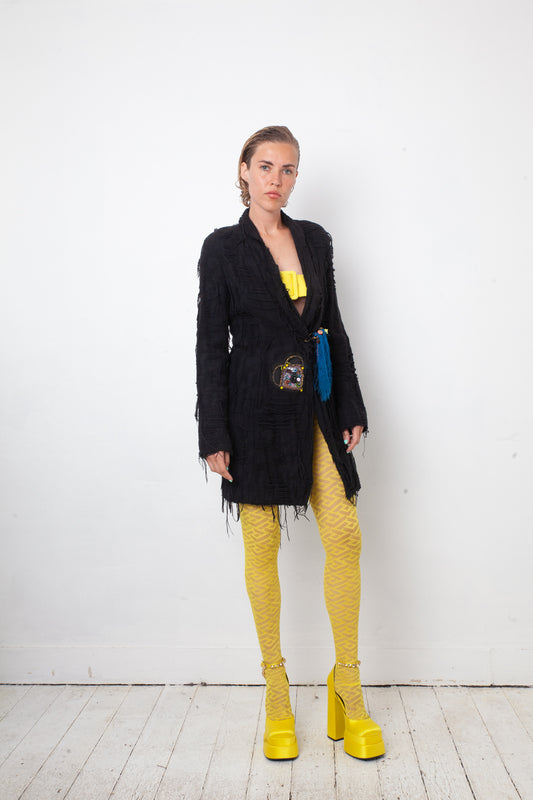 Christian Lacroix Bazar 90's distressed black knit jacket with brooch detail