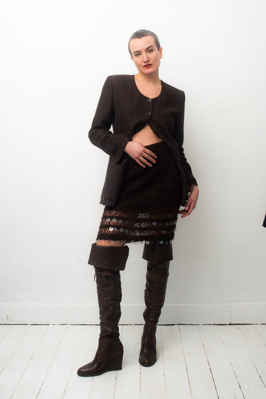 Christian Lacroix Bazar 90's brown wool knit skirt with sequins