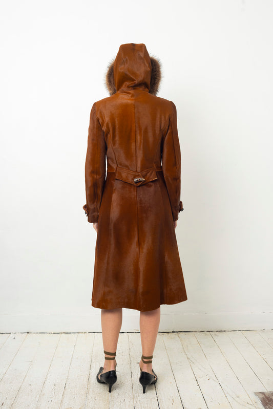 Dolce & Gabbana 2000's calf hair duffle coat with marmot fur collar