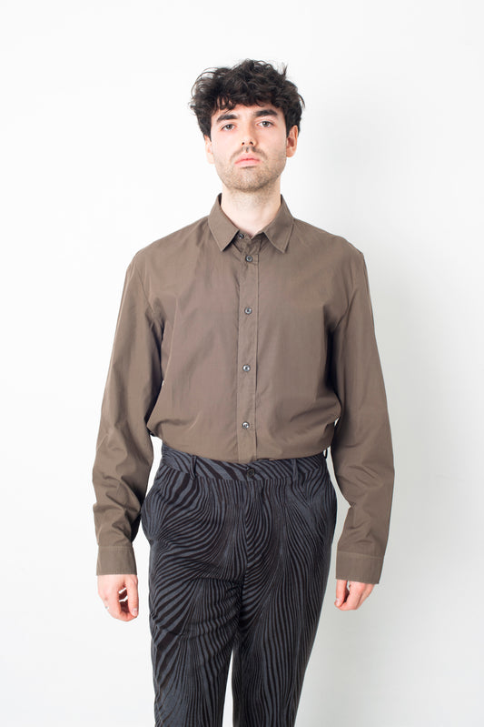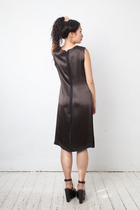 Martin Margiela Fall 2005 silky brown dress with raw hems and reversed zipper closure