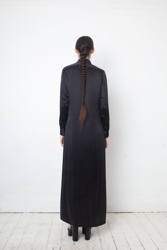 Margiela FW 2007 silk black button down shirt dress with attached tie
