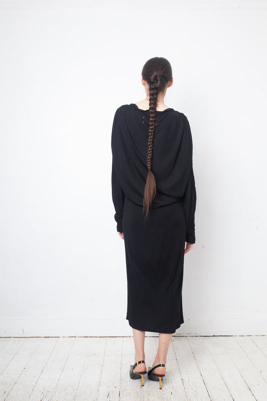 Margiela FW 2007 black long sleeve dress with circle shaped draped back