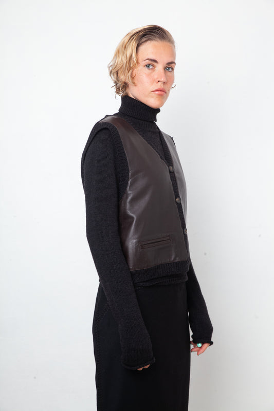 DKNY 90's wool and leather twinset (turtleneck & gilet)