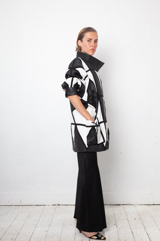 Yves Saint Laurent 80's black and white leather harlequin coat