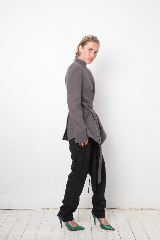 Ann Demeulemeester 2000's grey wool military style jacket with belt