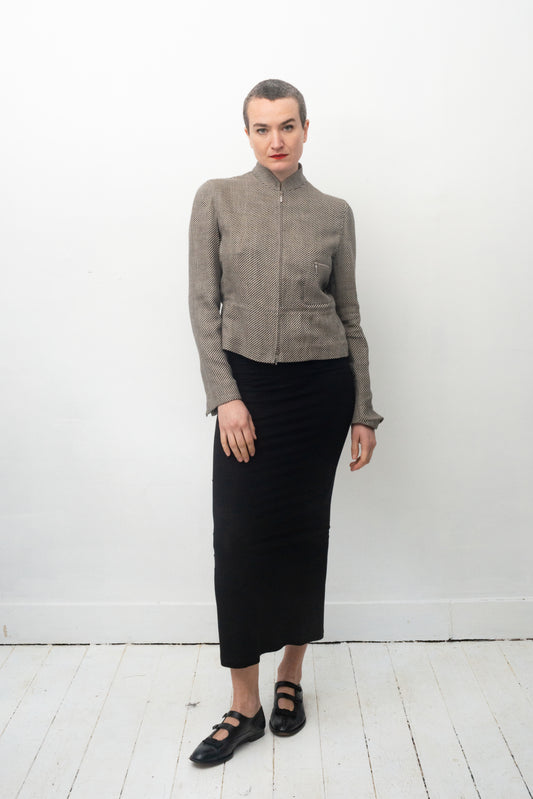Armani 2002 linnen striped knit beige zipper jacket with mao collar