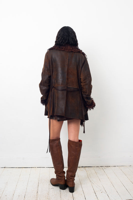 Sylvie Schimmel 90's brown shearling coat with mongolian sheep collar and cuffs