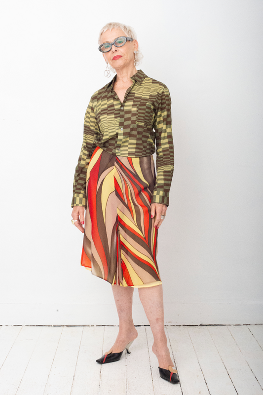 Gianni Versace FW 2000 multicolour swirl silk skirt