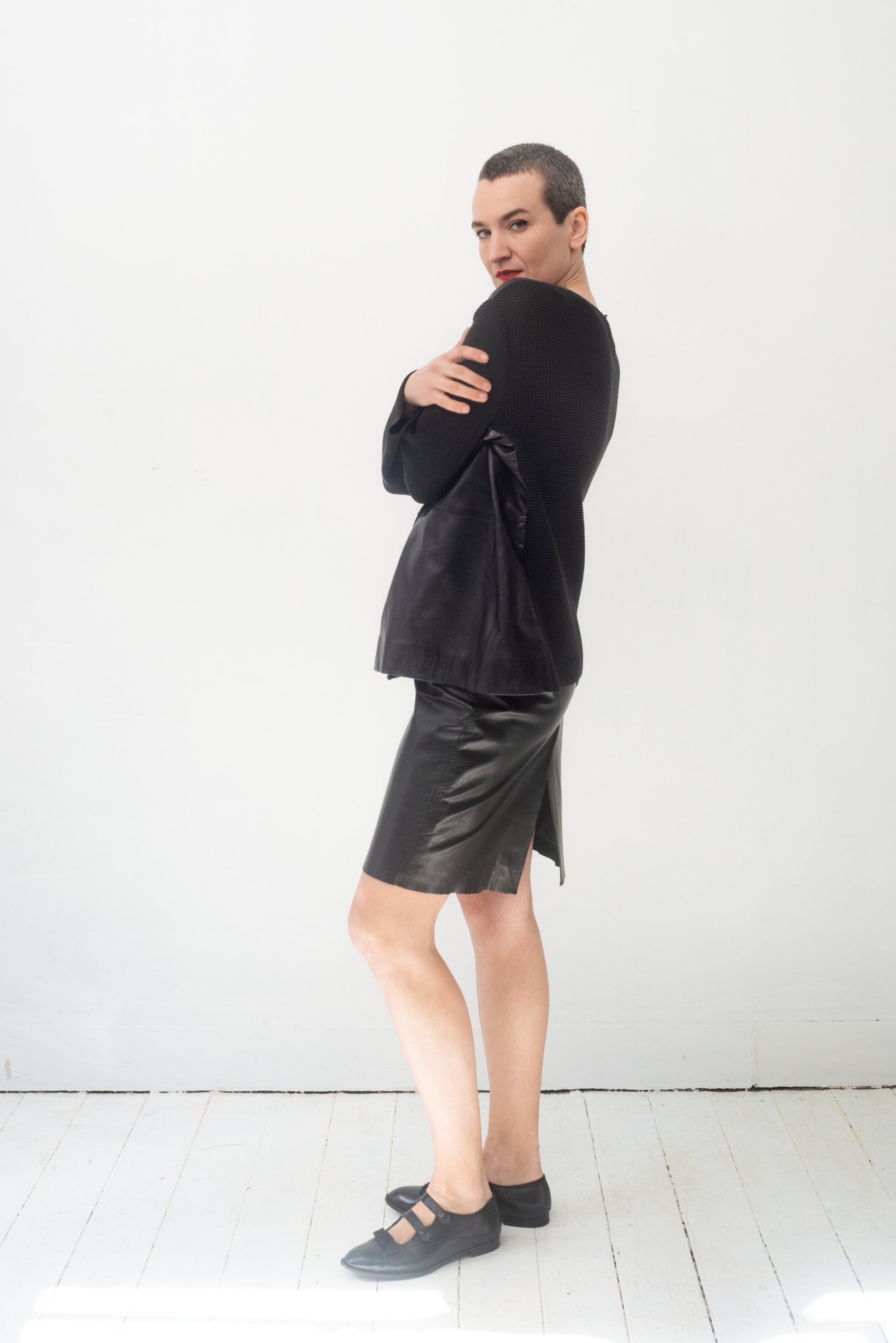 Here worn with a 90's Gianfranco Ferre leather knit jacket, also available online