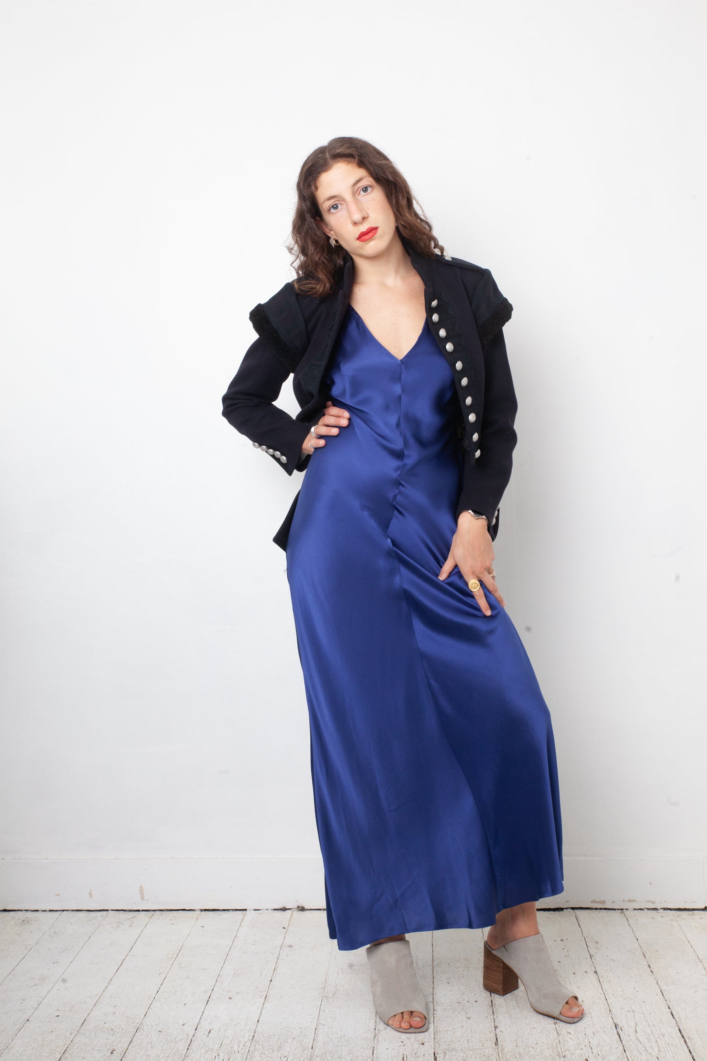 Alberta Ferretti 2010's vivid blue silk slip gown with a beautiful draped open back.