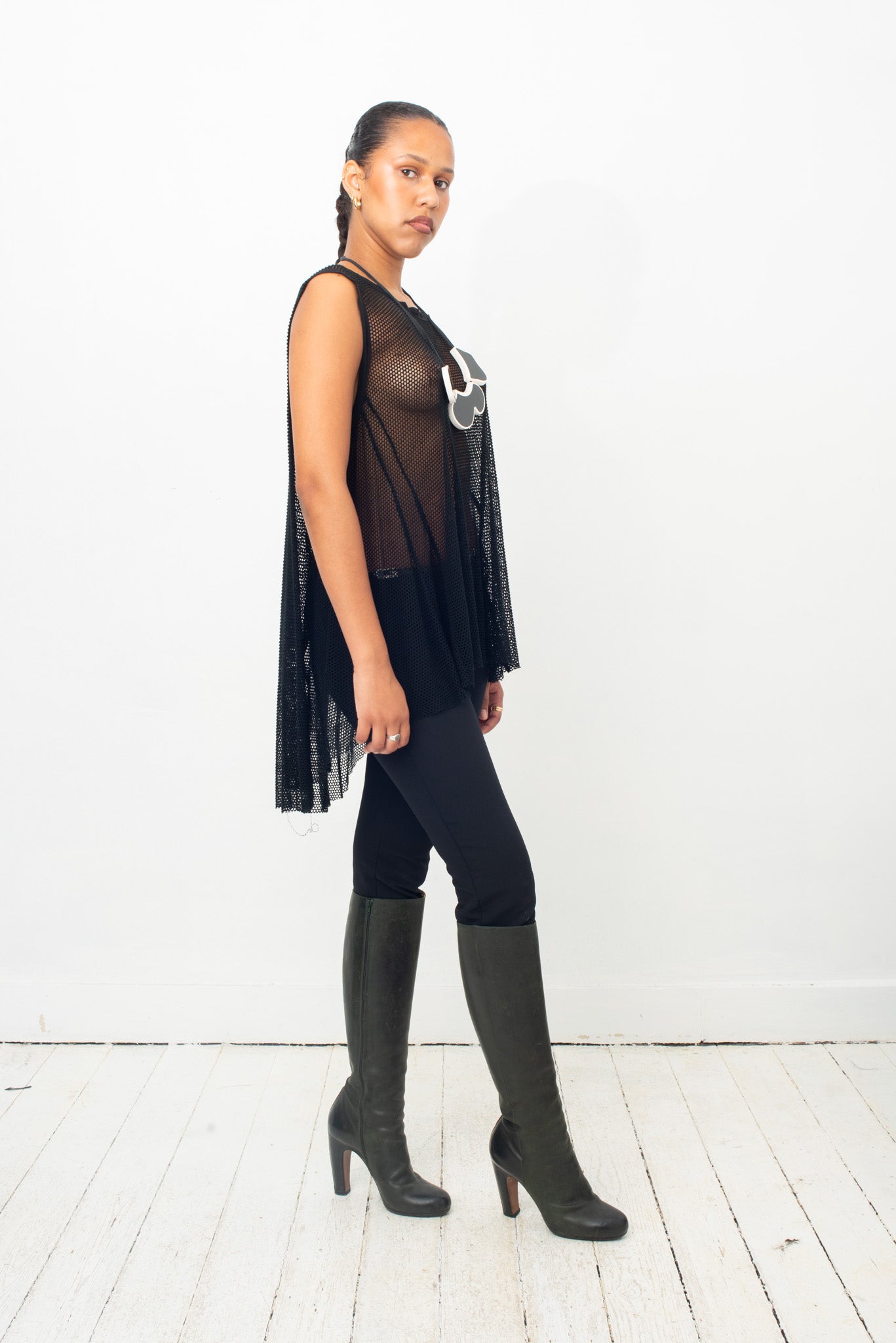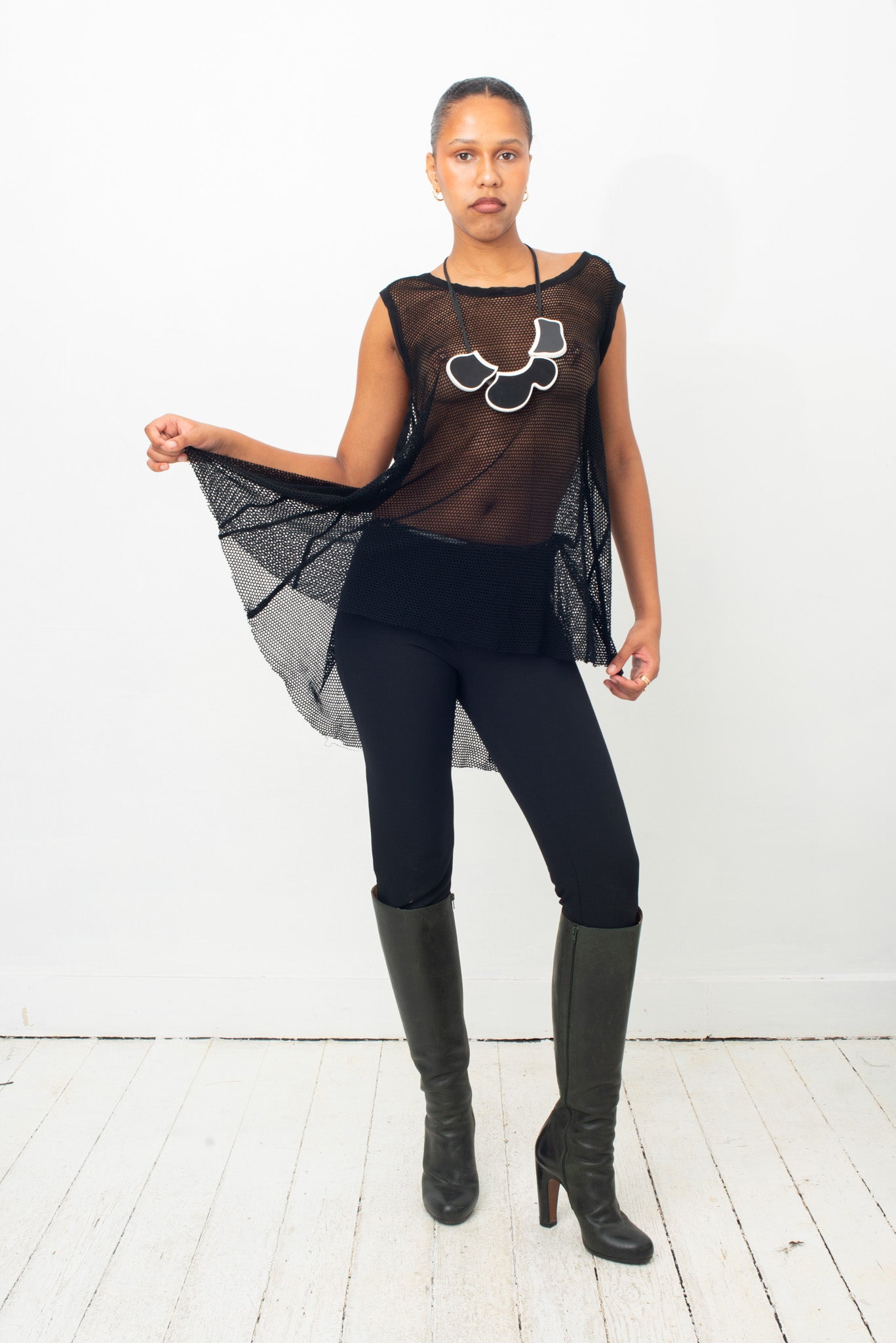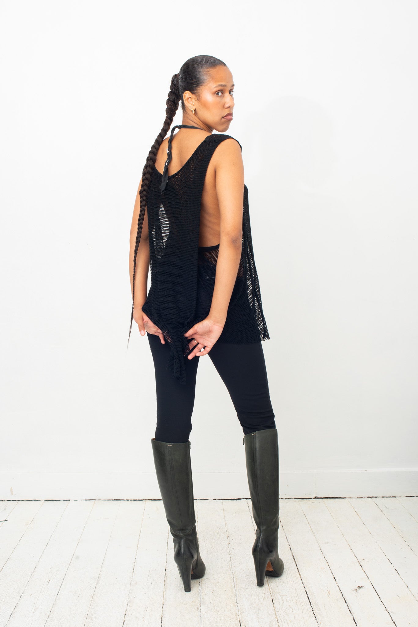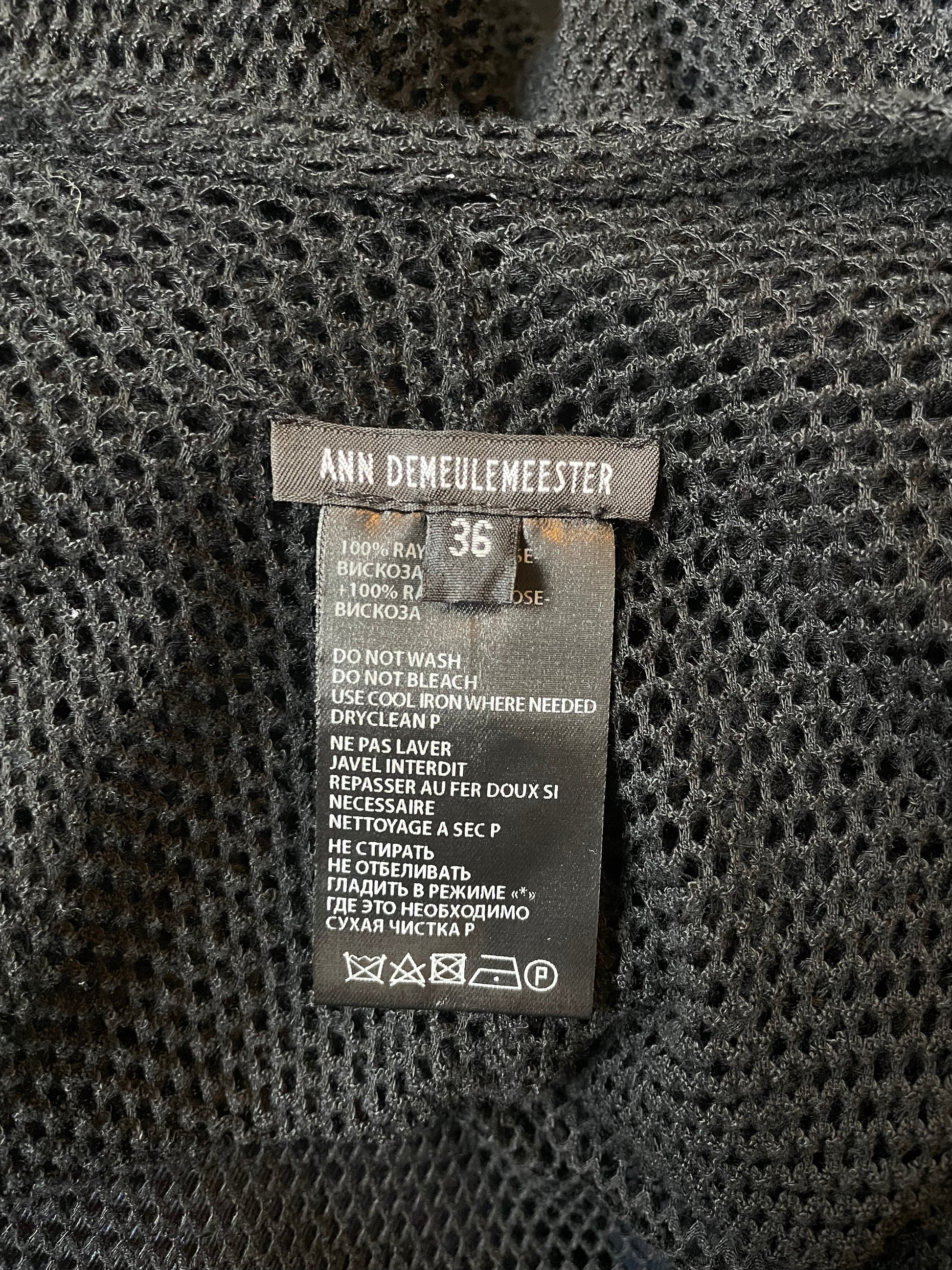 Ann Demeulemeester 2000's black fishnet top with back draping