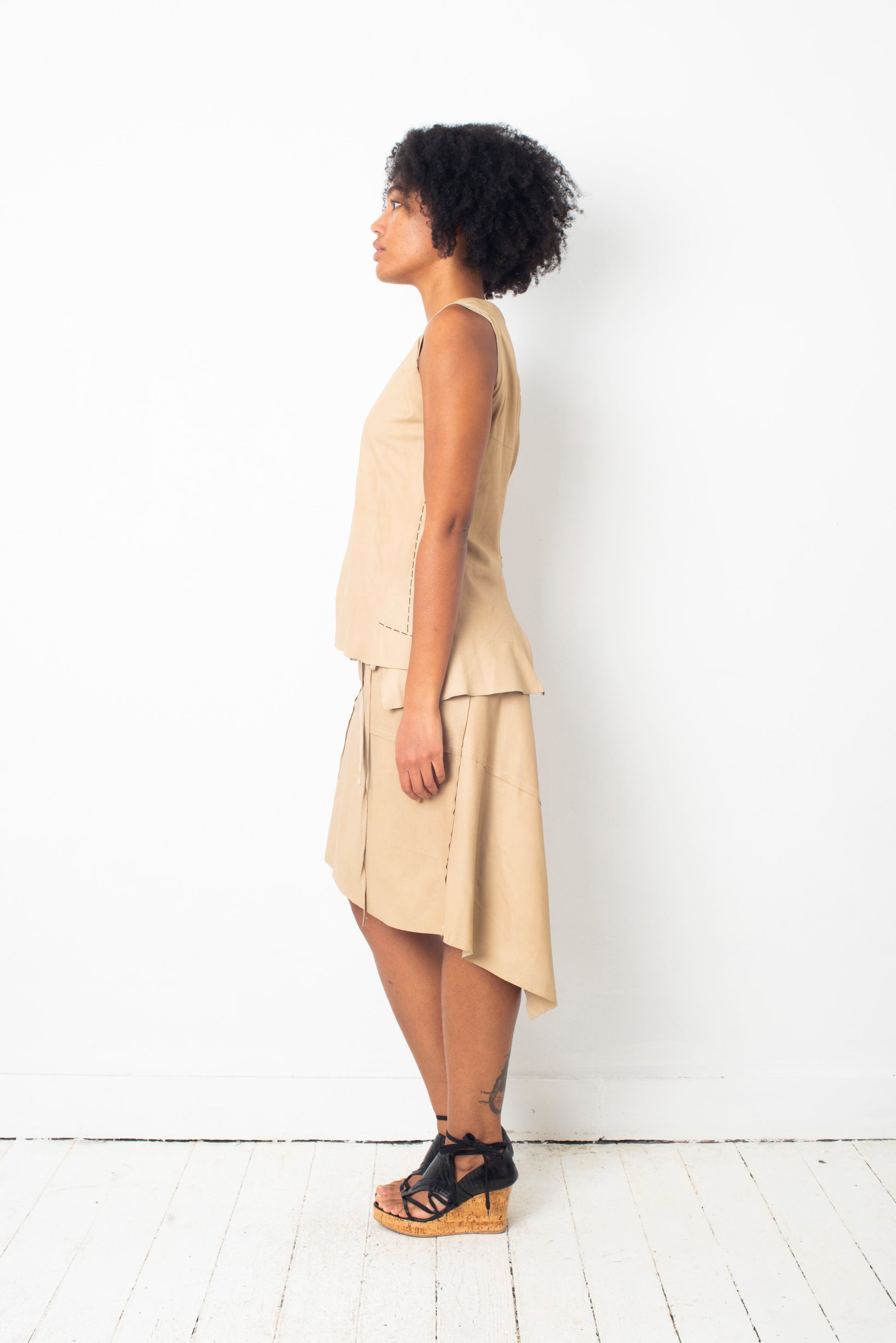 Ann Demeulemeester 2000's beige leather wrap skirt and matching top set