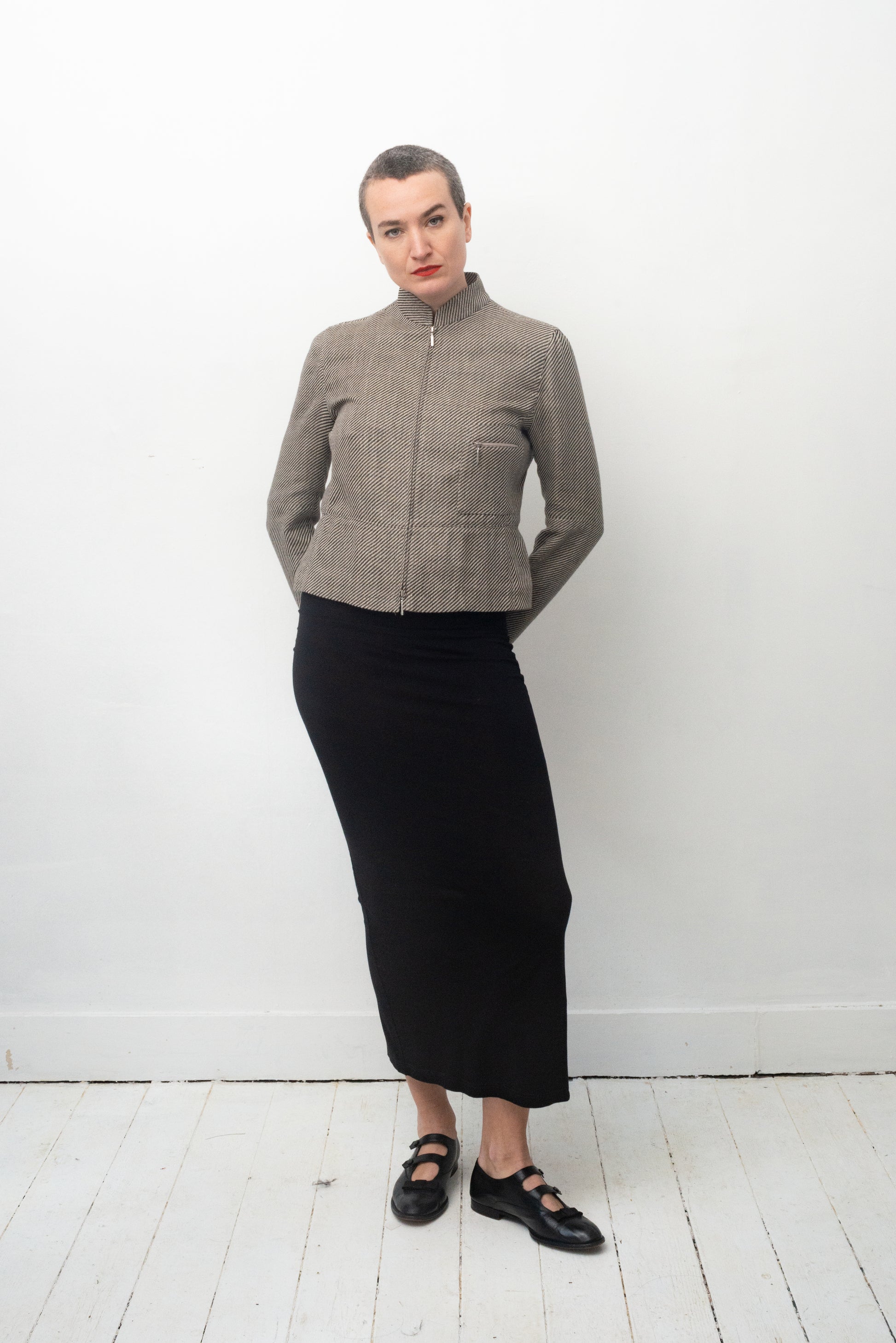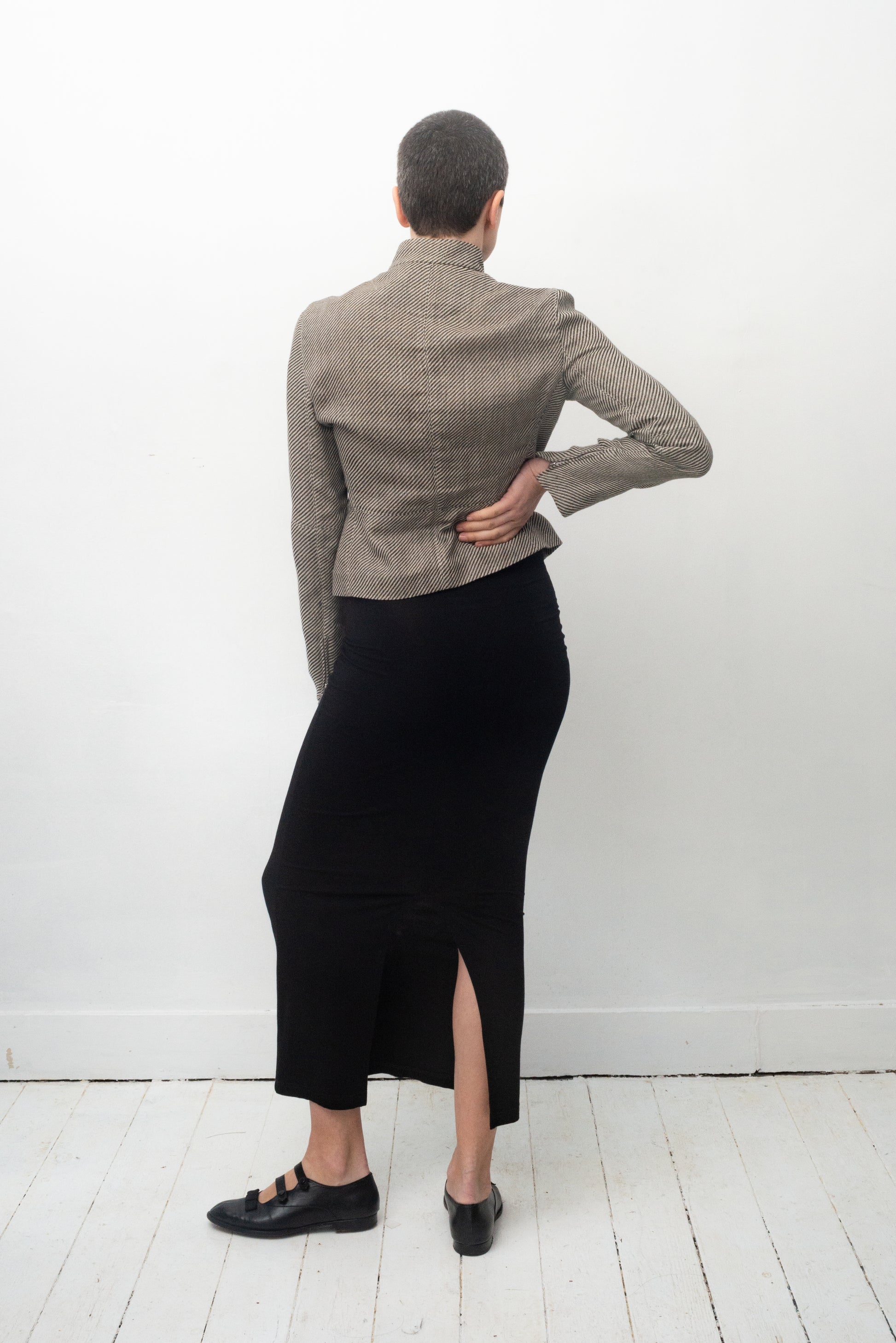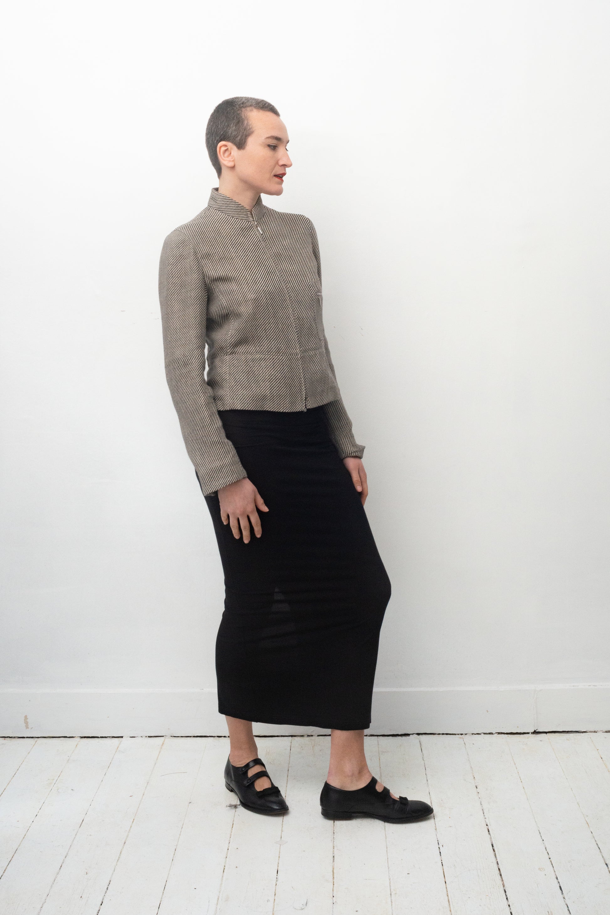 Very elegant 2000's Armani jacket in a beautifully knit diagonal striped pattern with a mao collar.