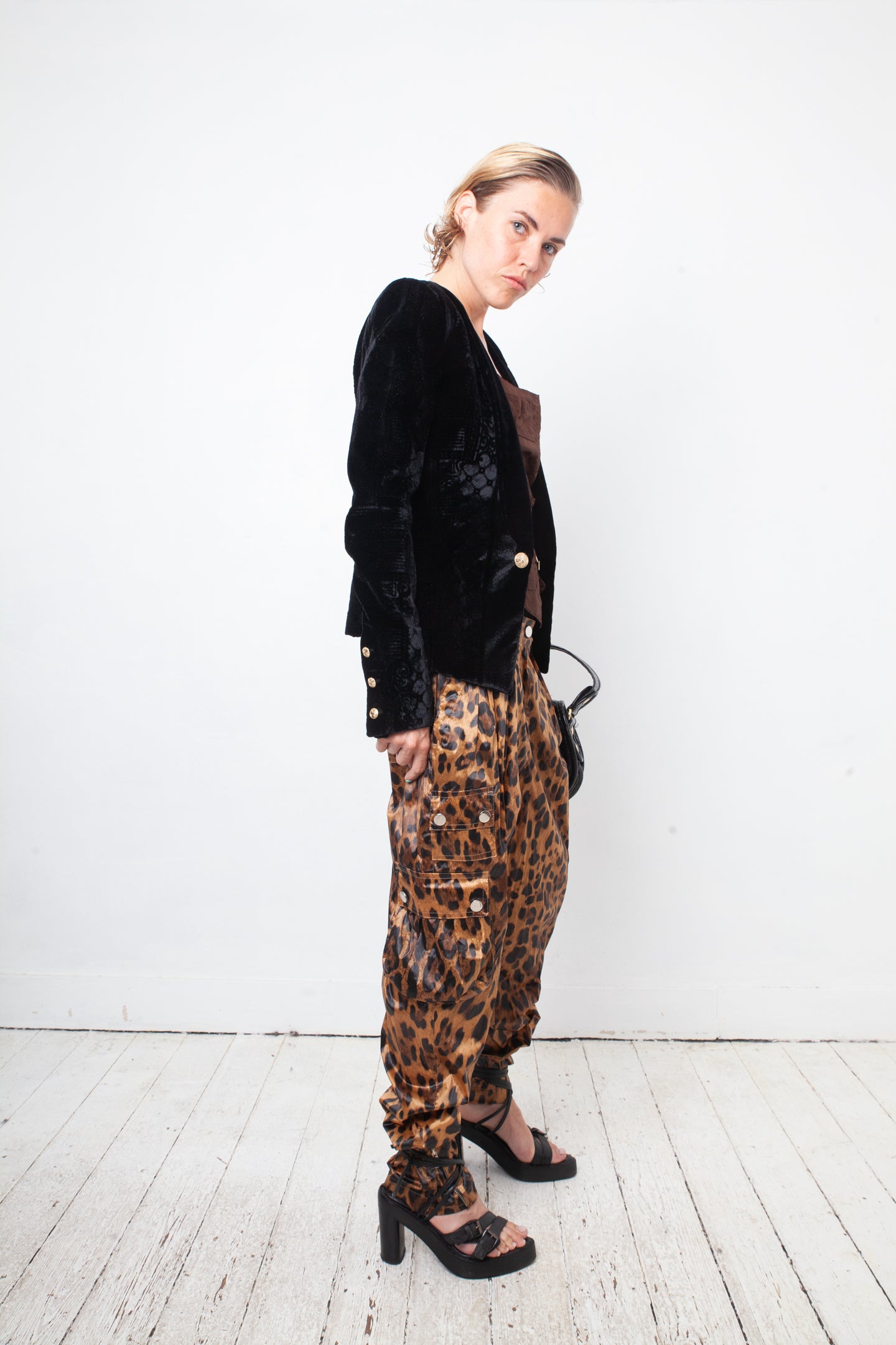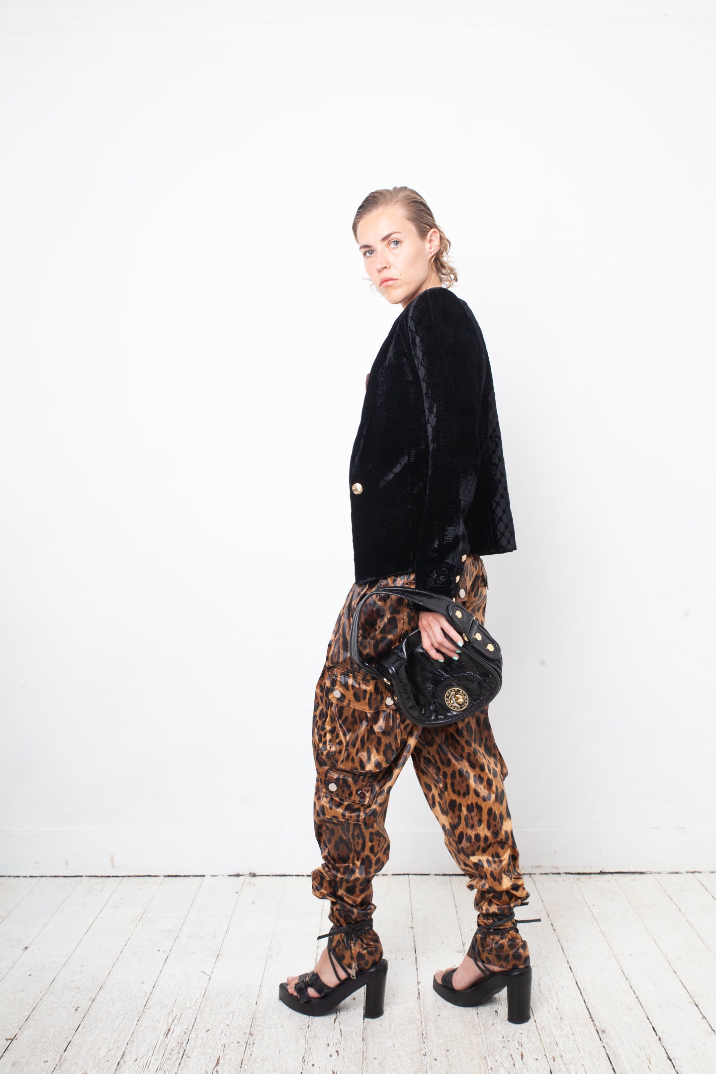 Here worn with a pair of Dolce & Gabbana satin leopard print cargo trousers, also available online