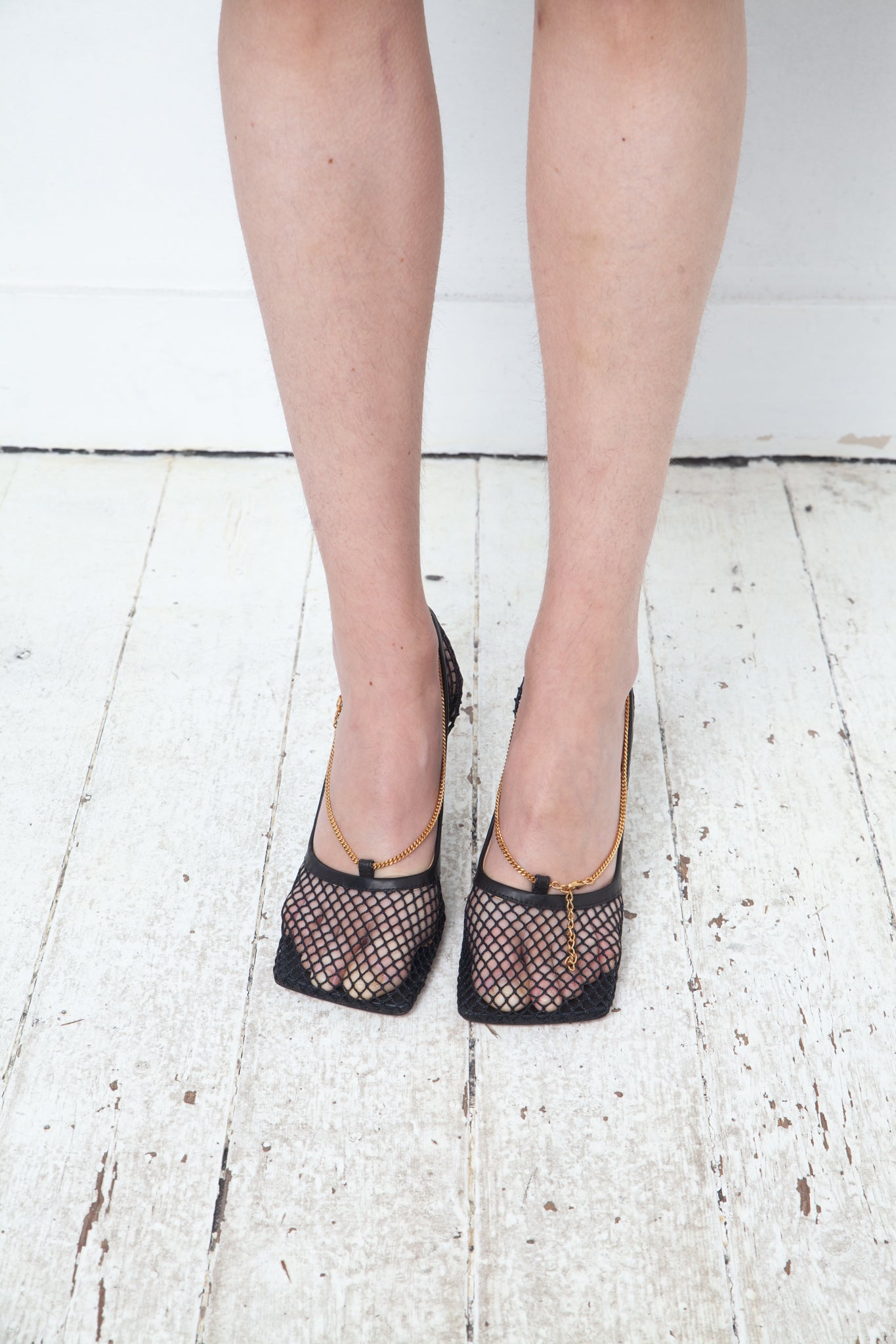 Bottega Venetta 2020's fishnet heels with golden chain size 37