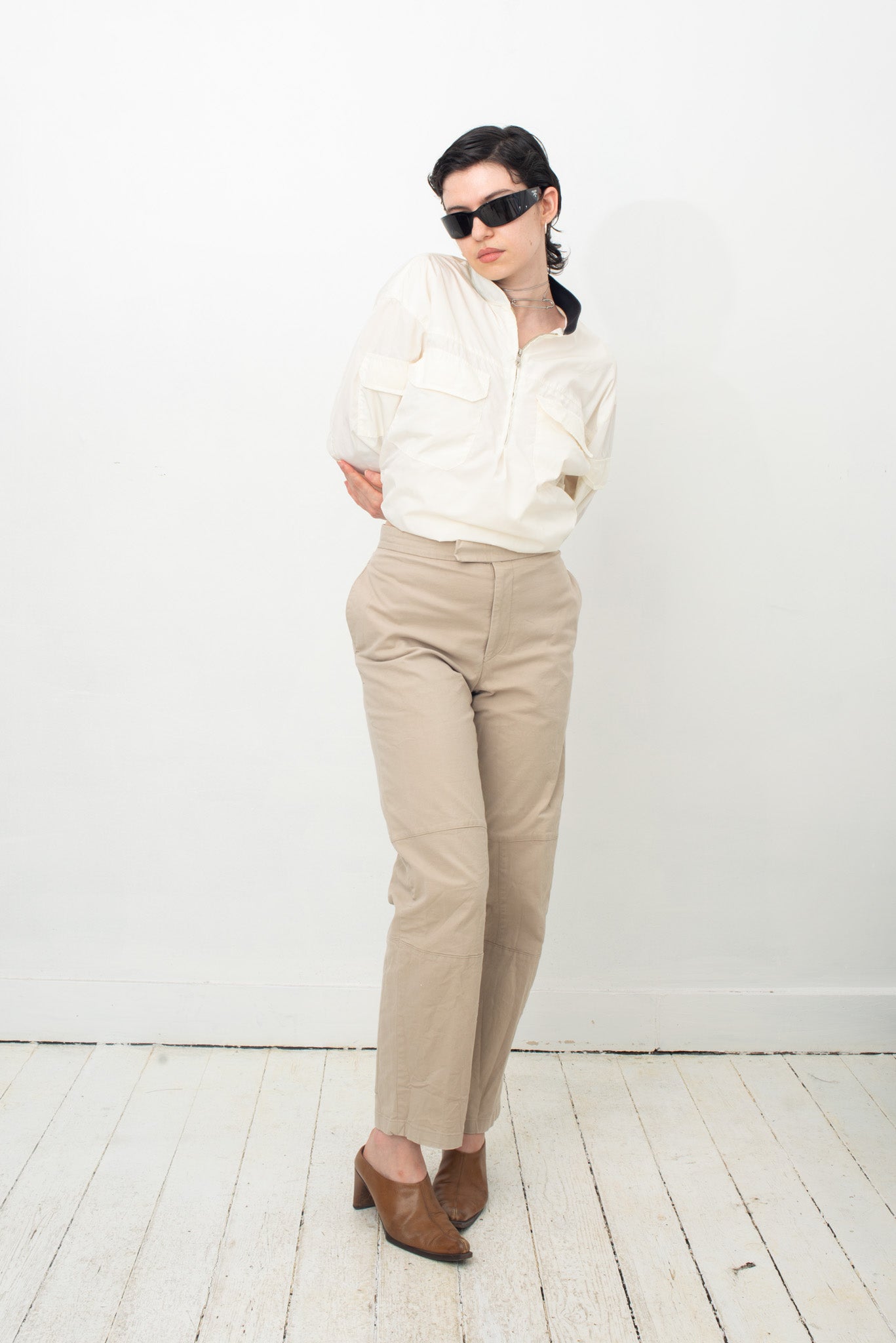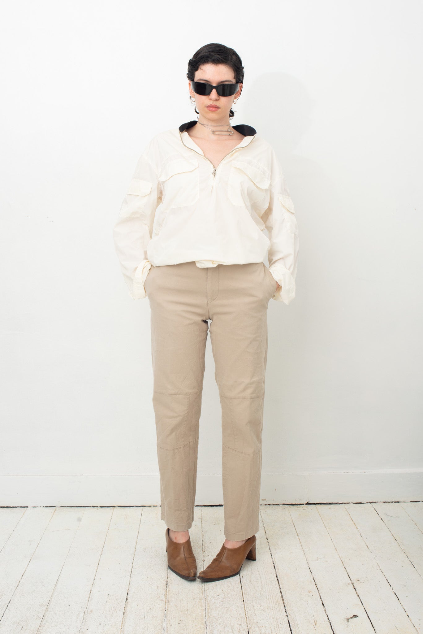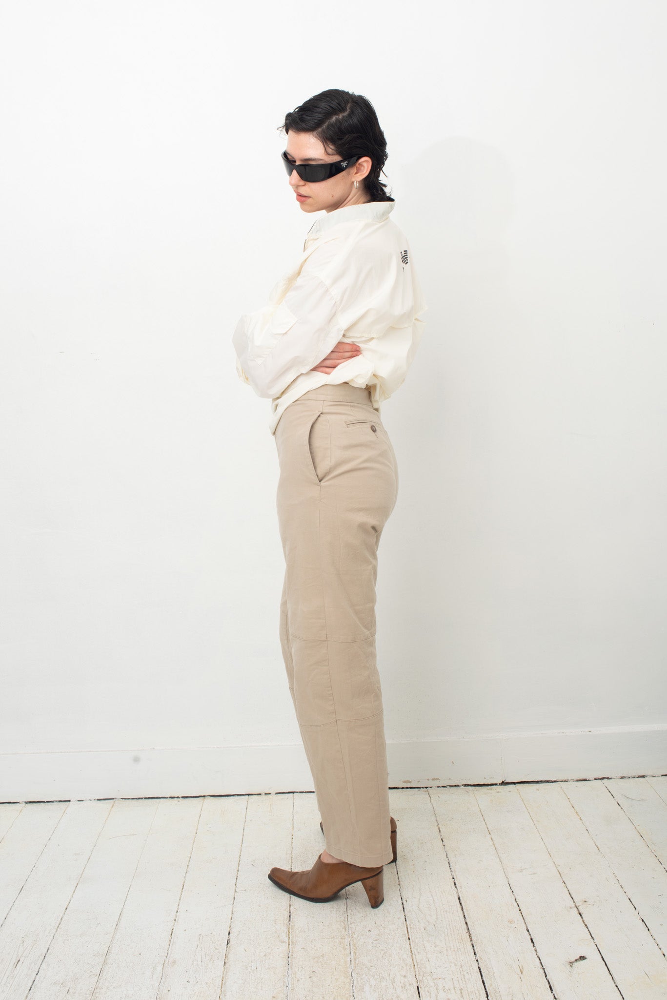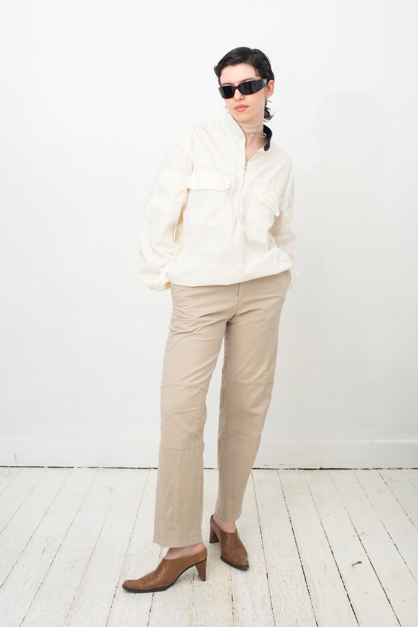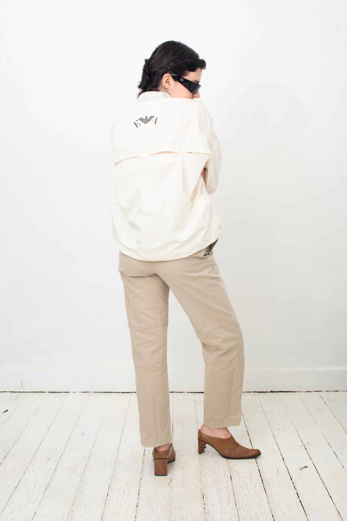 Here worn with Emporio Armani 1990's off-white nylon sporty shirt, also available online.