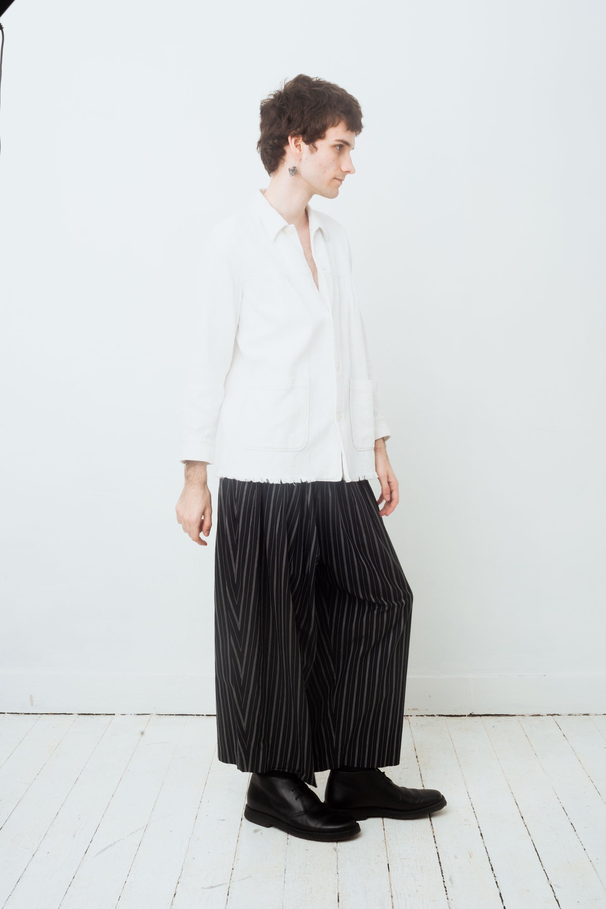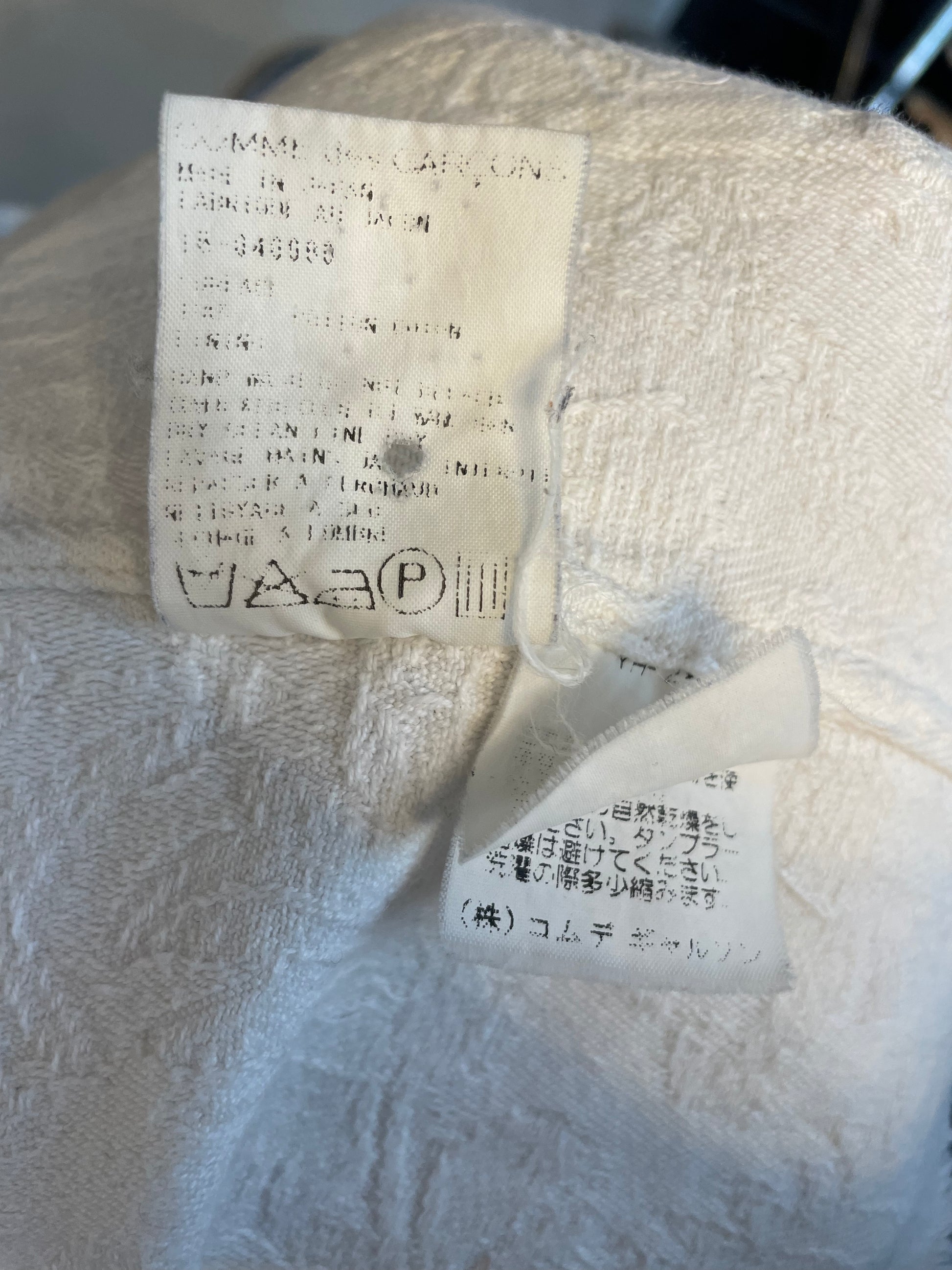 Comme des Garçons 2000's white jacquard worker's jacket with distressed hems