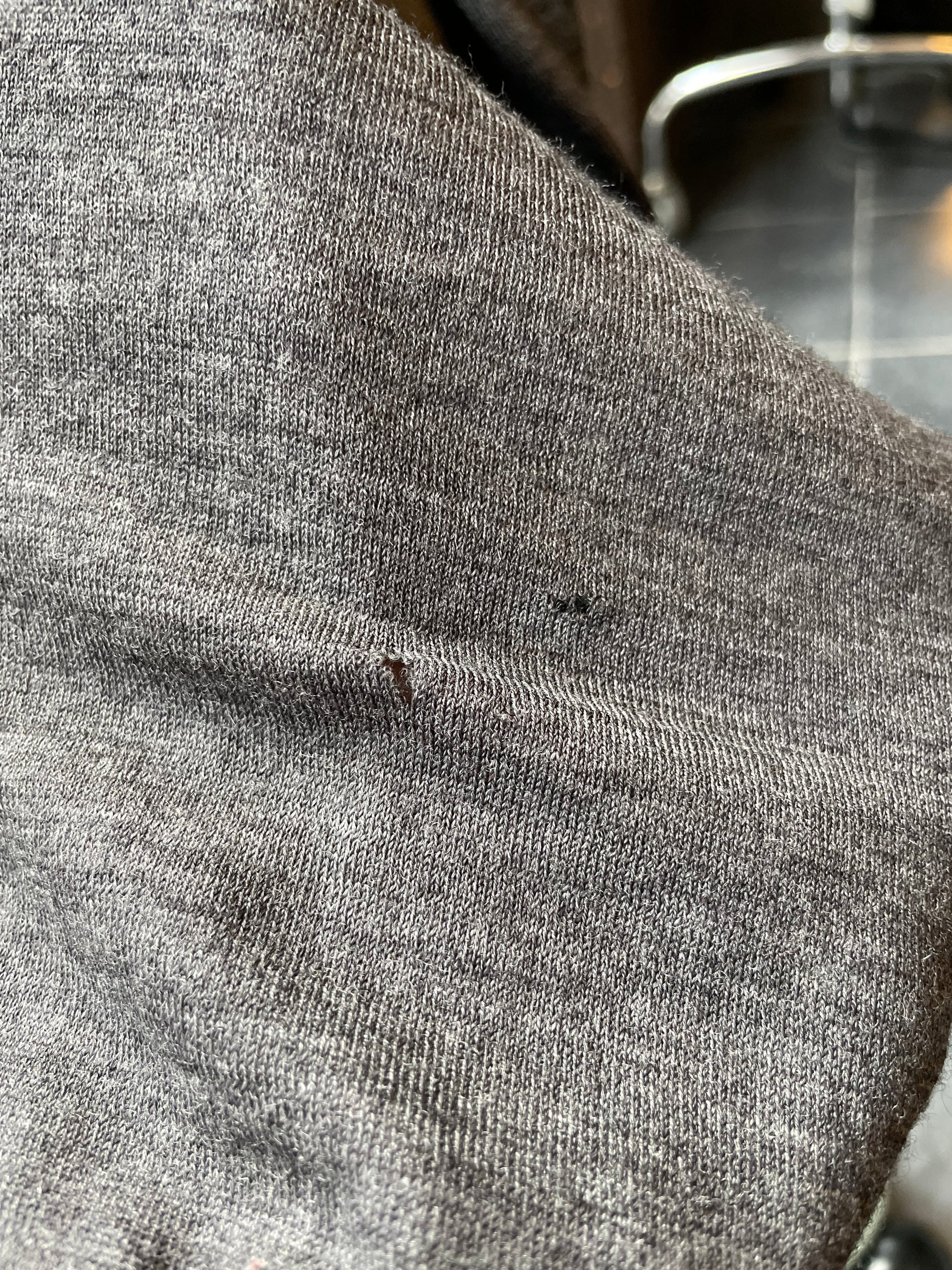 Condition: Fair, with a few small holes along the sleeves and the back. (These are featured in the pictures and accounted for in the price.)