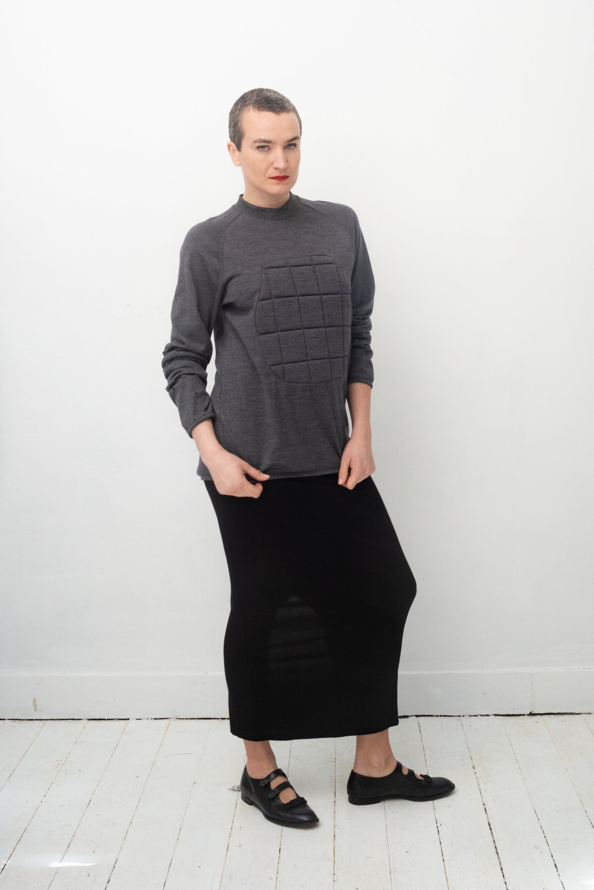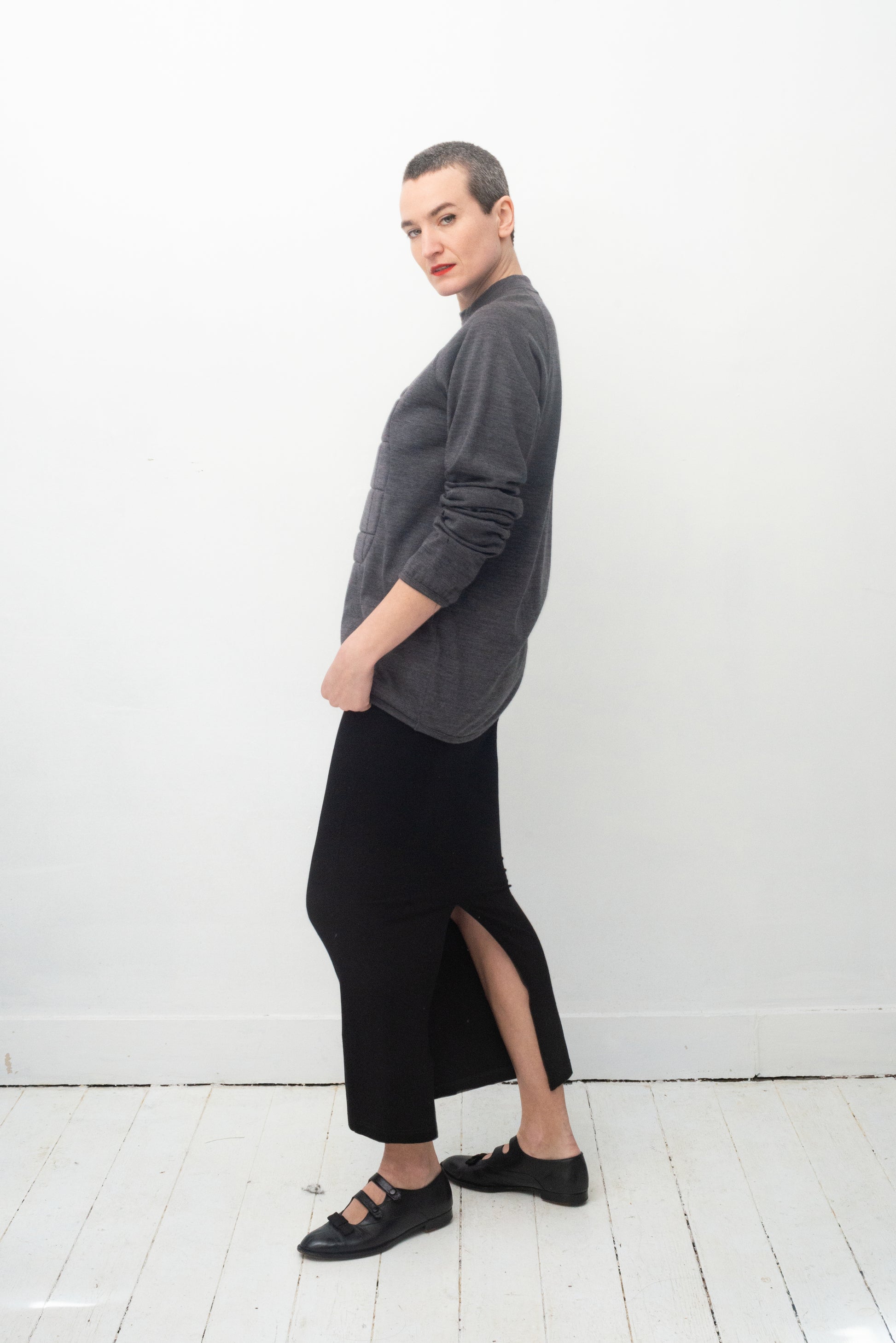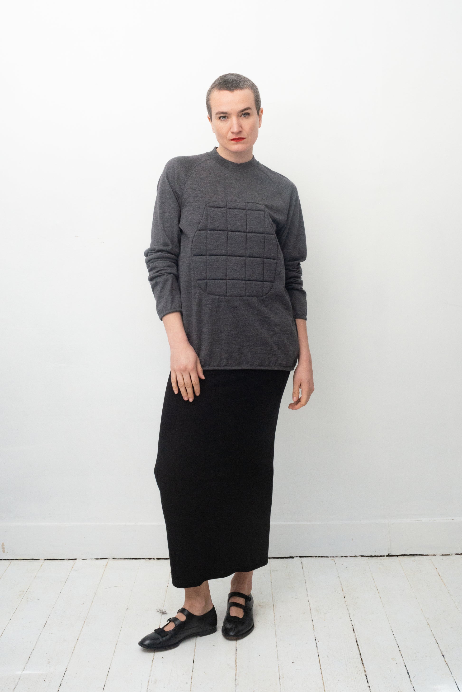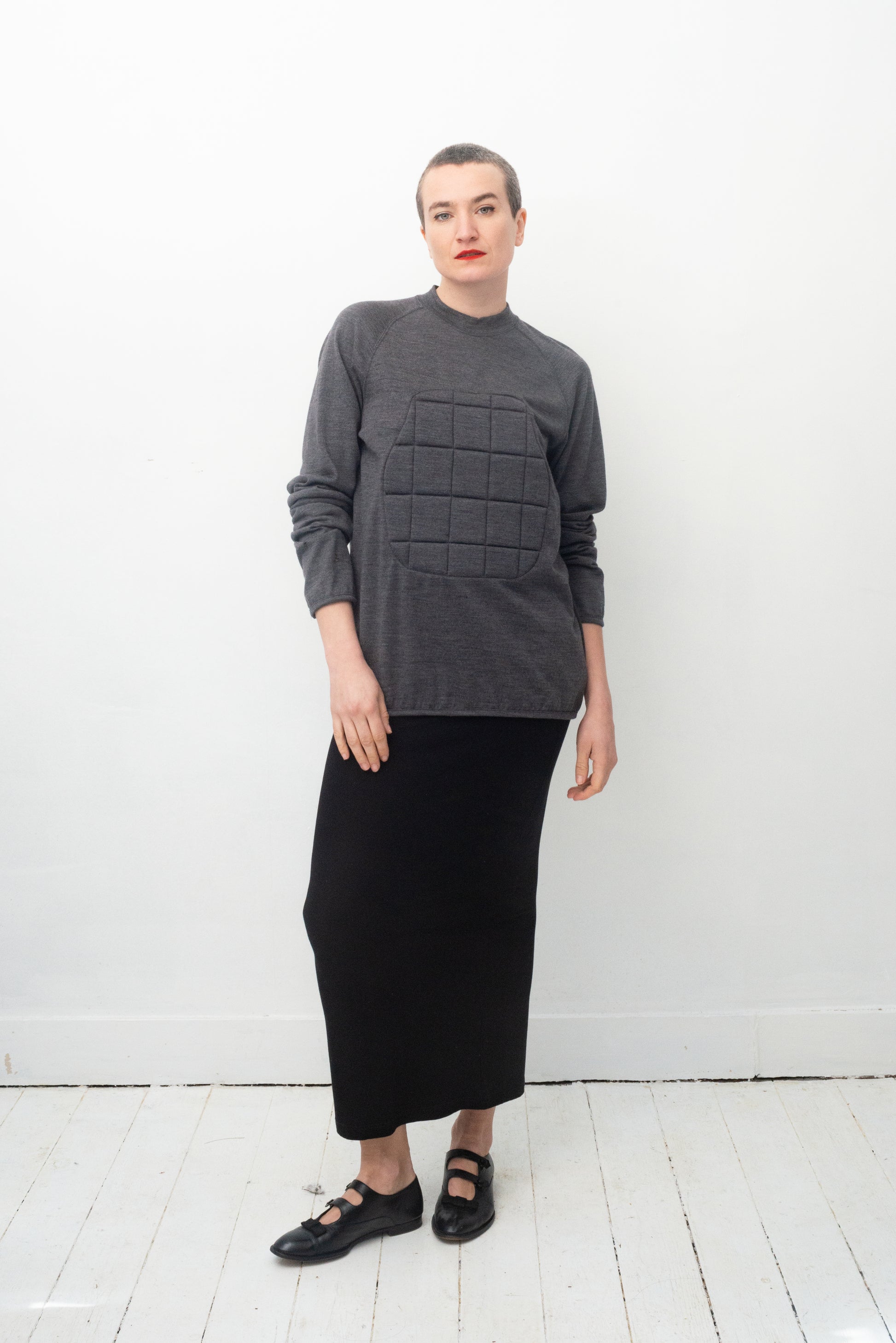 Intriguing Comme des Garçons Homme Plus sweater with a 3D ‘bulletproof vest’ detail in a grey heather wool from AW10.