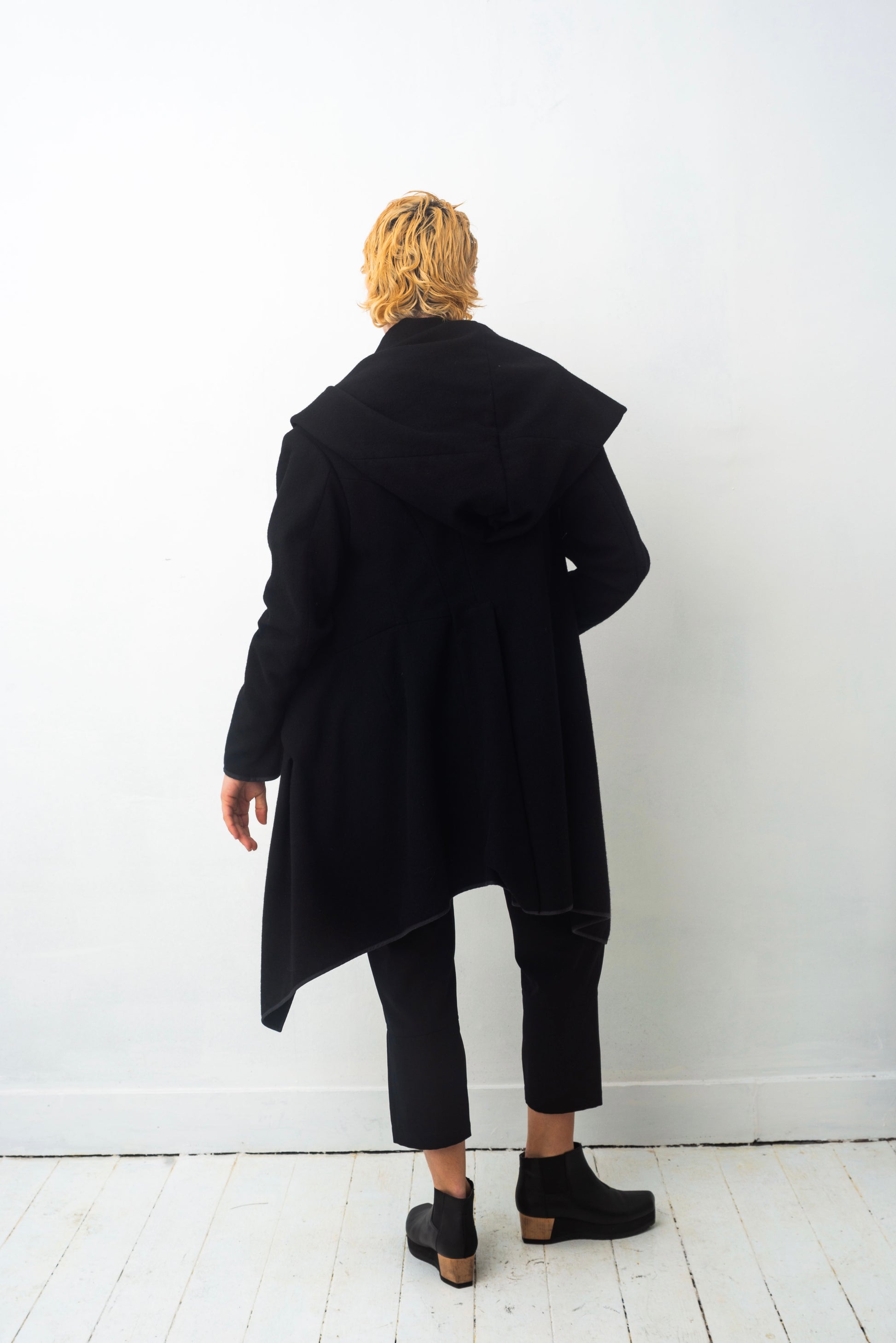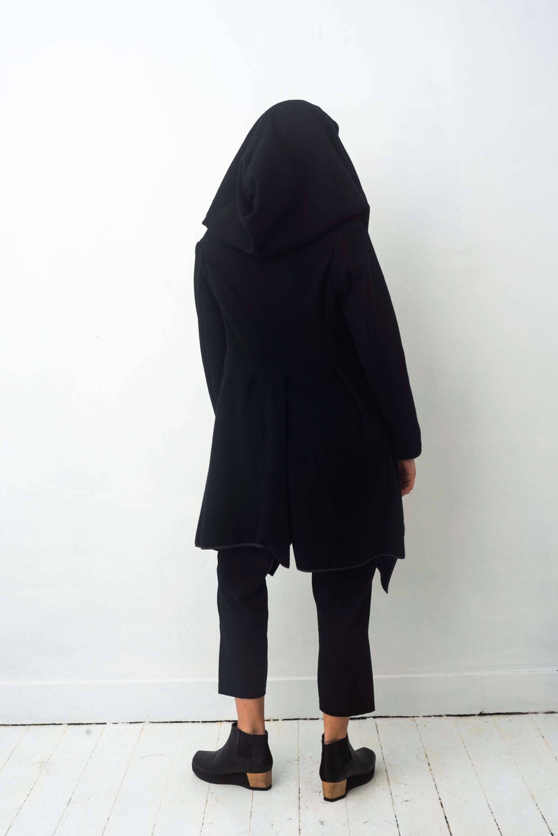 Comme des Garçons 90's black wool asymmetric jacket with oversized hood