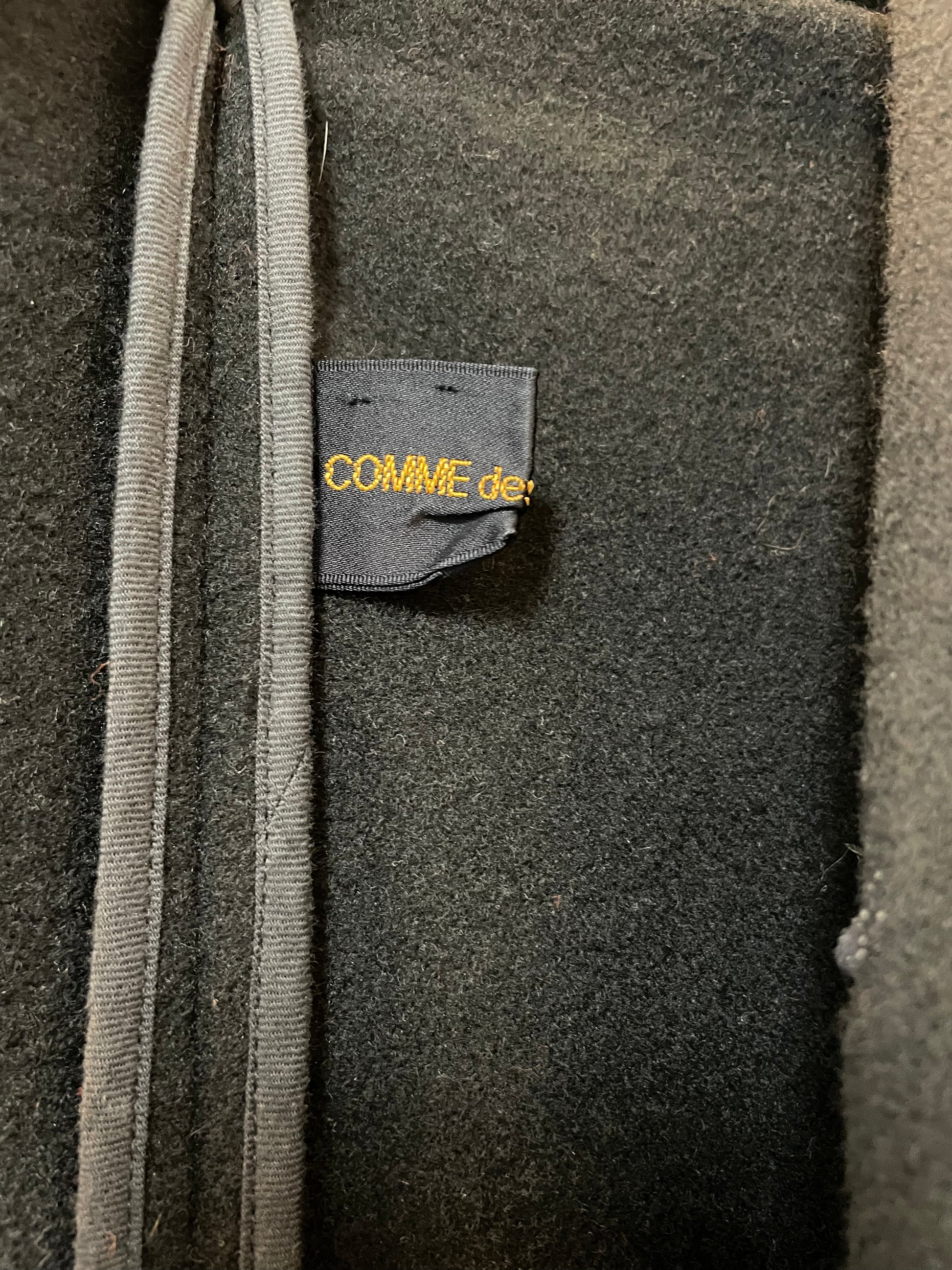 The essence of Comme des Garçons lays in the deconstruction of the garment and reassembling it in unexpected ways, which is exactly the case of this cape-like jacket.
