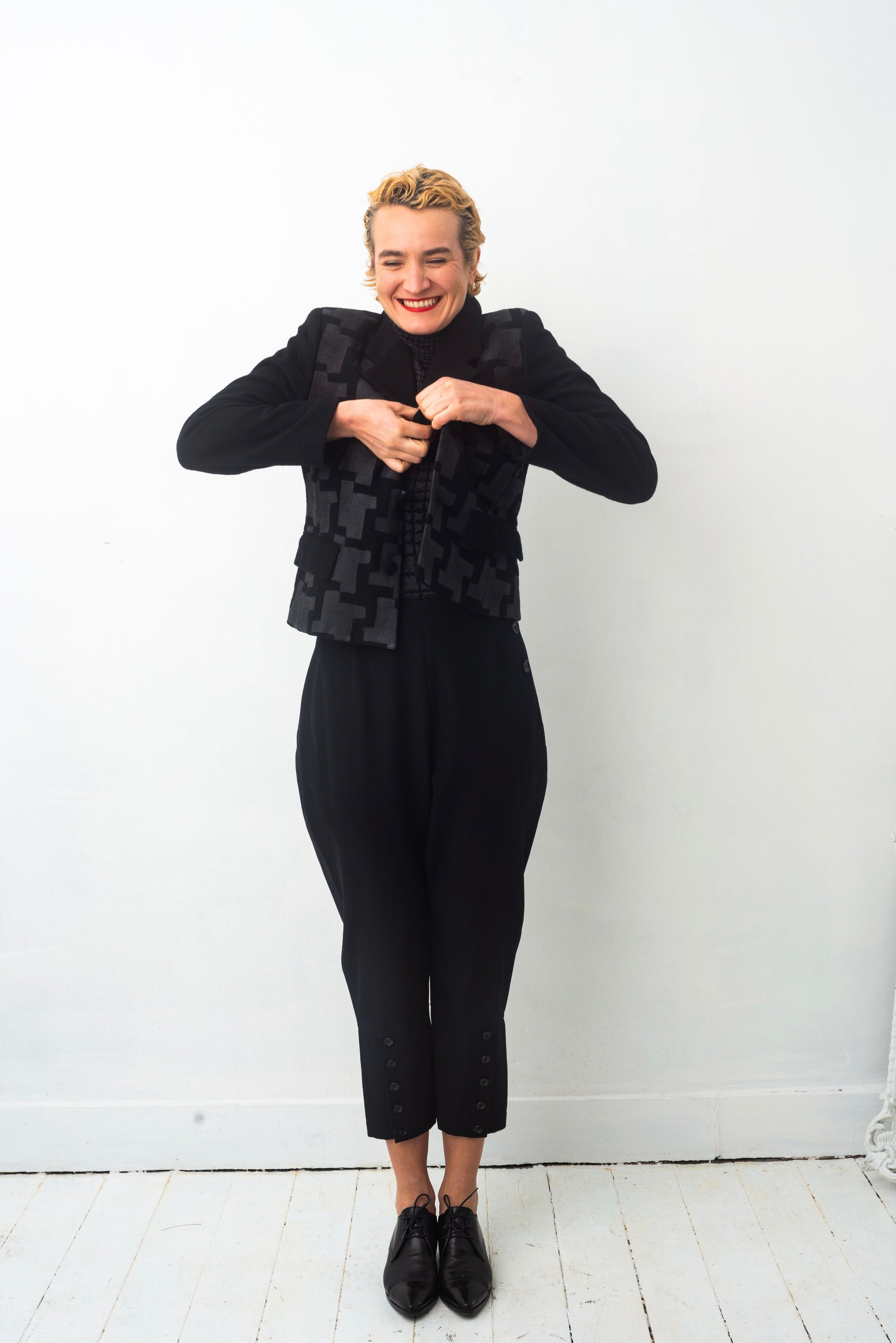 Here worn with a pair of Comme des Garçons jodhpur trousers, also available online