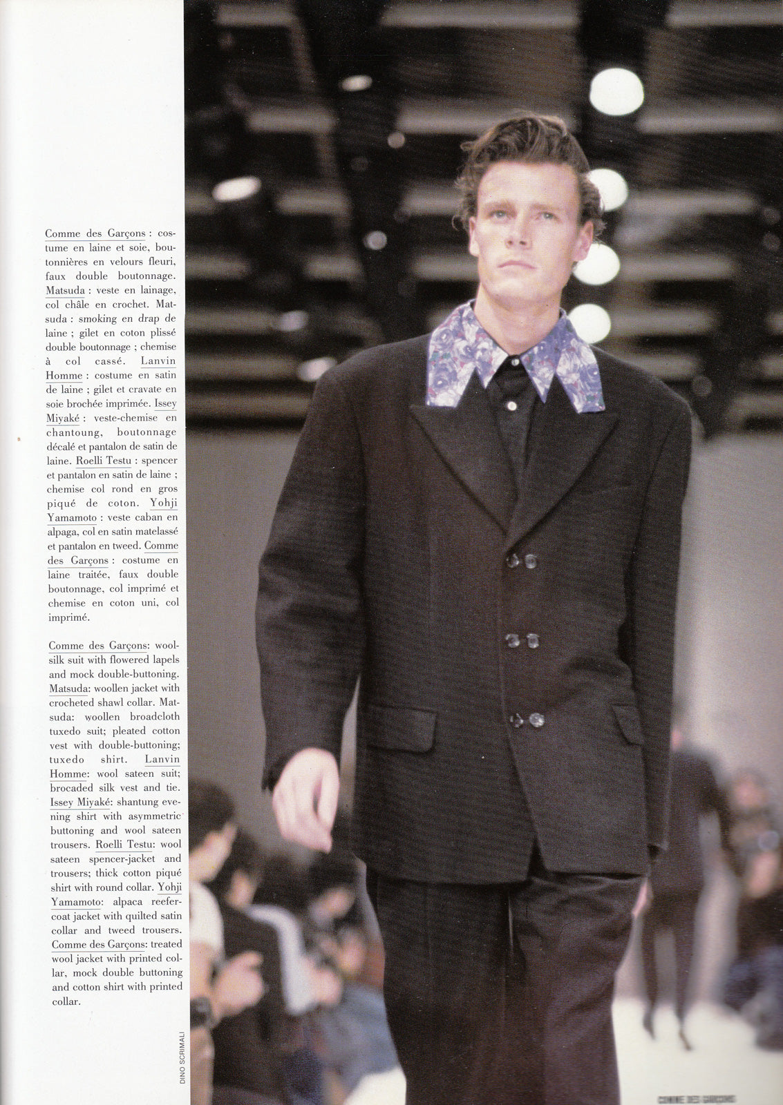 If Homme offers a downplayed, sleek menswear of the brand, Homme Plus turns it all the way up, matching the OG brand’s eccentric aesthetic. Launched 6 years after Homme, Homme Plus holds bi-annual runway shows that fall under the same conceptual umbrella as Kawakubo’s vision for the main line, making it, out of all the diffusion lines, the purest extraction of her genius mind’s work, acting more so as a menswear version of the main womenswear runway line and less of an affordable diffusion line. Disproportionate suits, pieces slashed and re-assembled as well as garments that look like they belong in a museum more so than anywhere else, Homme Plus is a testament to Kawakubo’s commitment to menswear, which she stated in 1995 was where lies “the basics of clothing”.