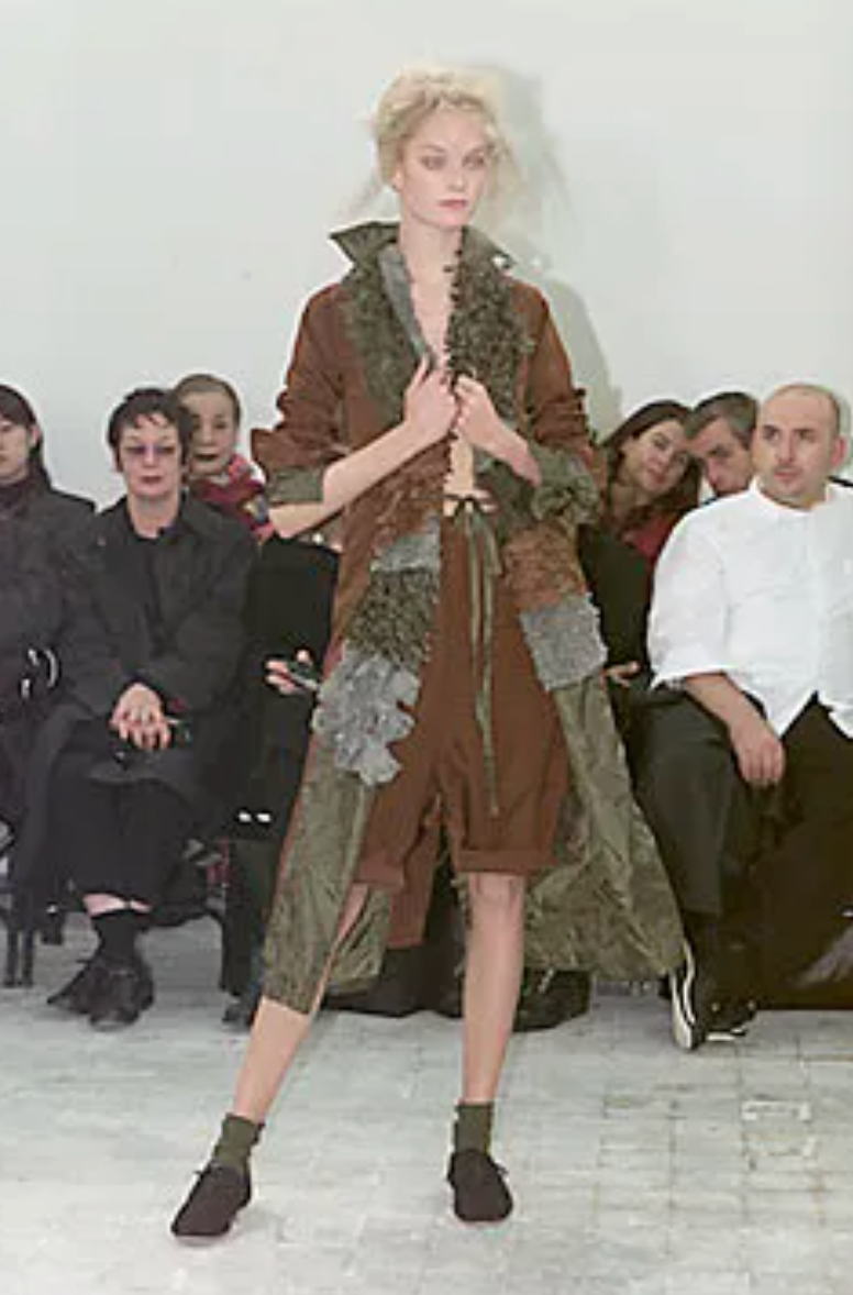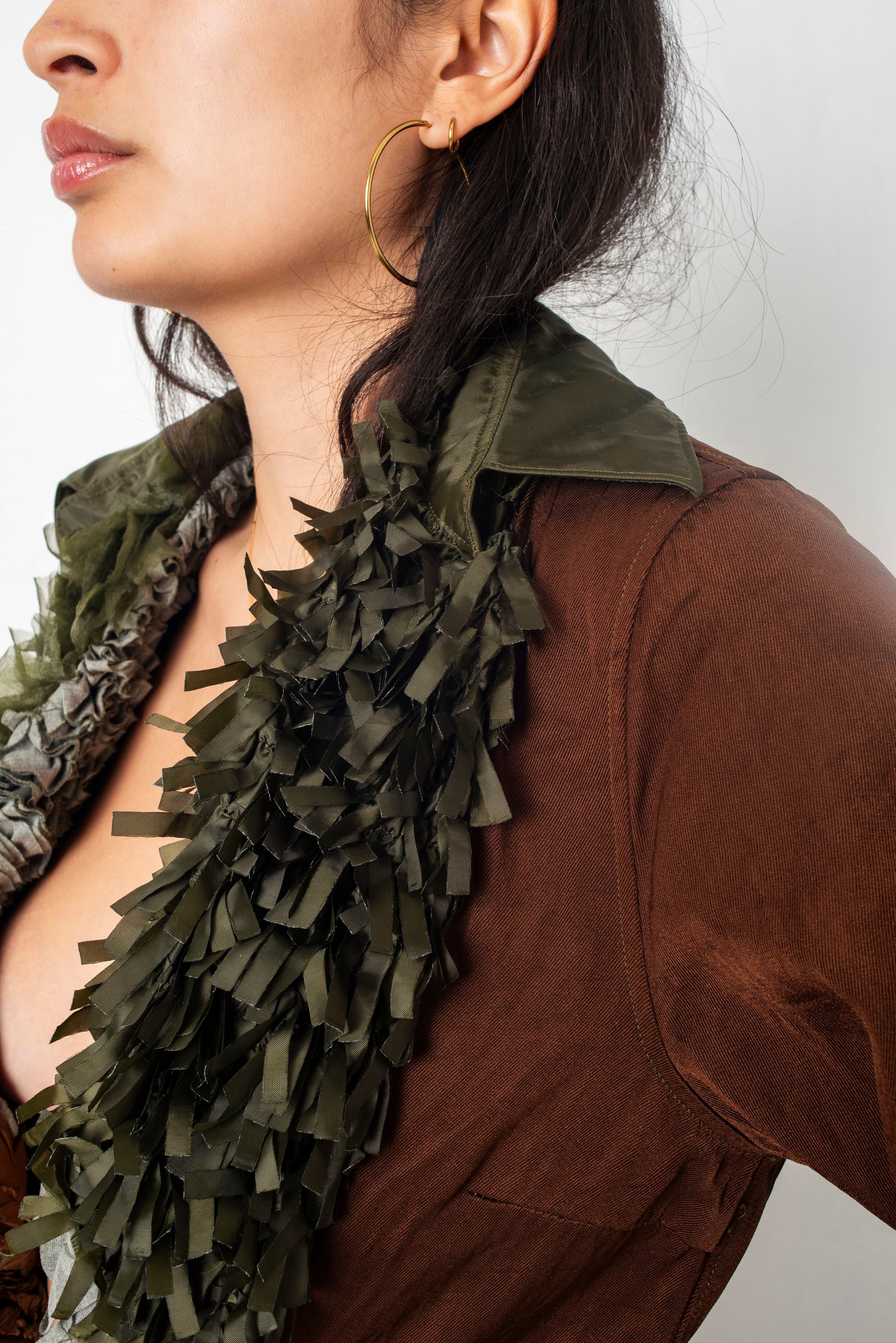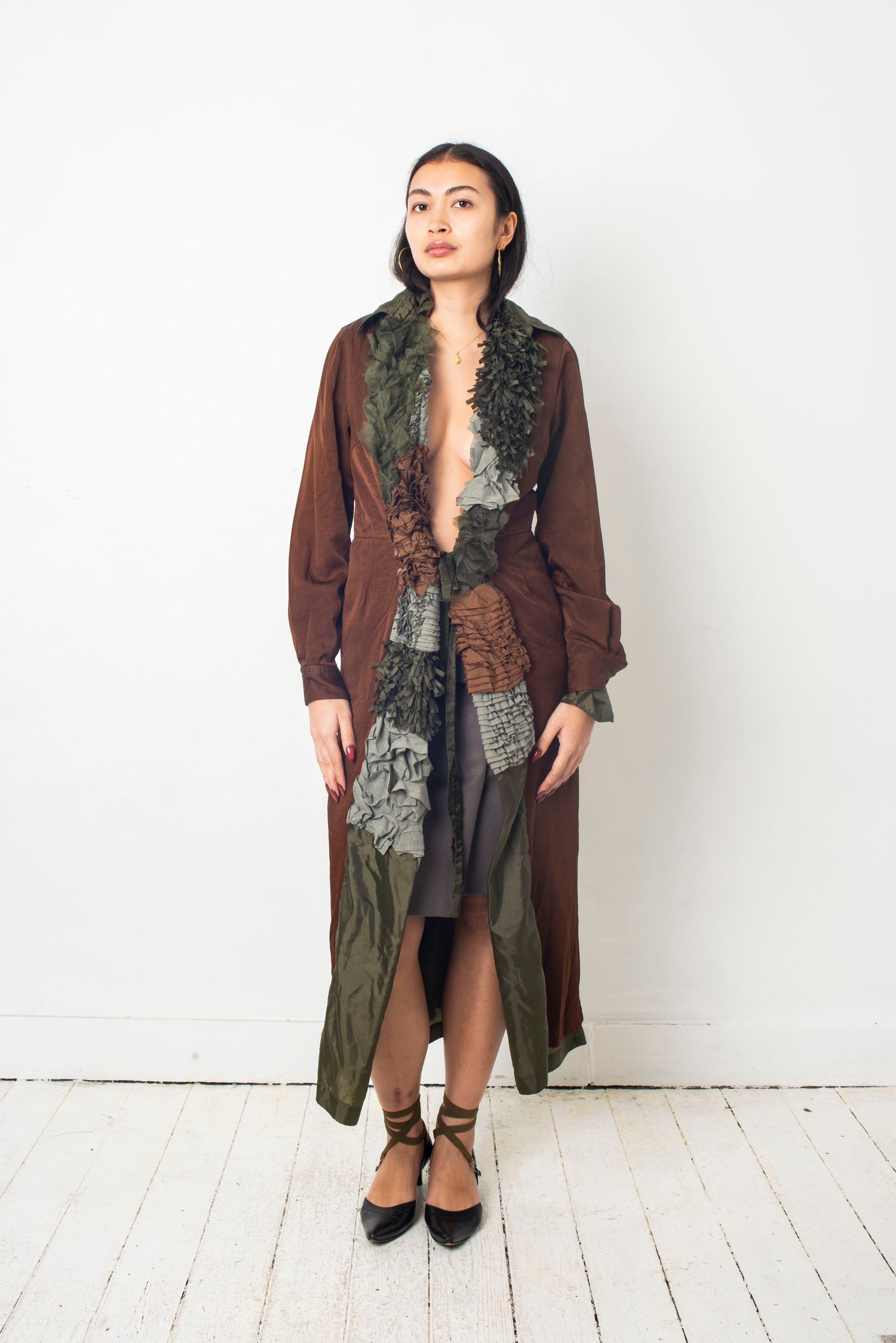 Comme des Garçons SS 2000 reversible brown and khaki ruffle coat