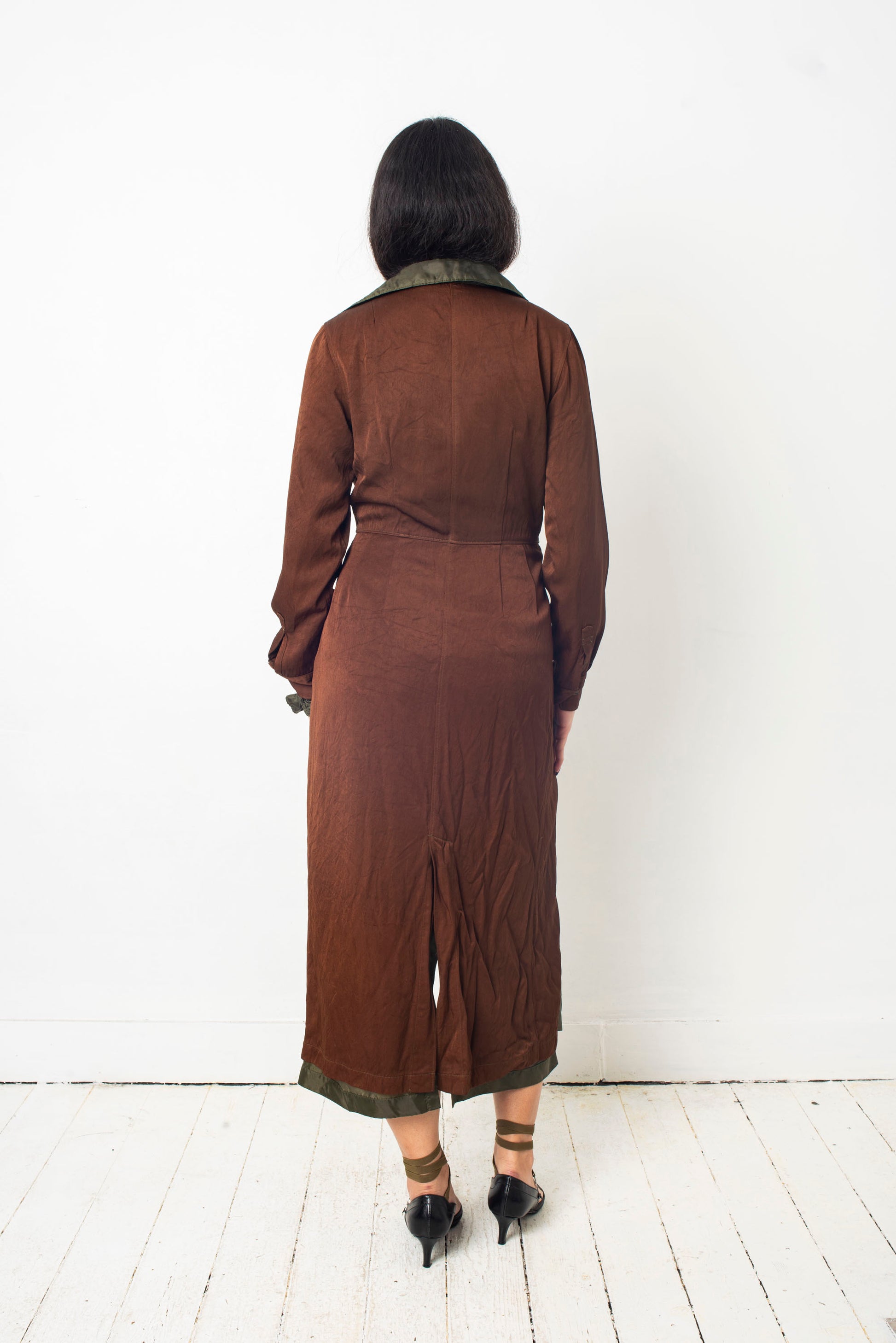 Incredible Comme des Garçons reversible ruffle coat with a brown side and a nylon shiny khaki green side.