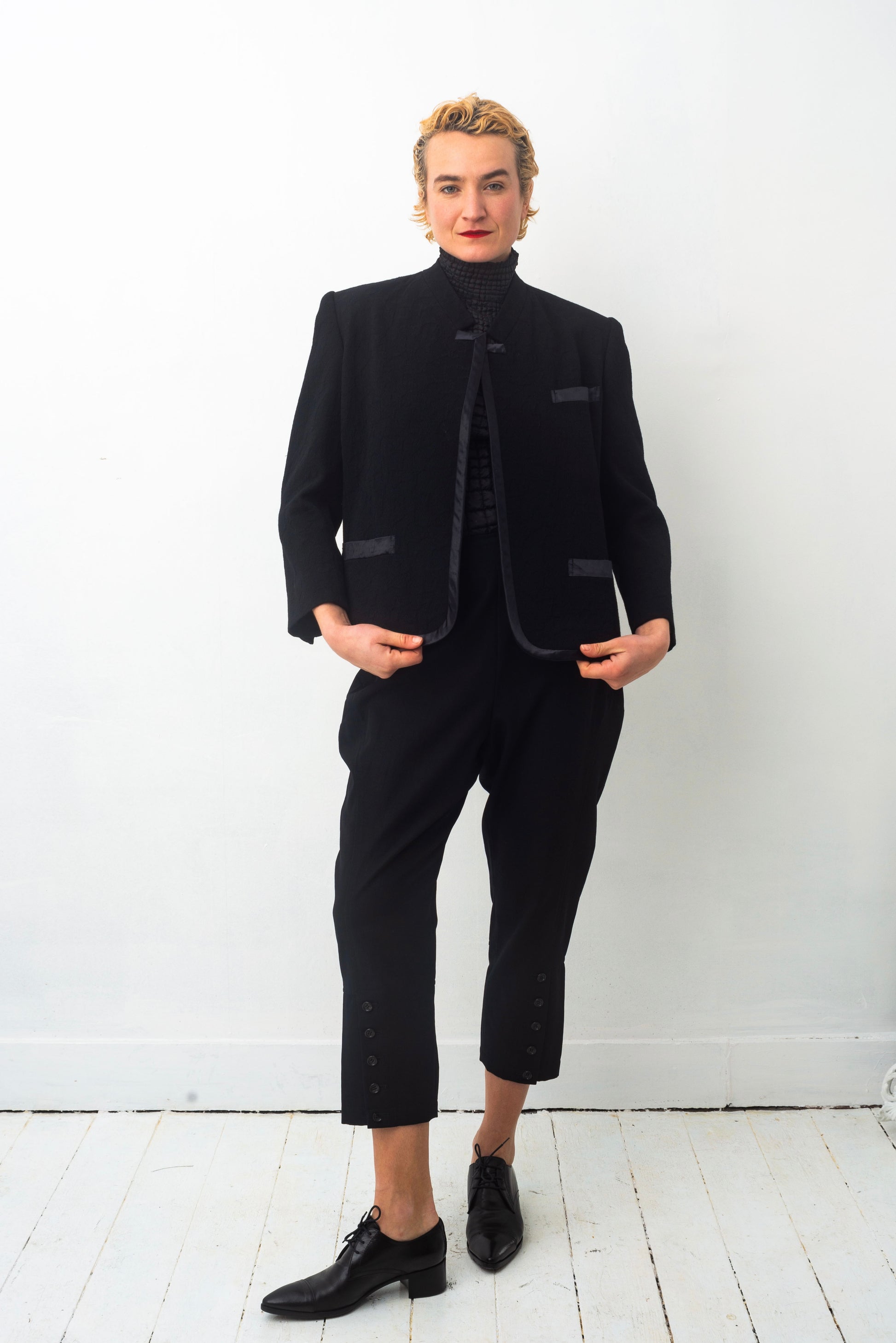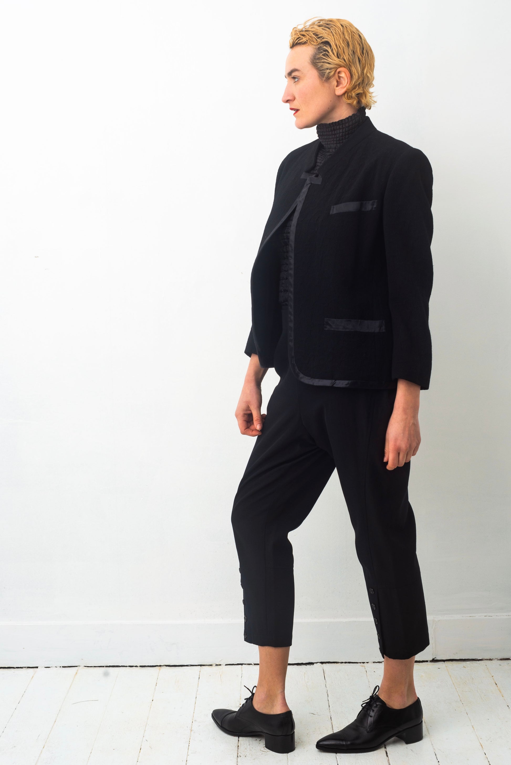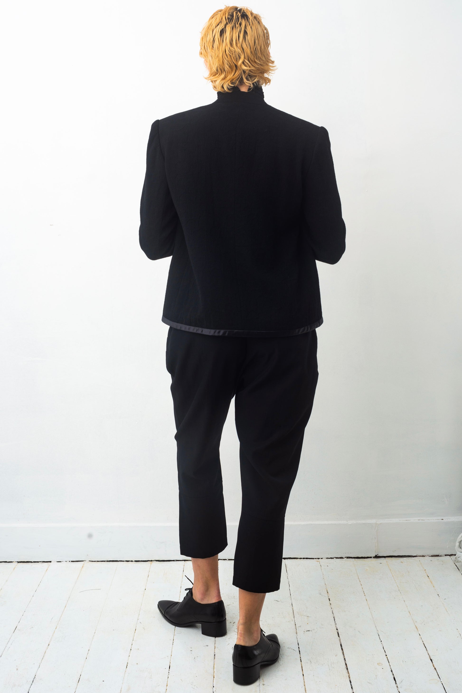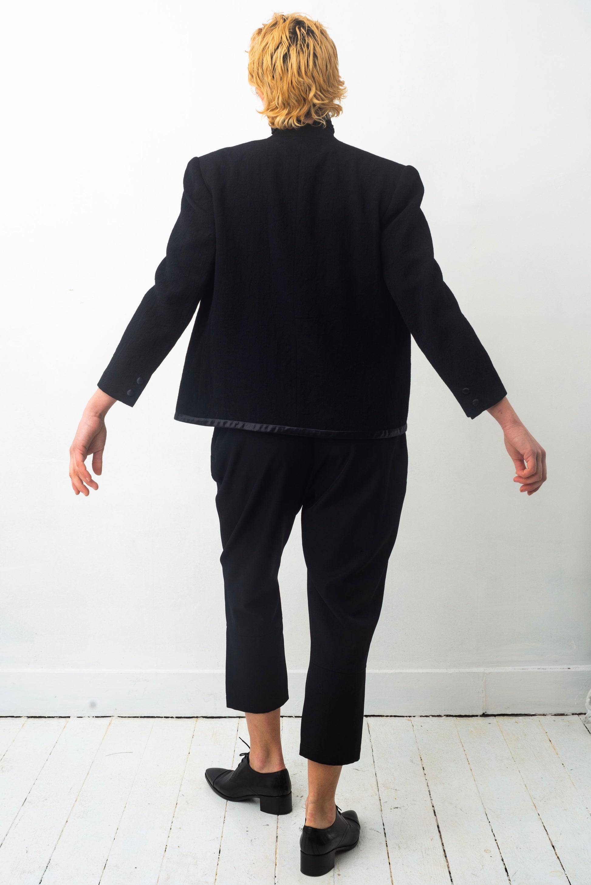 Comme des Garçons 80's wool woven short jacket with mandarin collar and silk finishings