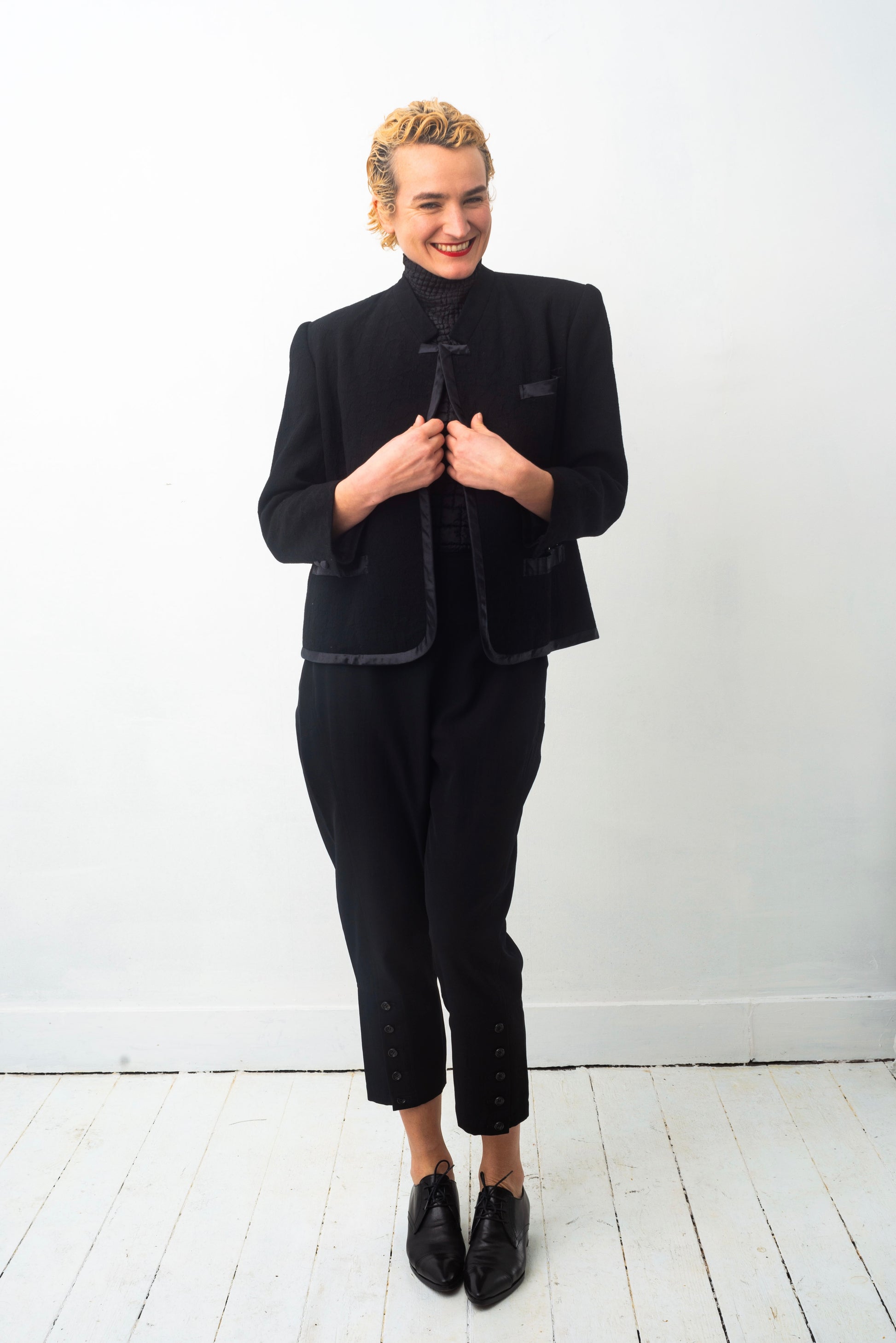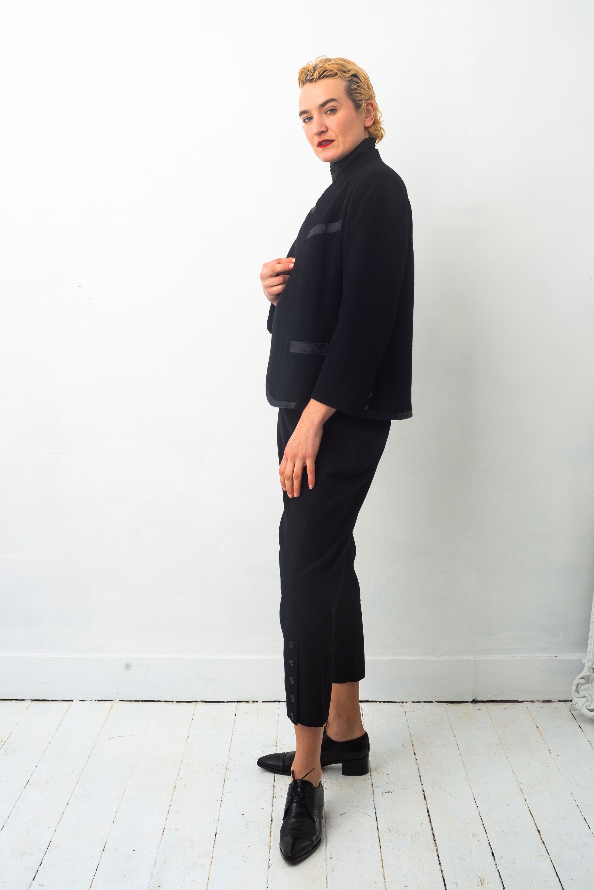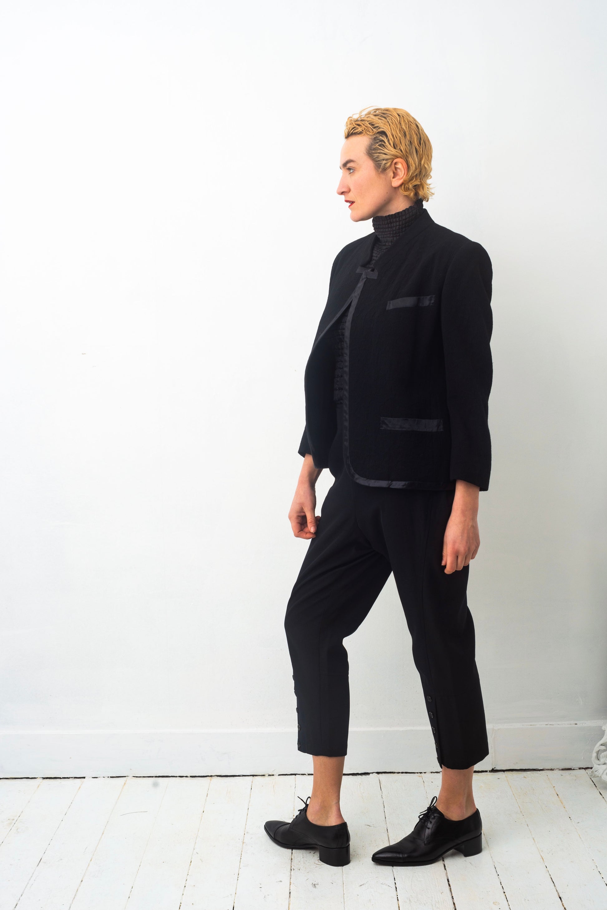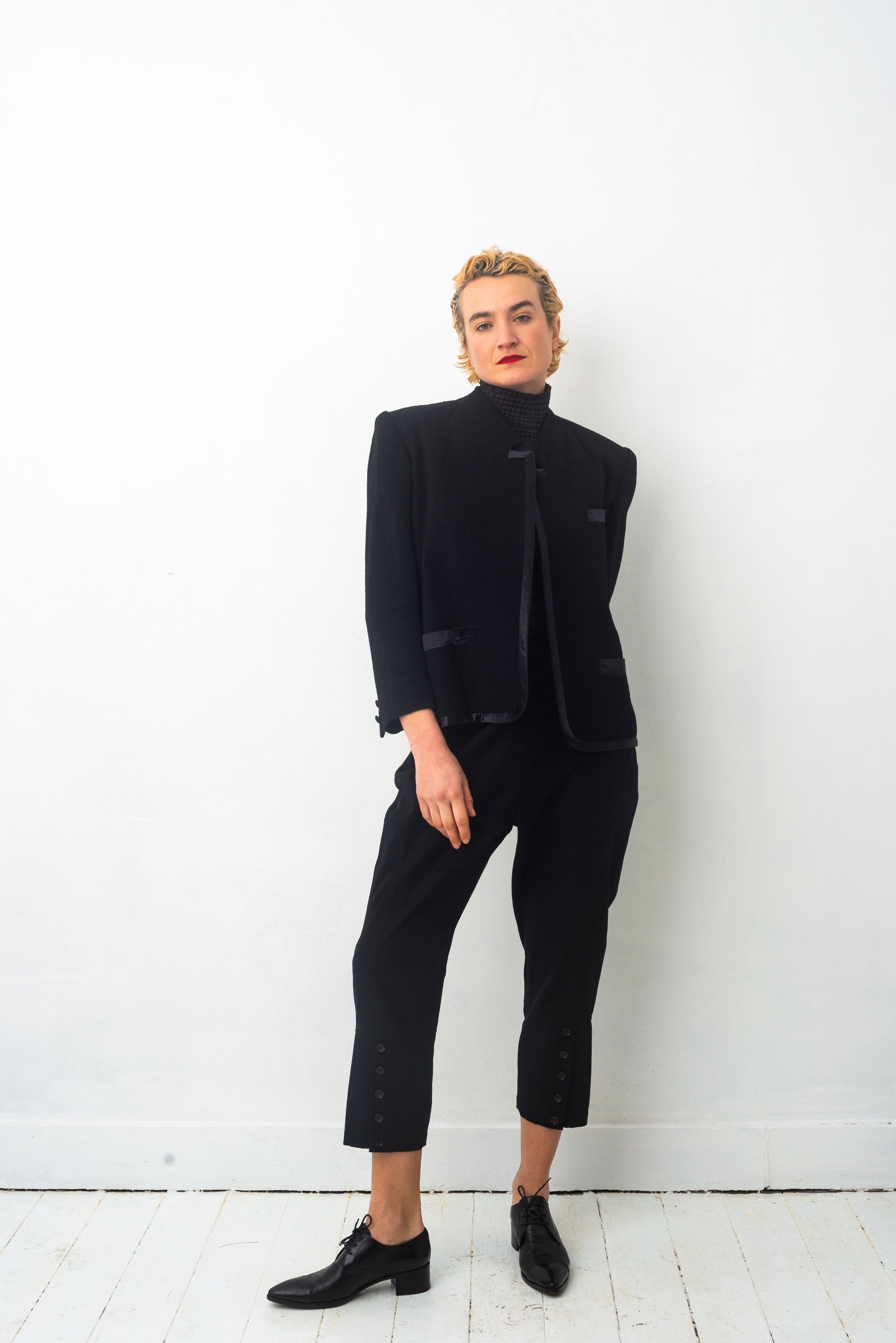 Comme des Garçons 80's wool woven short jacket with mandarin collar and silk finishings