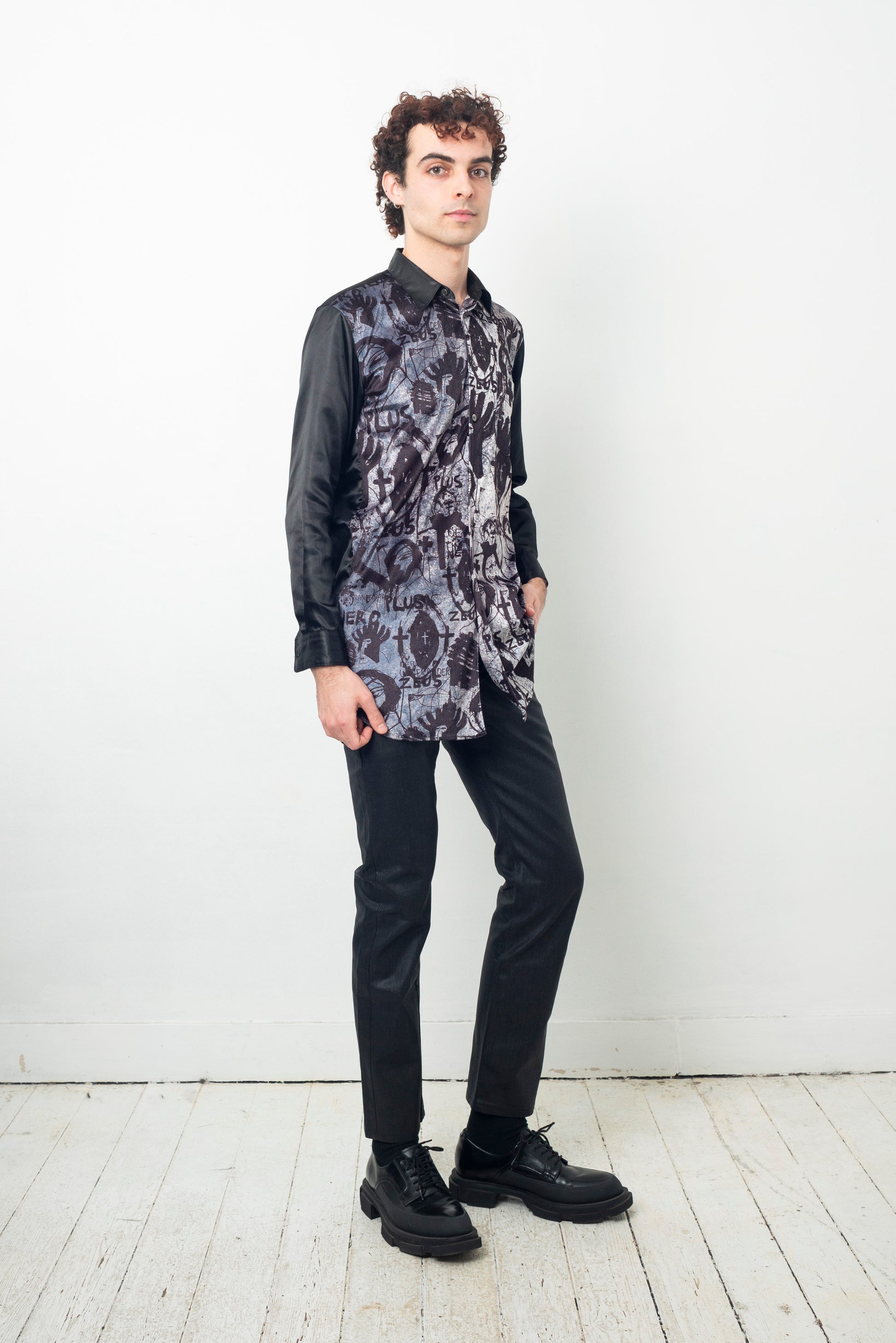 Here worn with a Comme des Garçons x Jonathan Meese shirt and John Richmond jacket, all available online