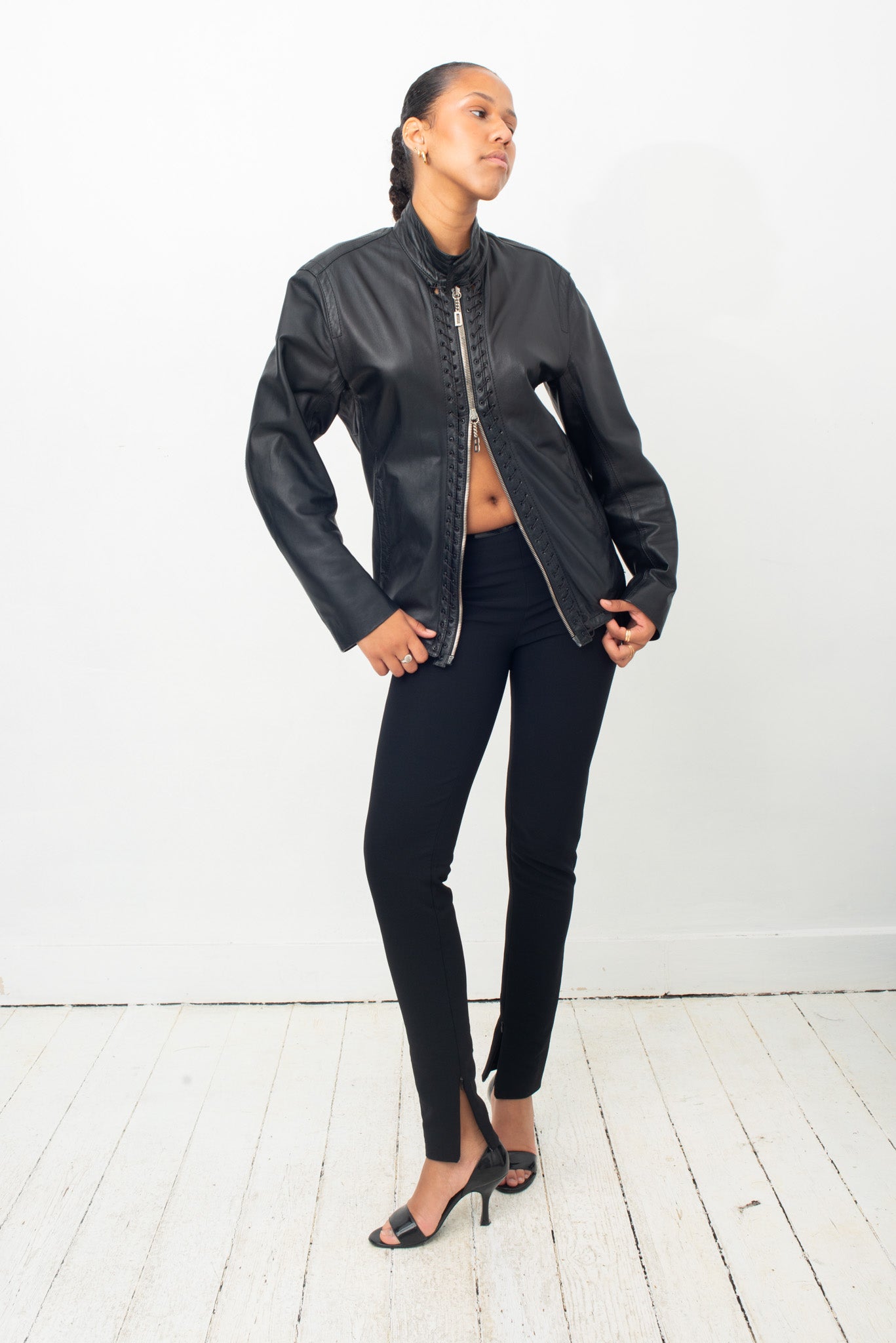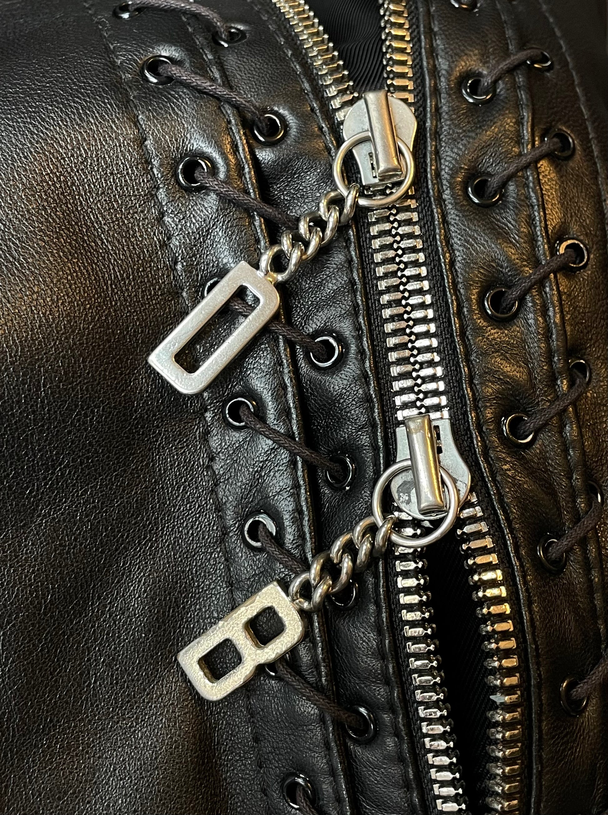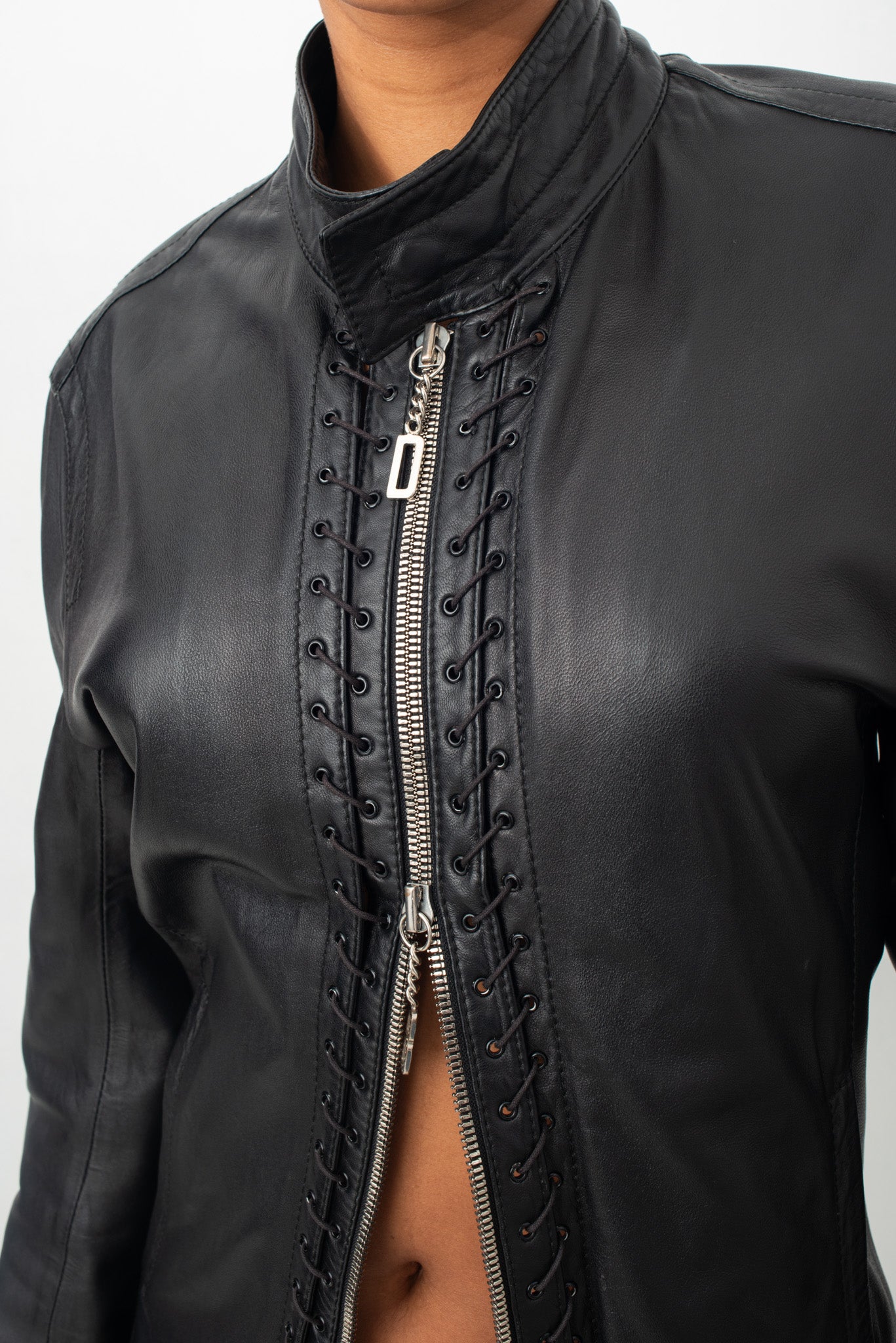 Dirk Bikkembergs 2000's leather jacket with lace zipper detail