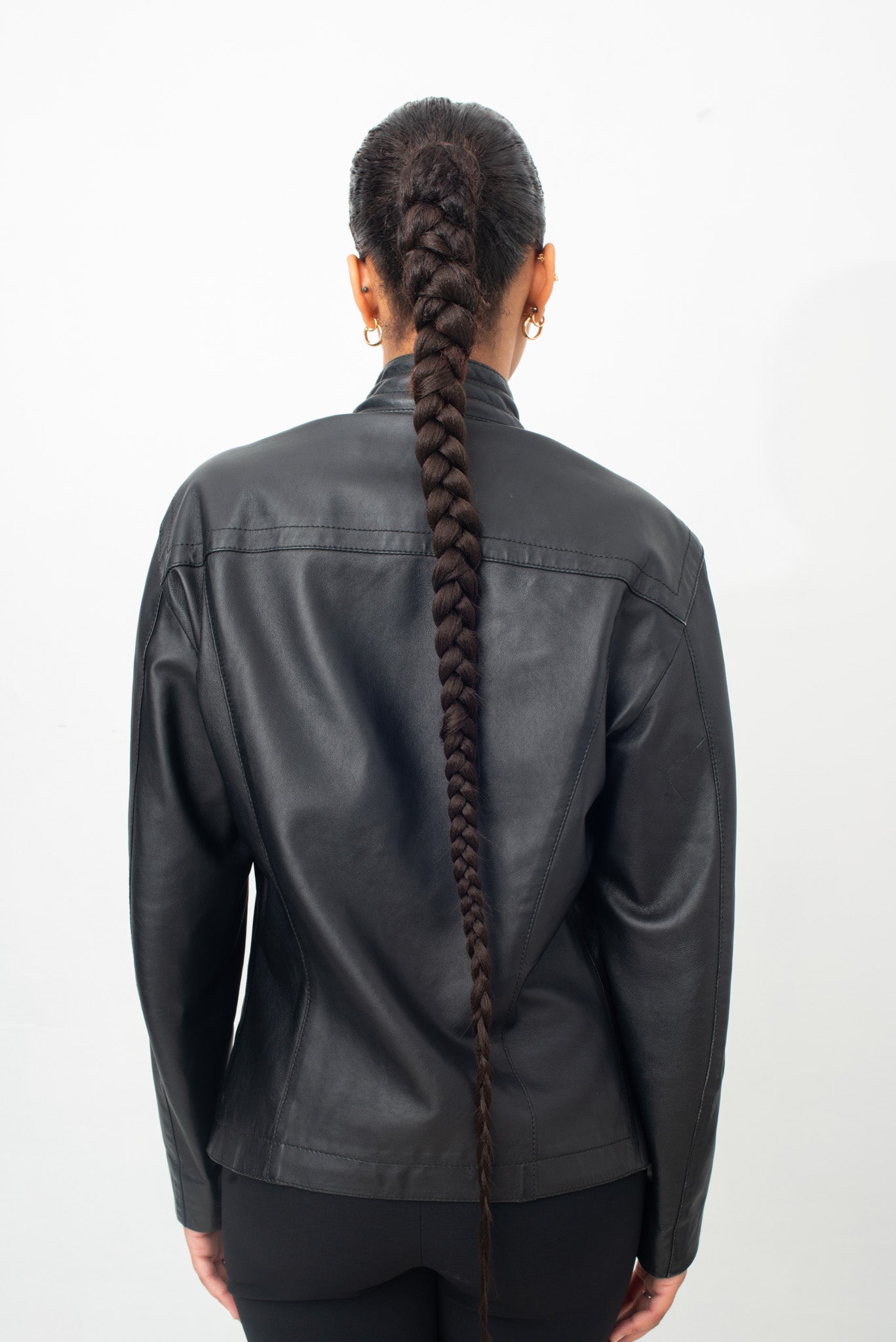 Alongside the zipper, the garment features a very unique lace detail, who recalls the work on a corset. The brand's initials in metallic letters, D and a B are also featuring on both side of the double zipper. Two simple side pockets shape the waist of the piece and the upright collar closes with a pressure button.