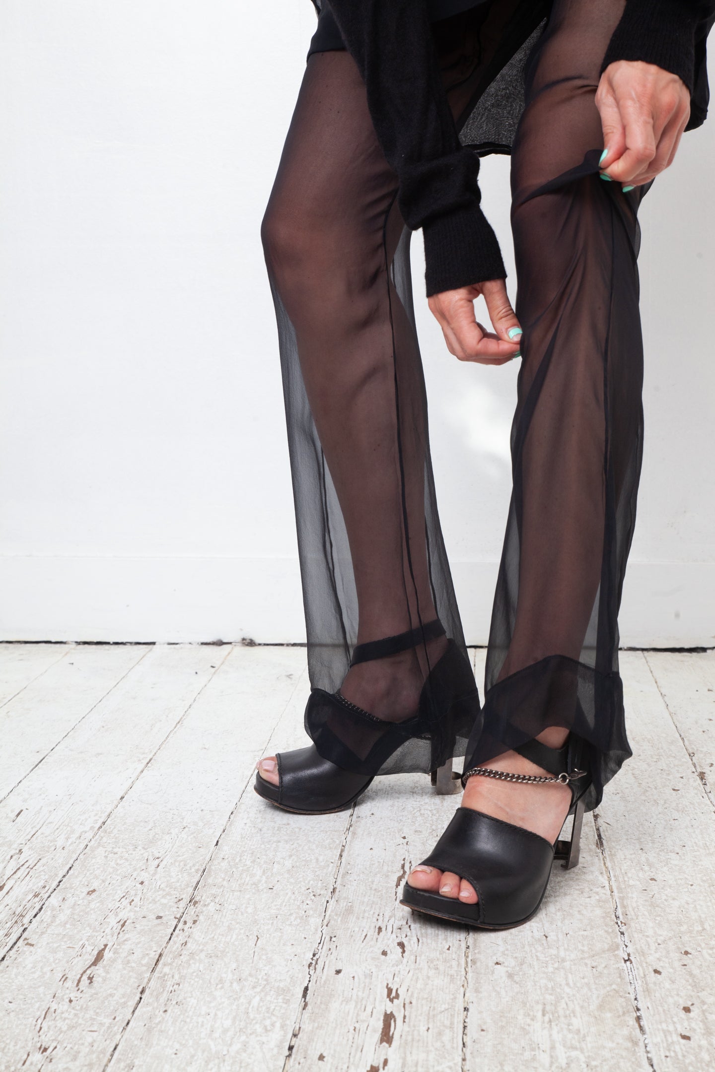 Dirk Bikkembergs 2000's leather open toe shoes with a steel heel and a chain that closes around the foot.