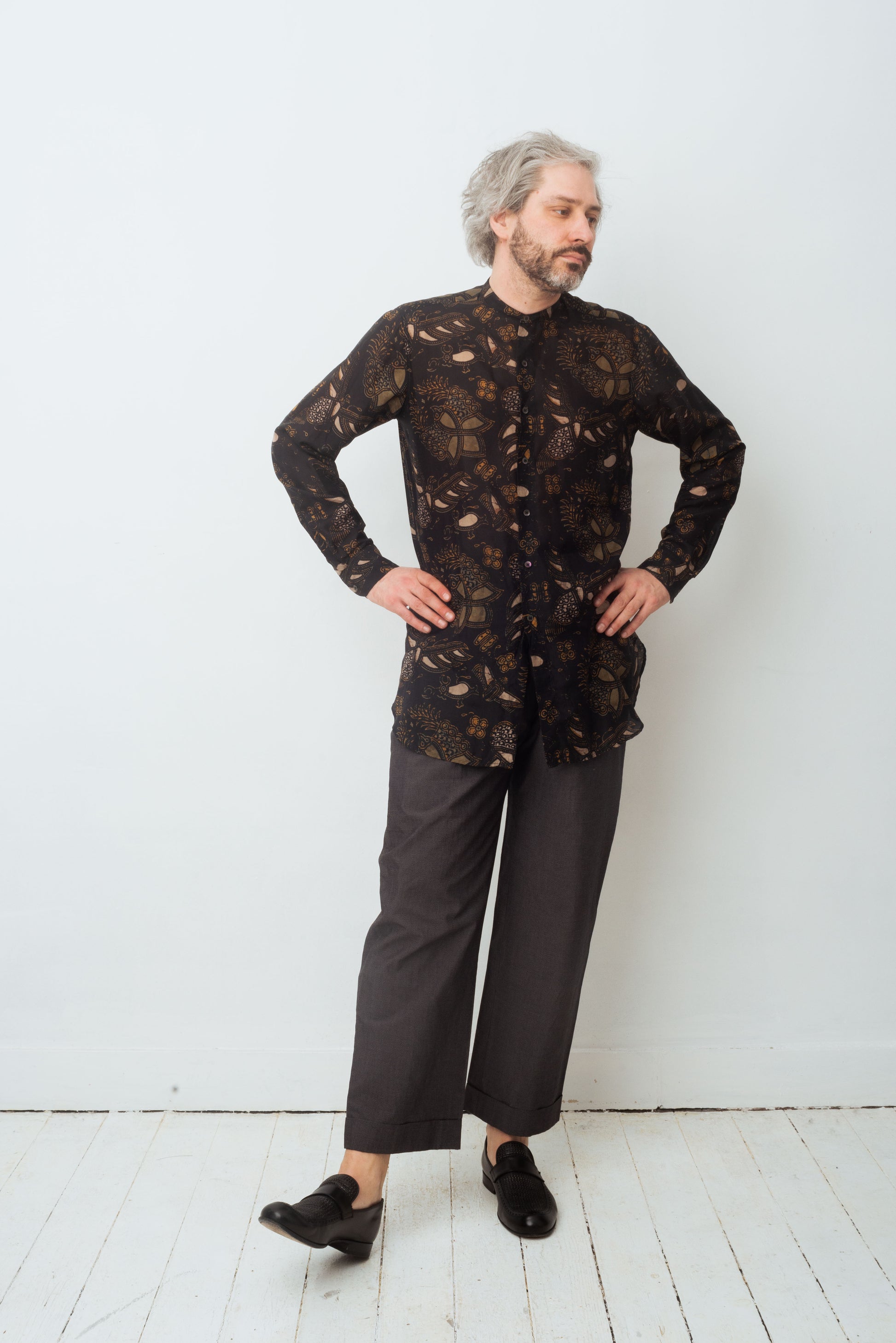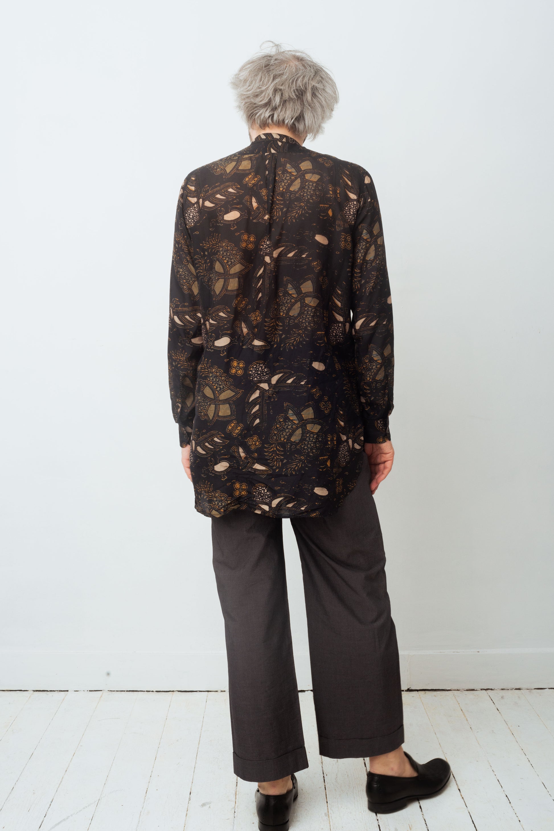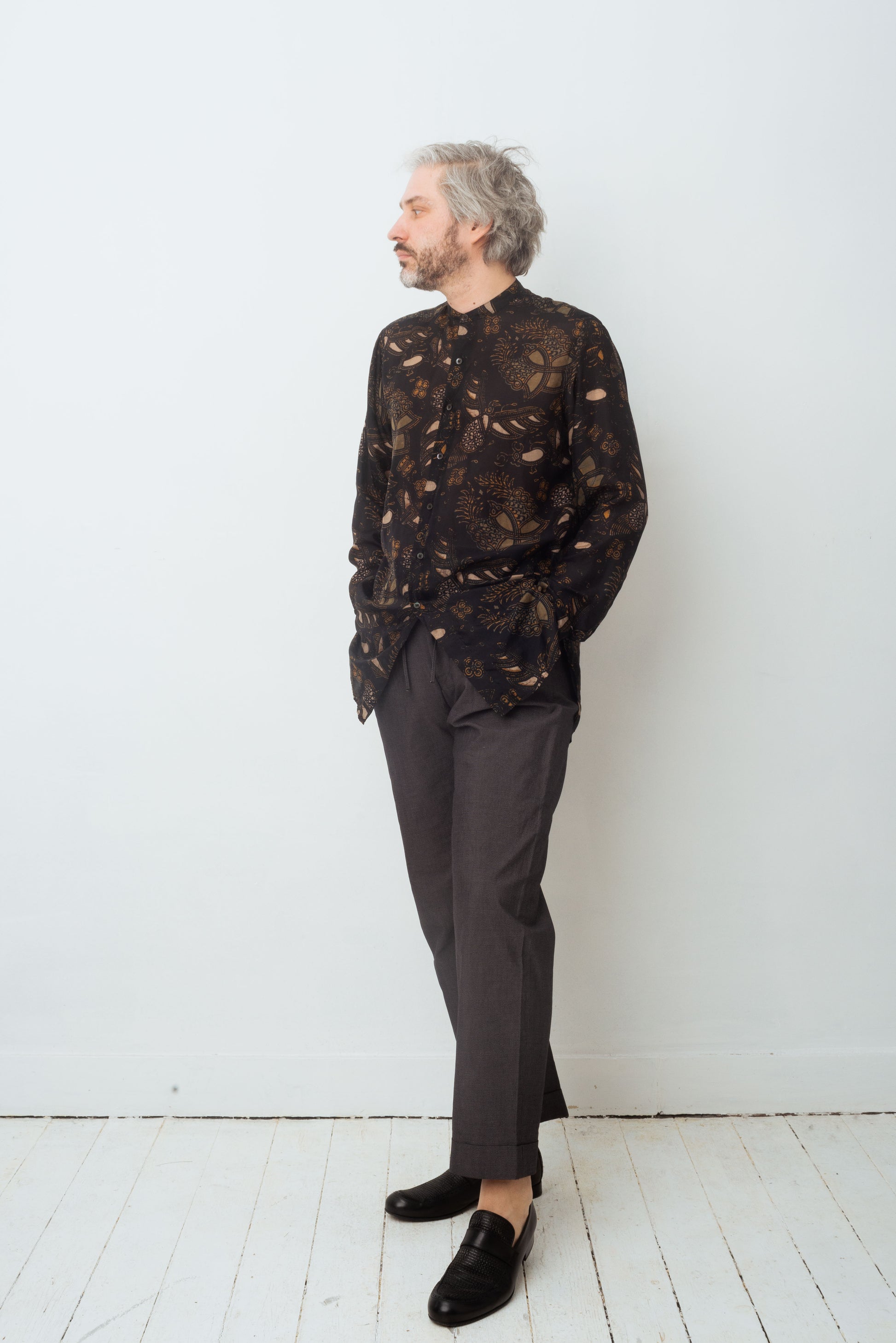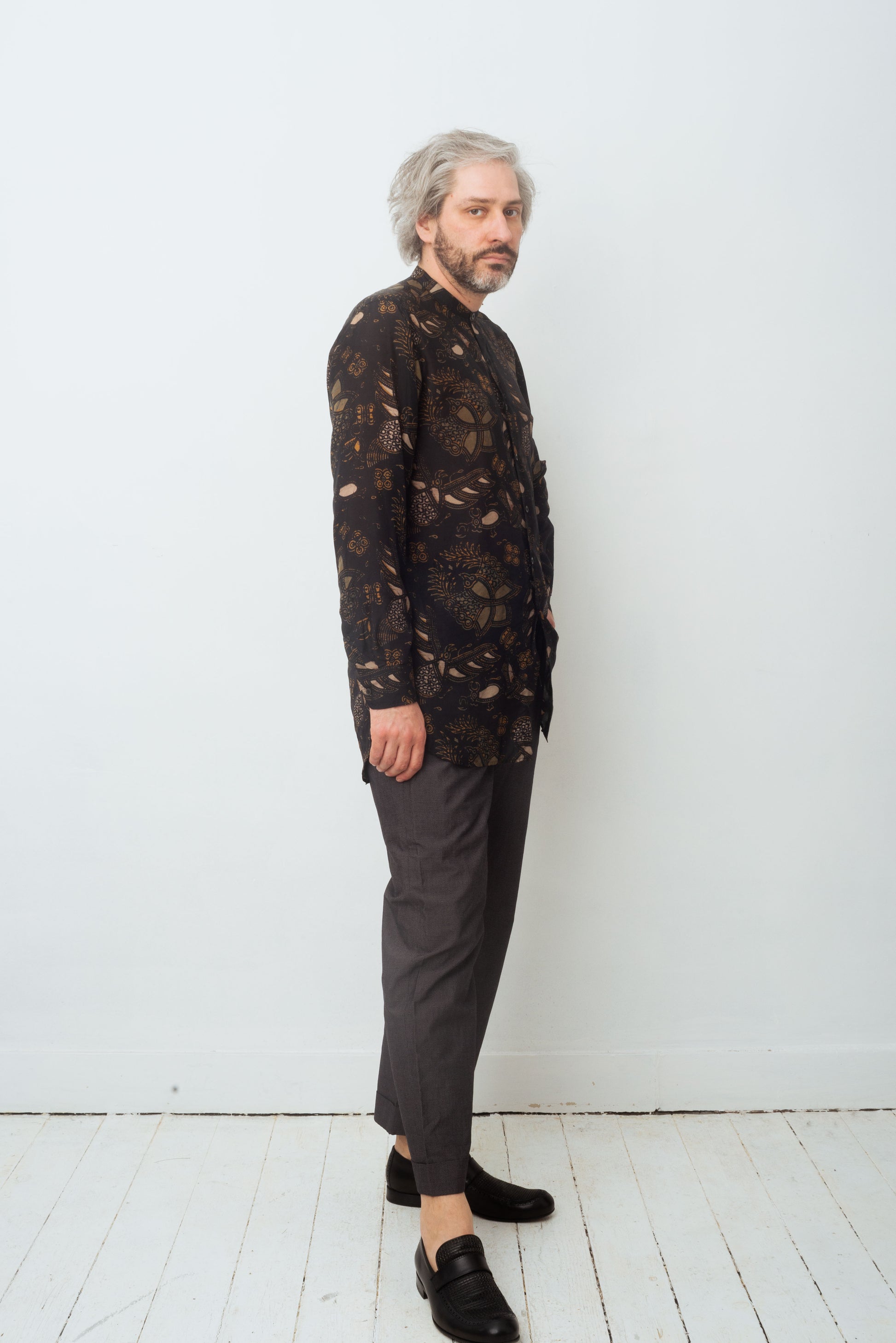 Dries van Noten FW 2015 silk floral printed khaki shirt