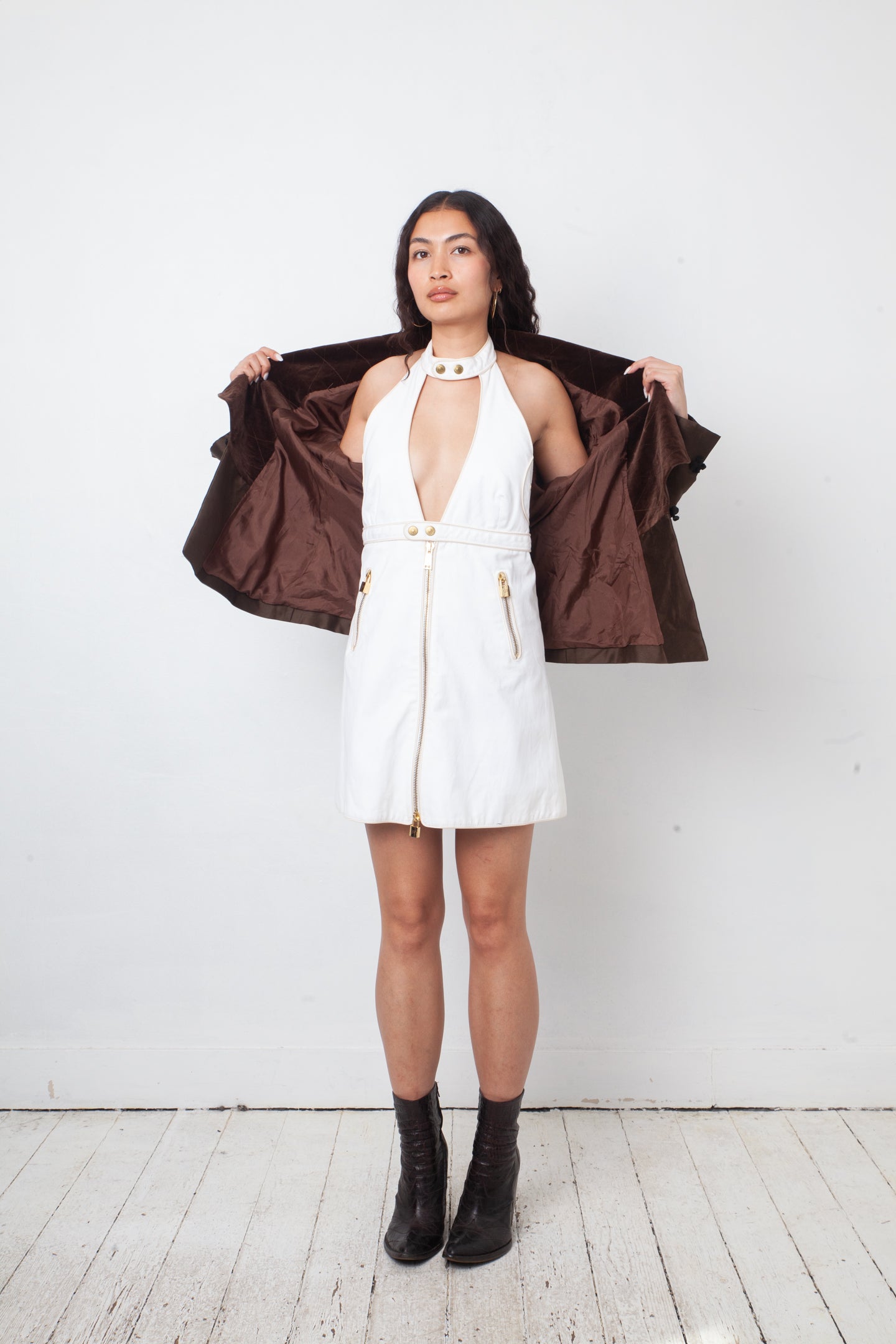 Dsquared2 Spring 2008 cotton halter dress with golden hardware