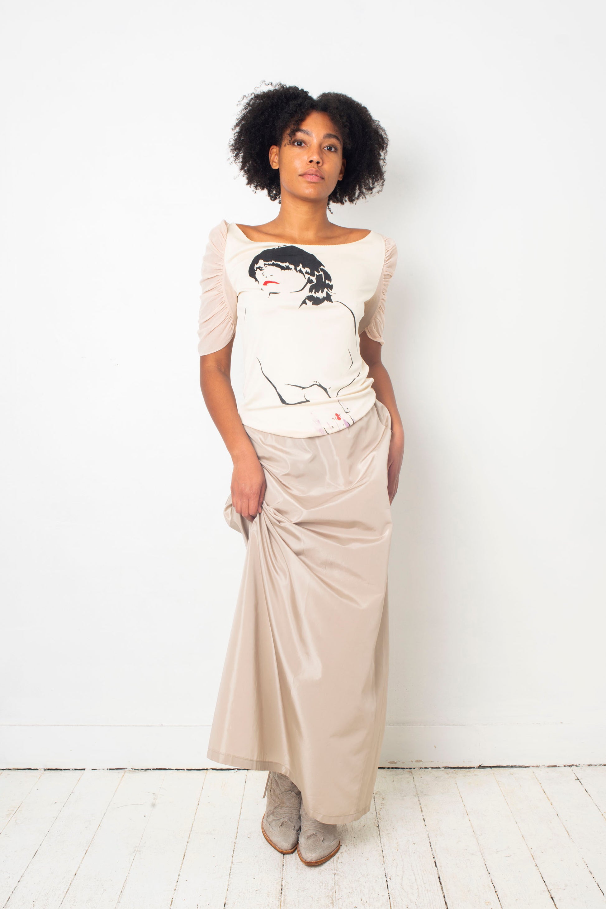 The size tag reads Italian 42, but thanks to the drawstring the skirt can be worn anywhere from a size Small to Large.