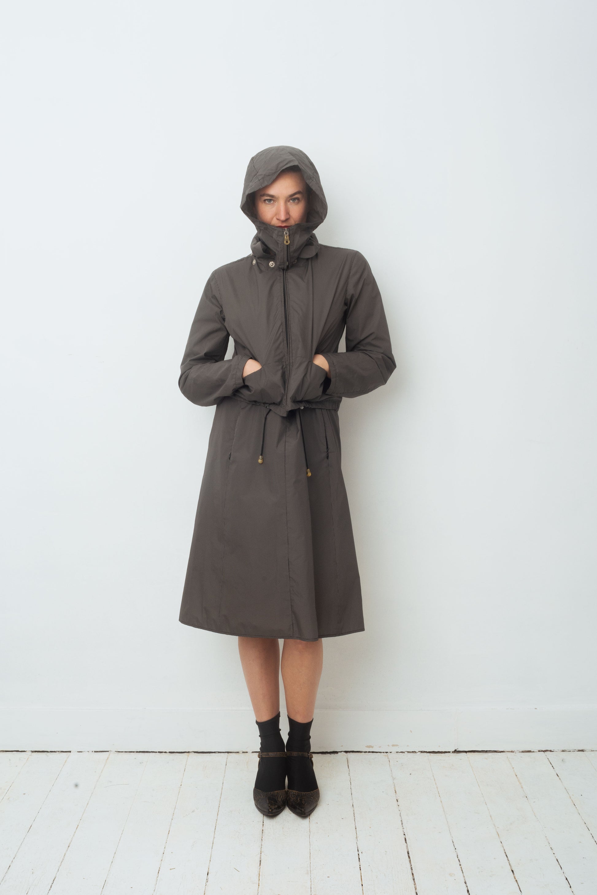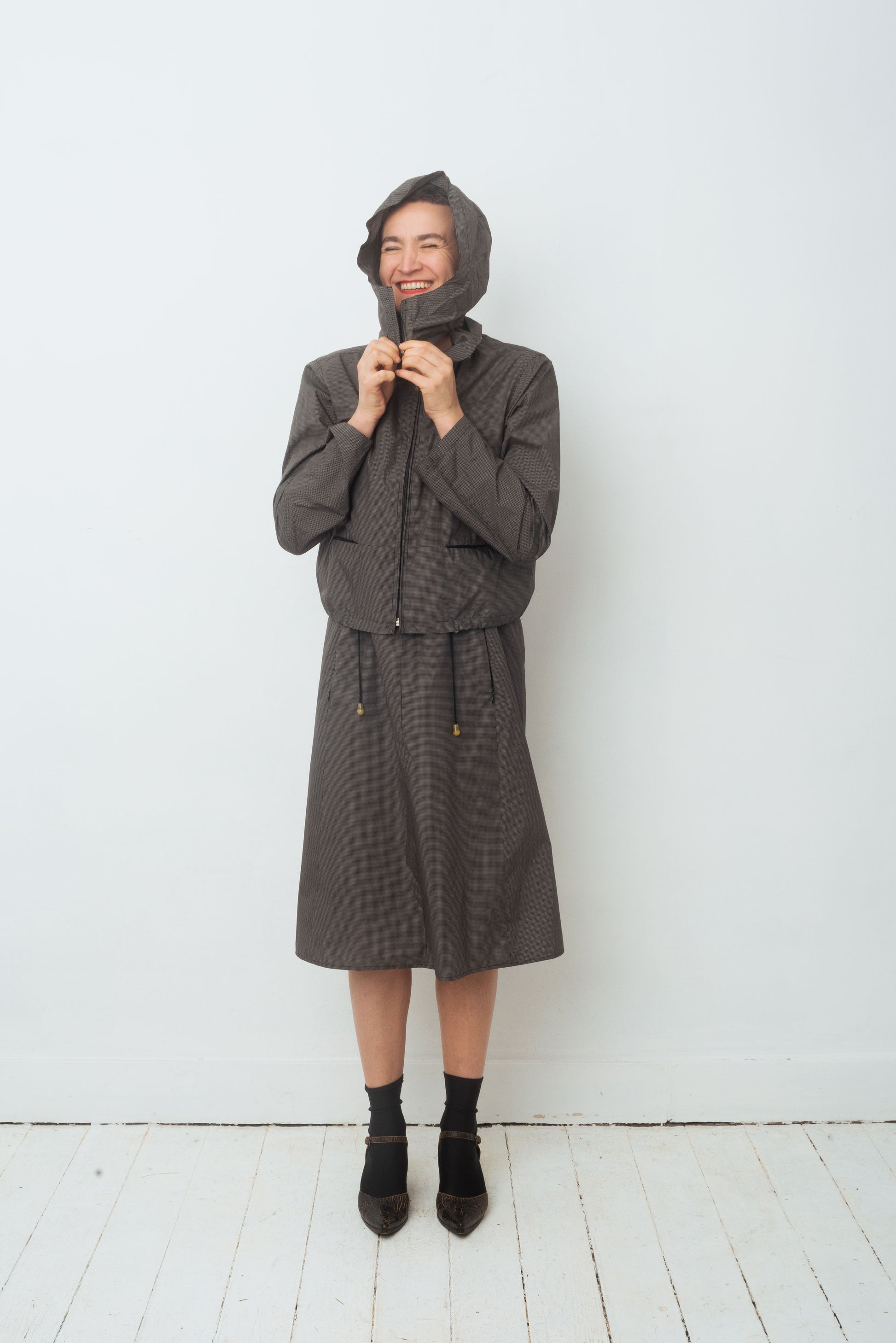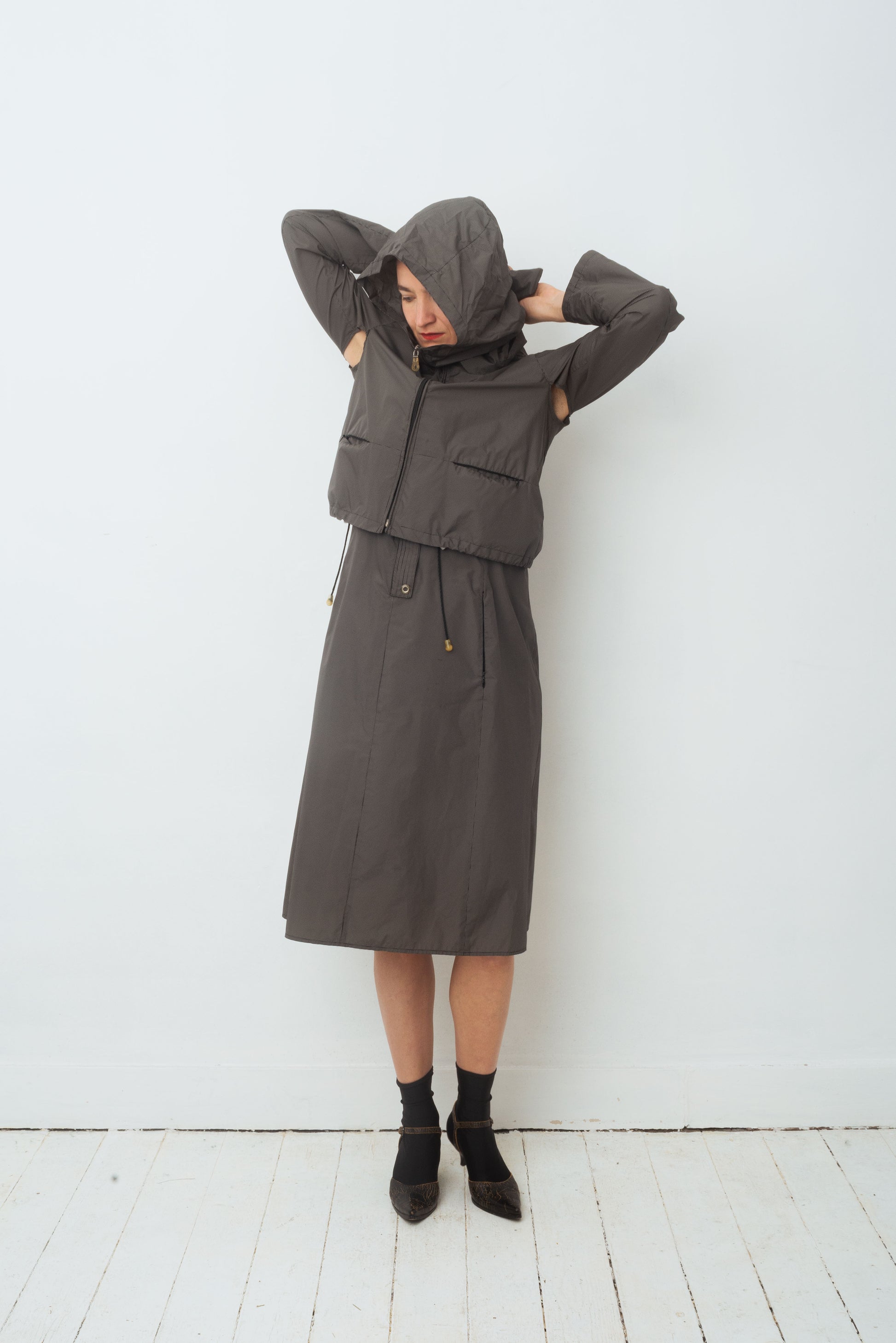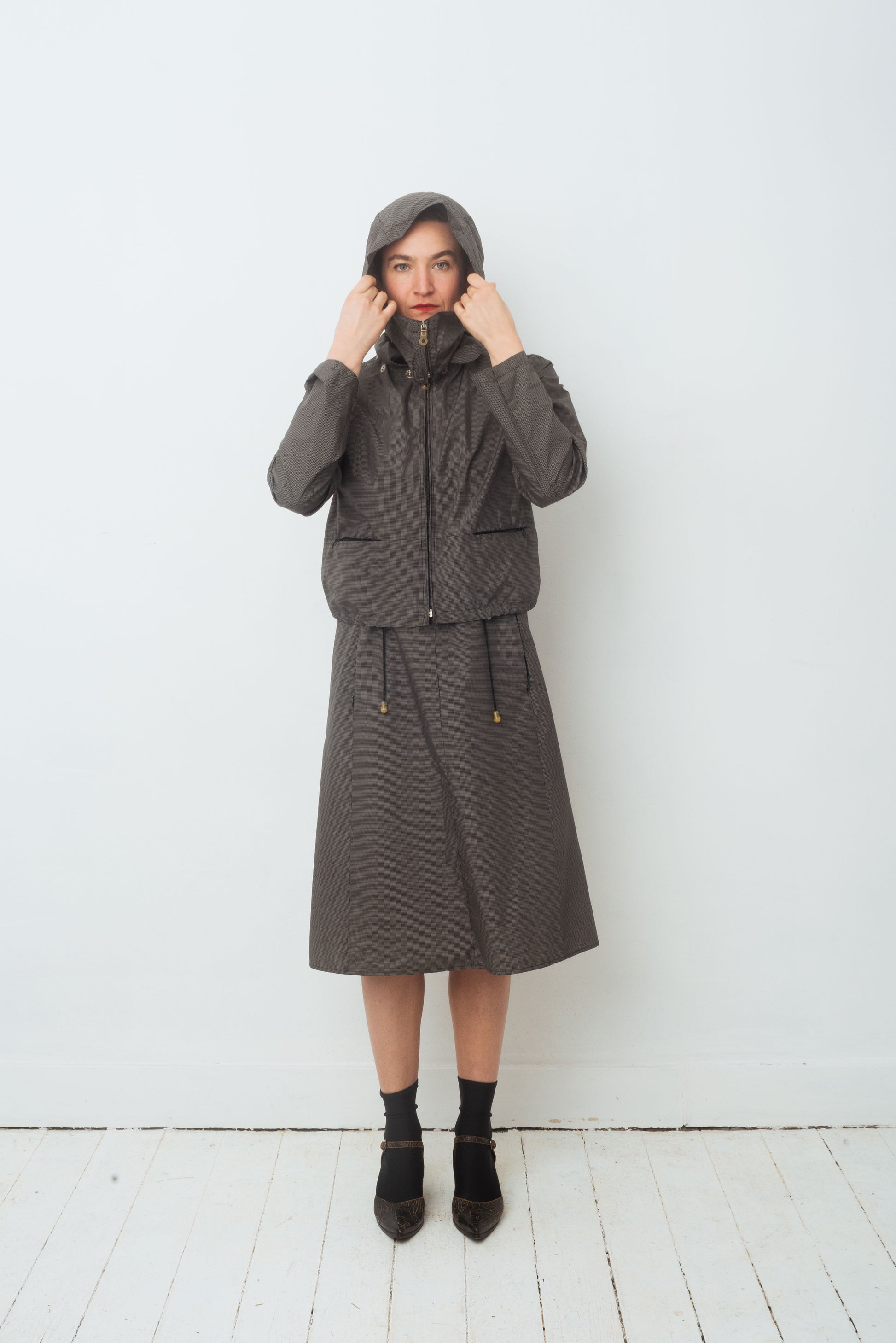 Emporio Armani 90's nylon grey rain jacket with removable collar and hood