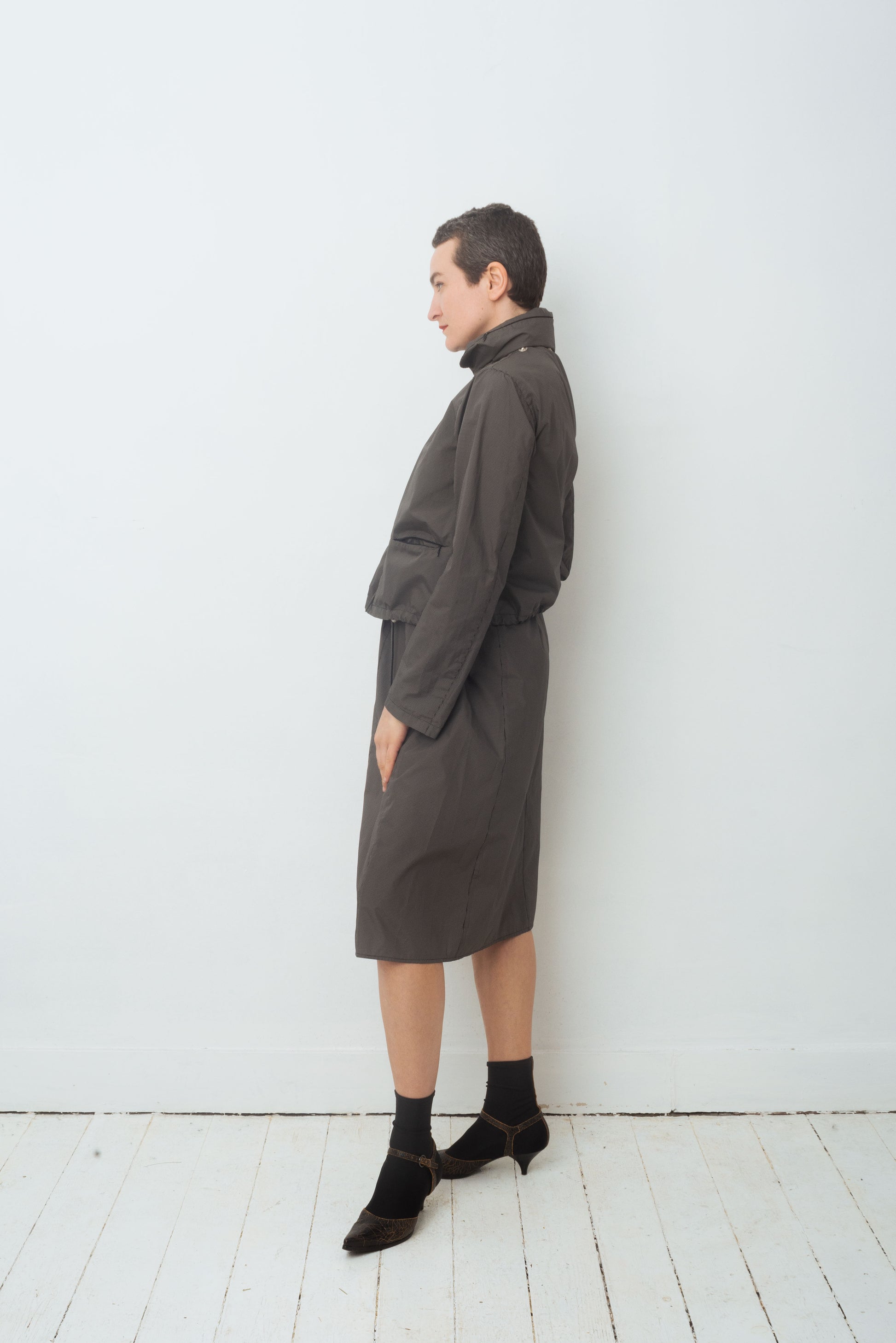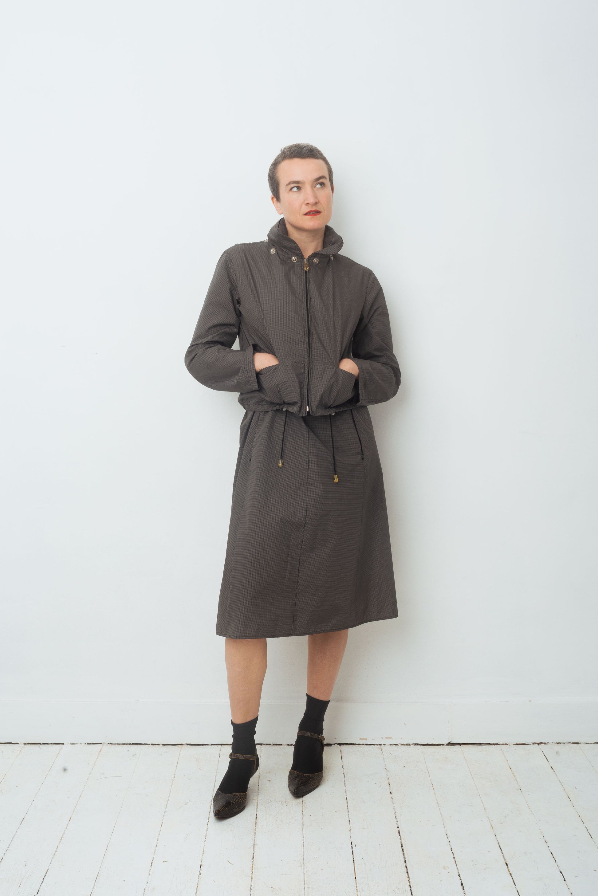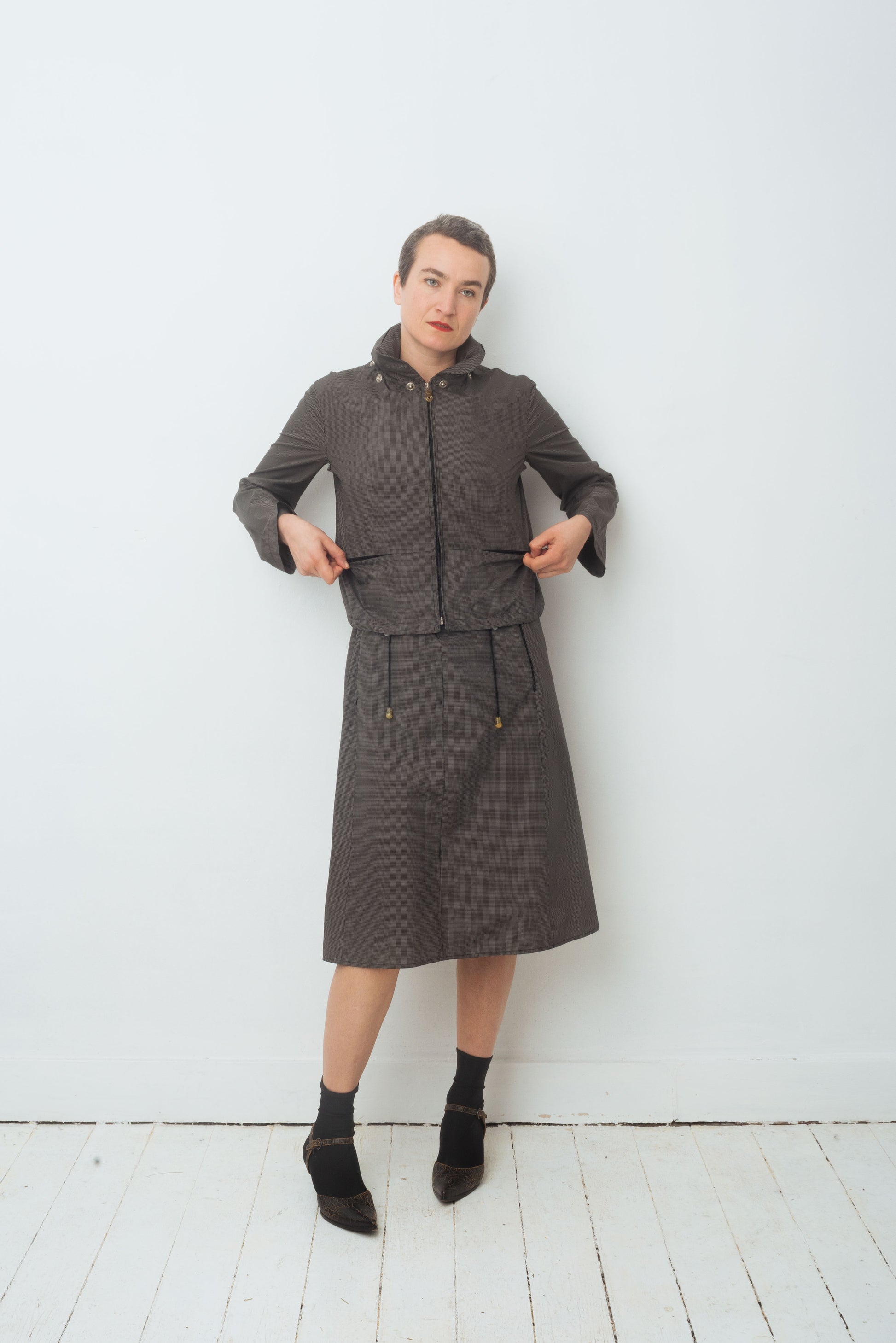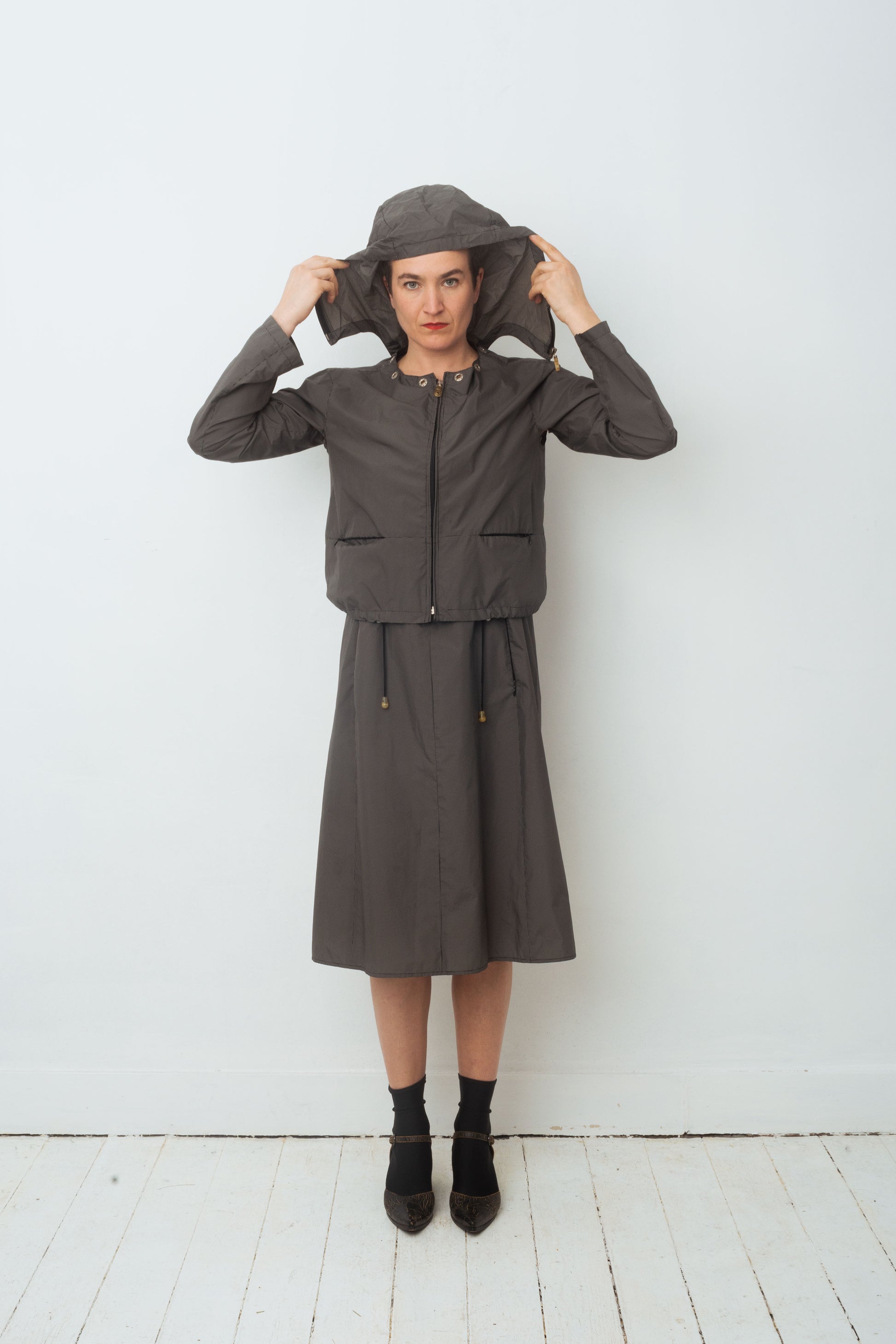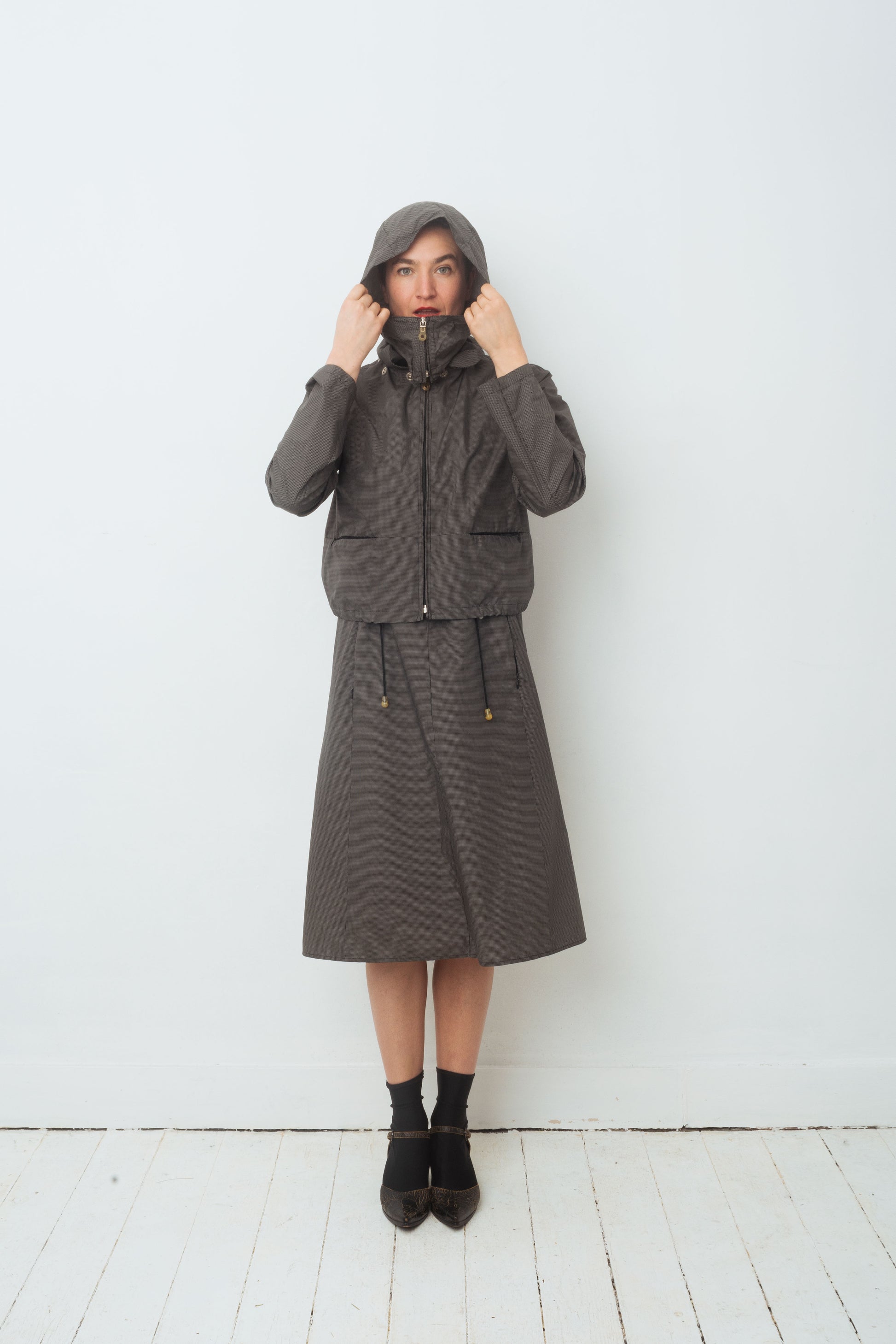 Emporio Armani 90's nylon grey rain jacket with removable collar and hood
