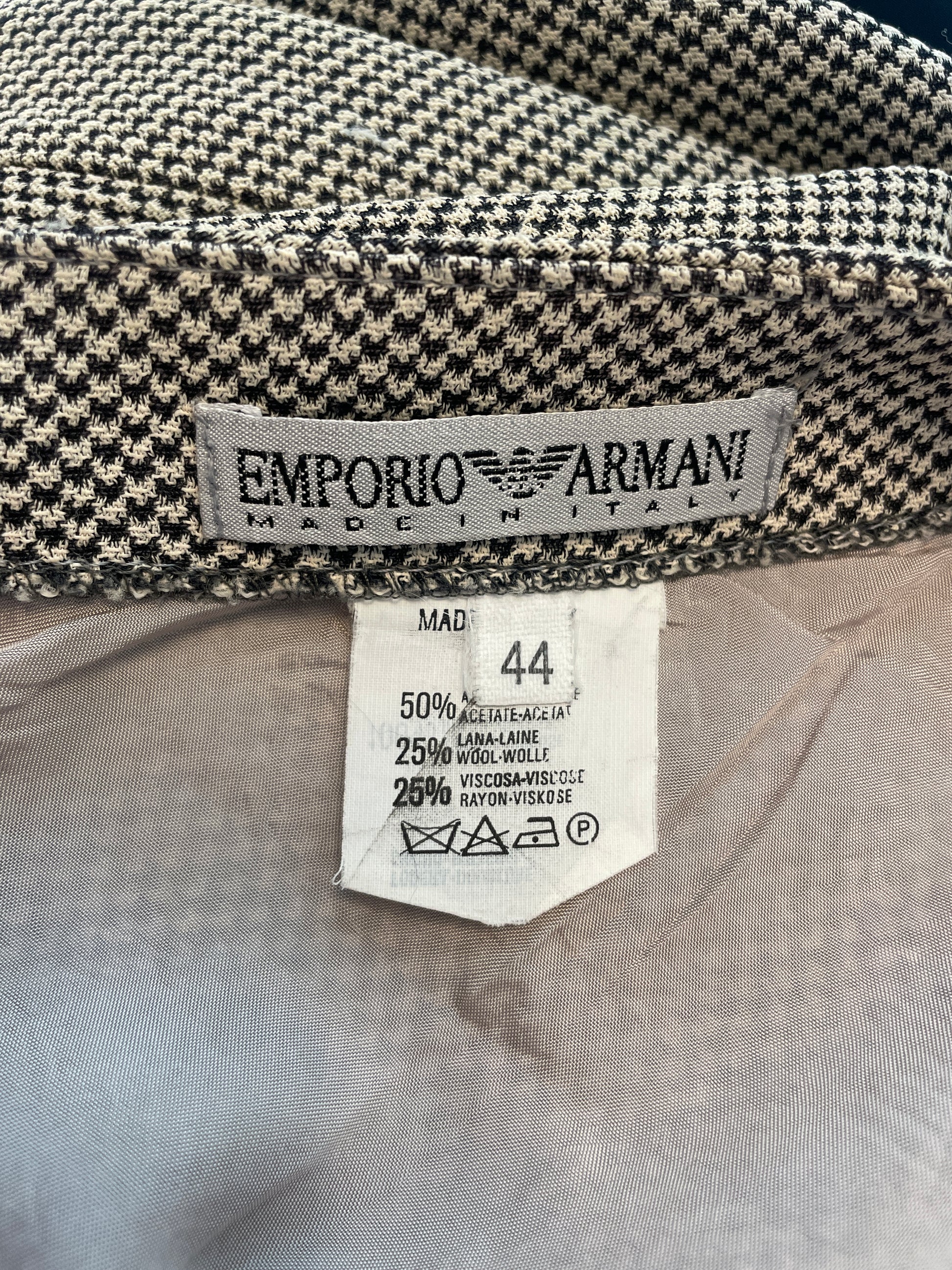 Lovely Emporio Armani skirt from the late 90's in a wool blend houndstooth pattern with a slightly peplum shape.