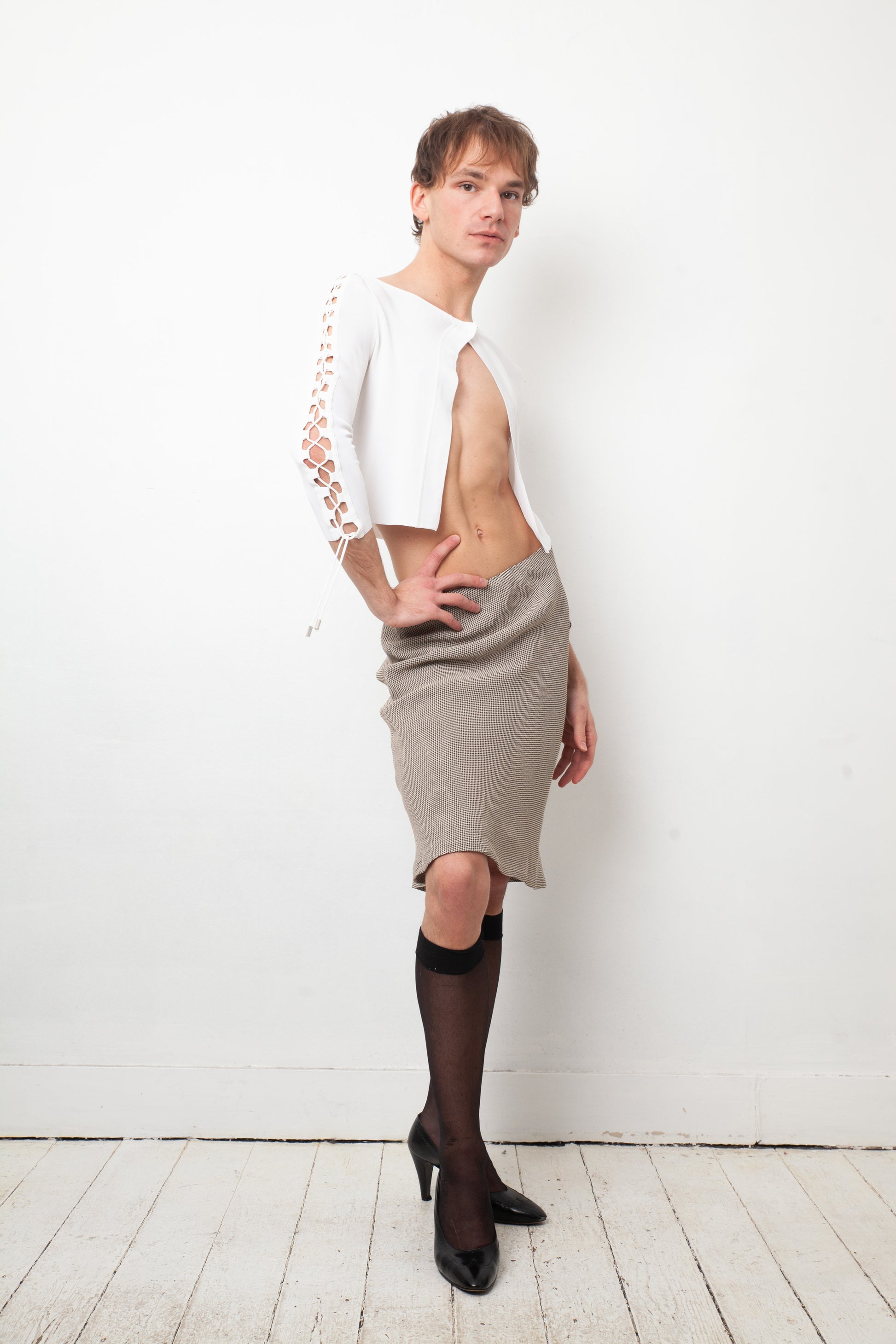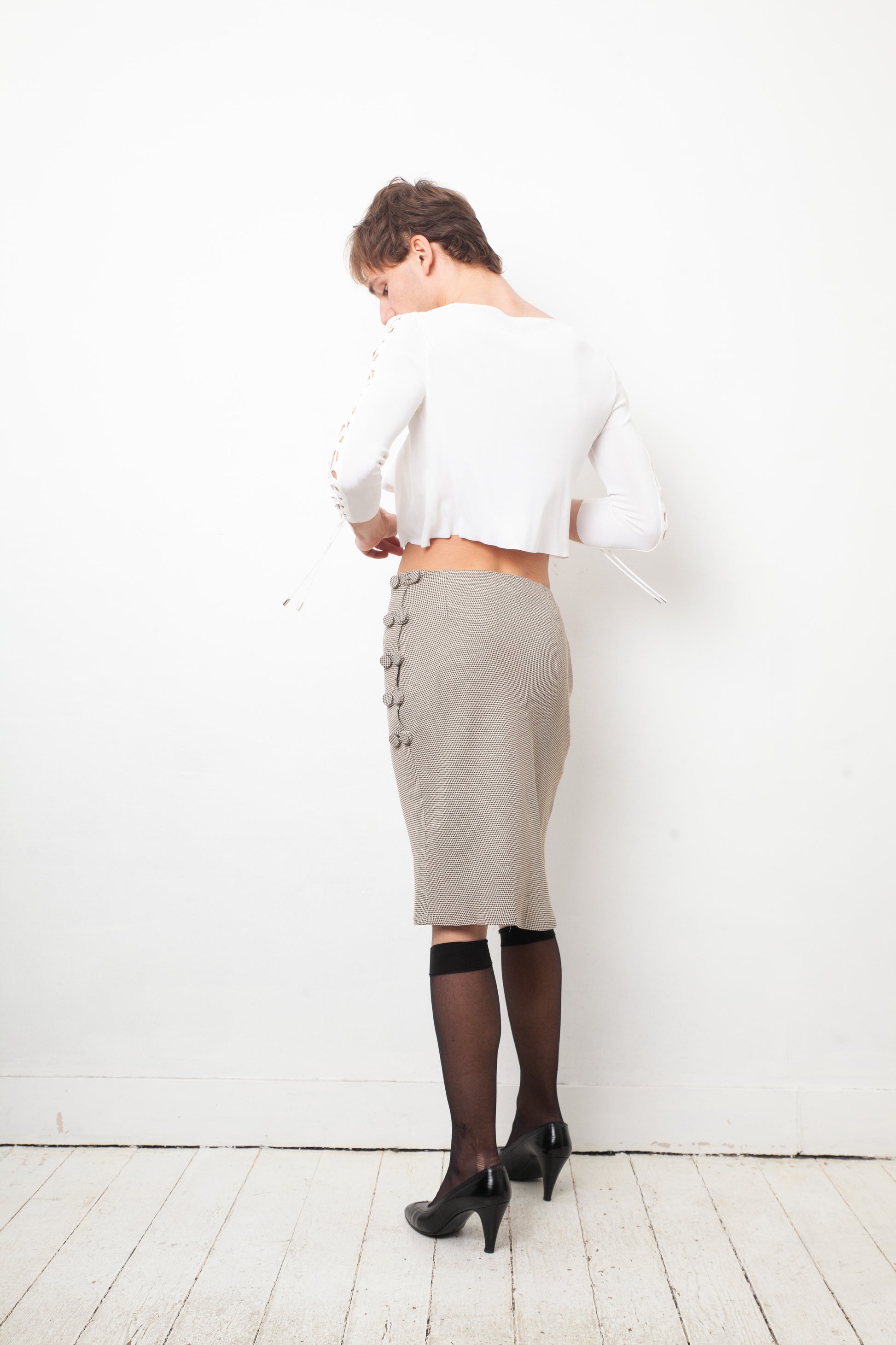 Here worn with a 2000's Gucci white cardigan top, also available online