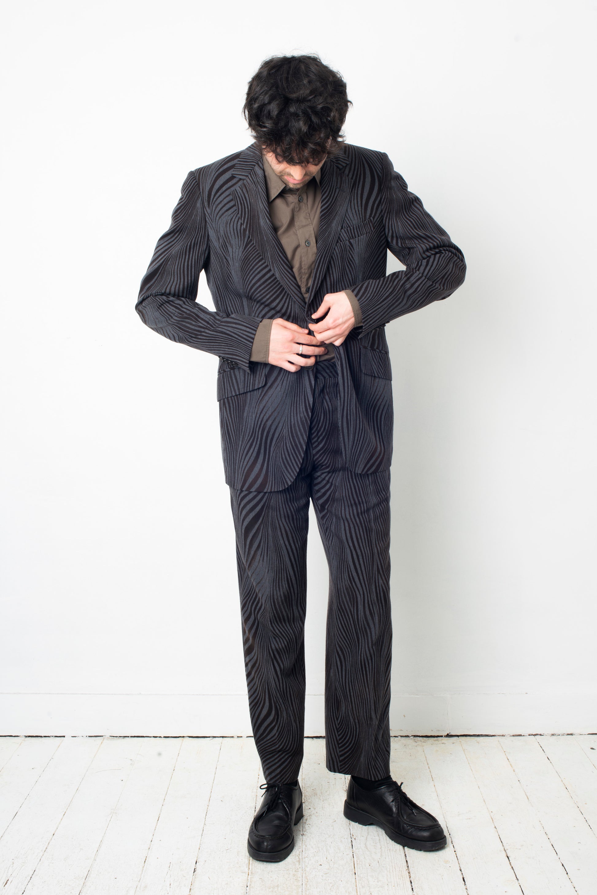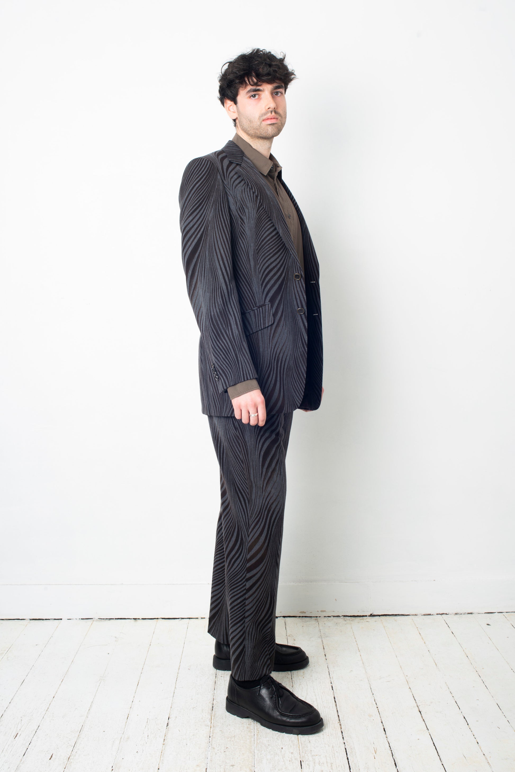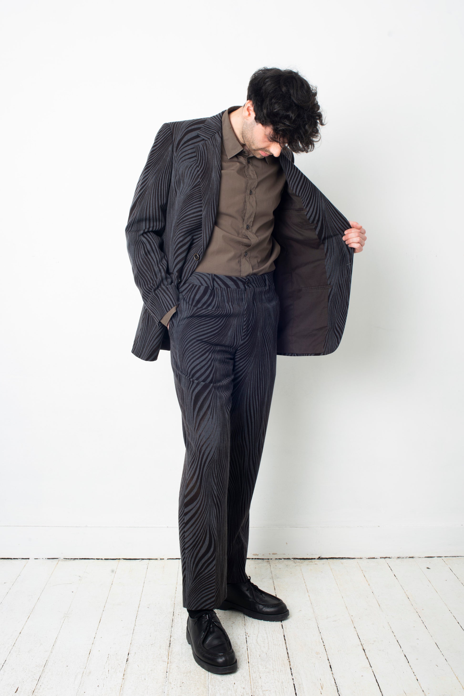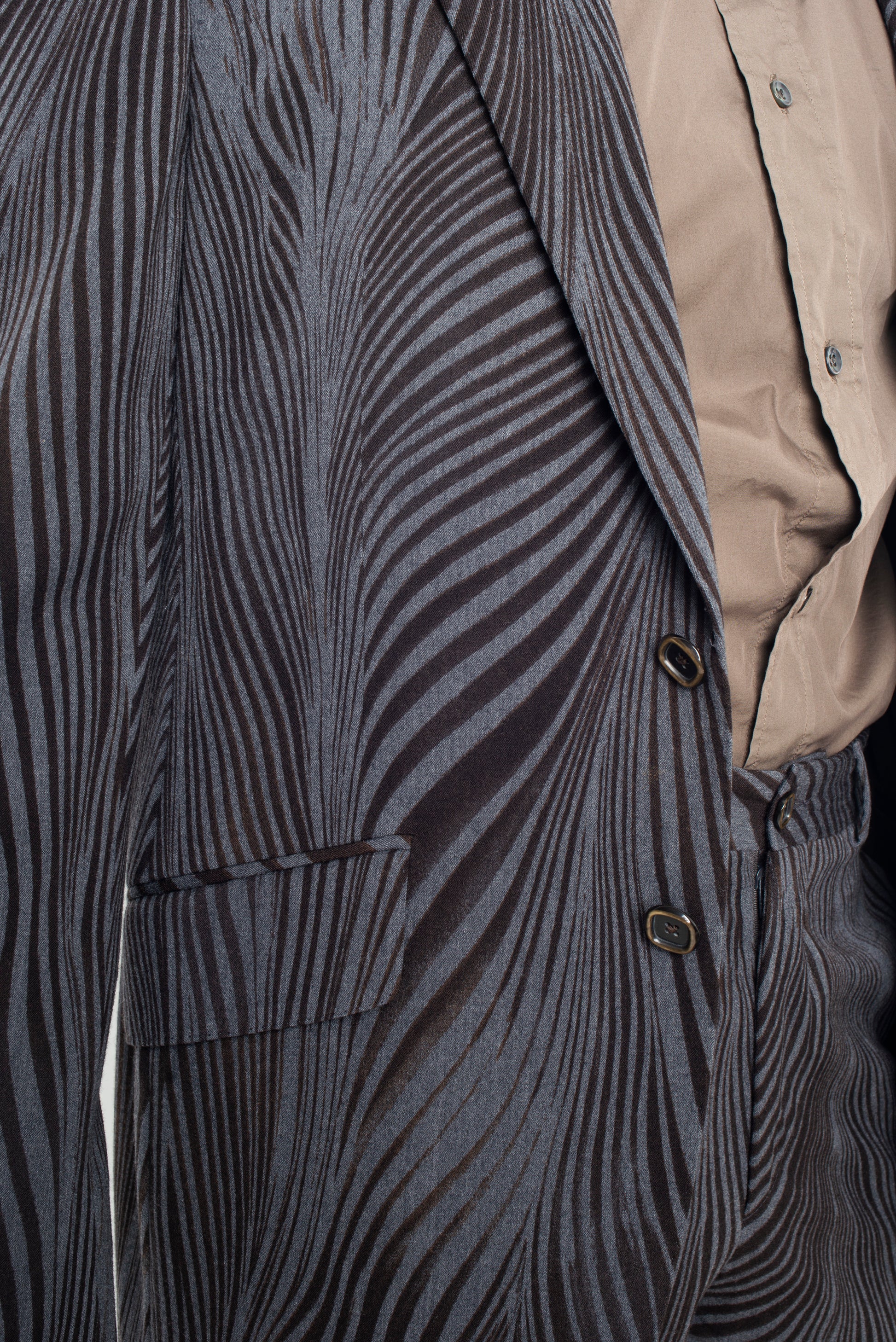 Fabulous wool suit by Etro with a distorted zebra print.