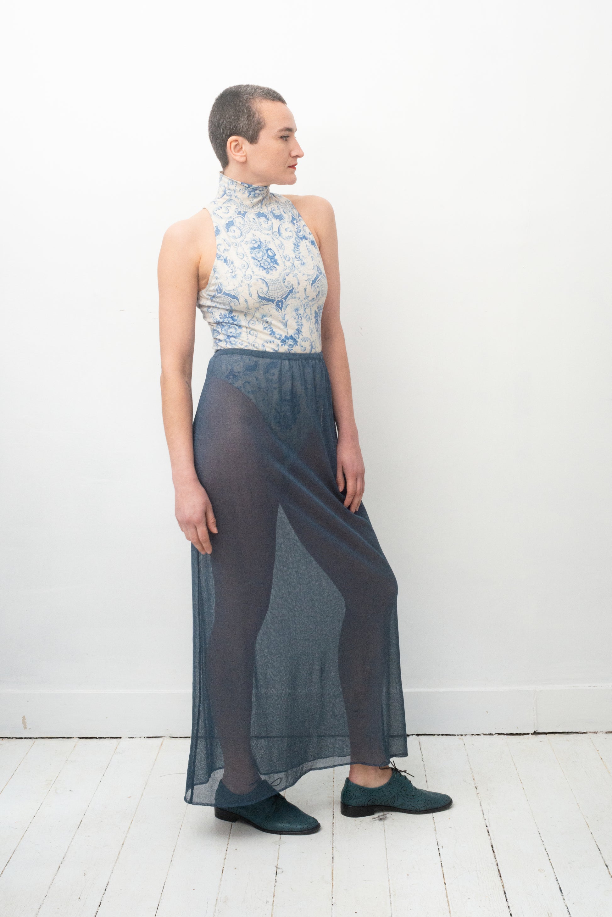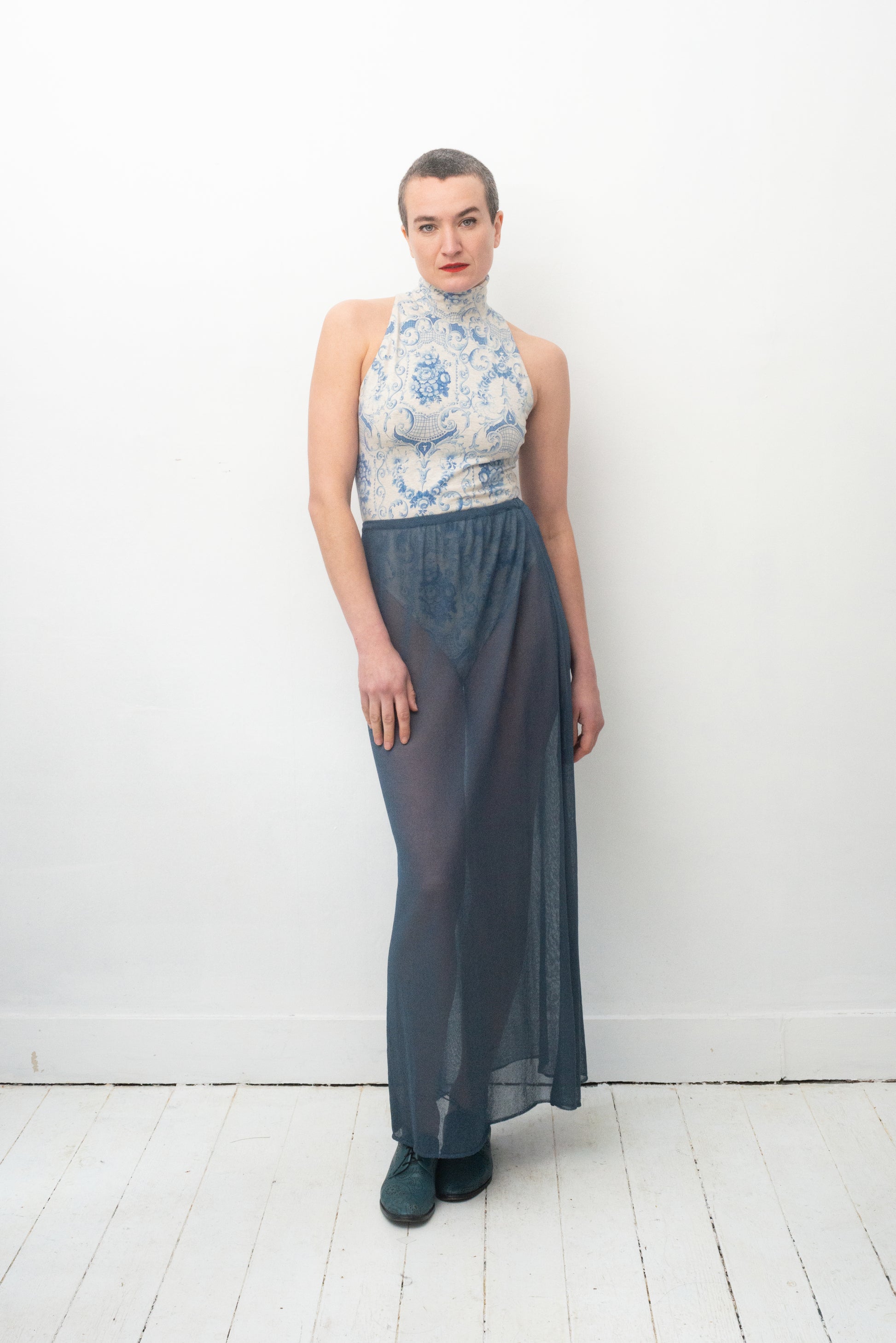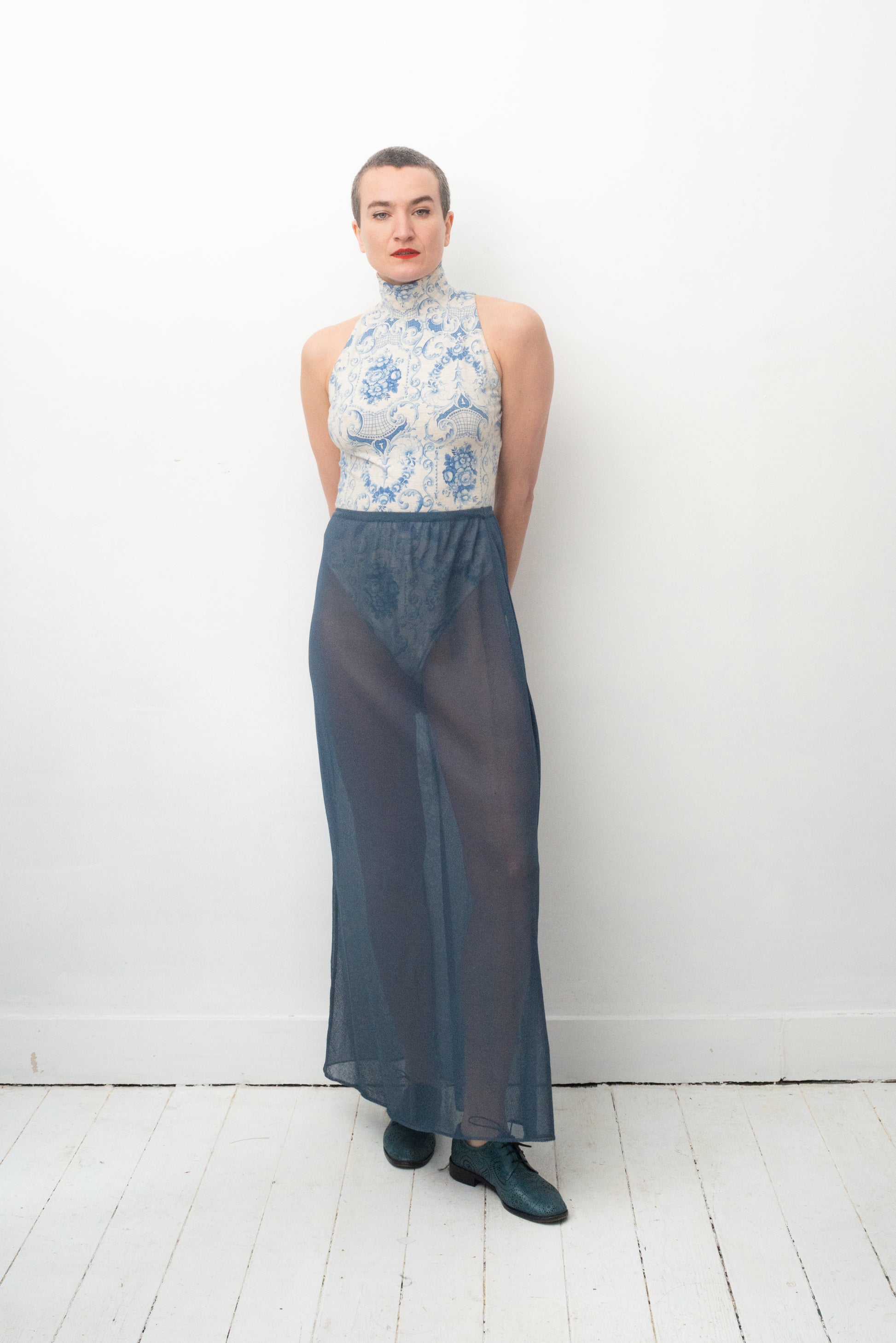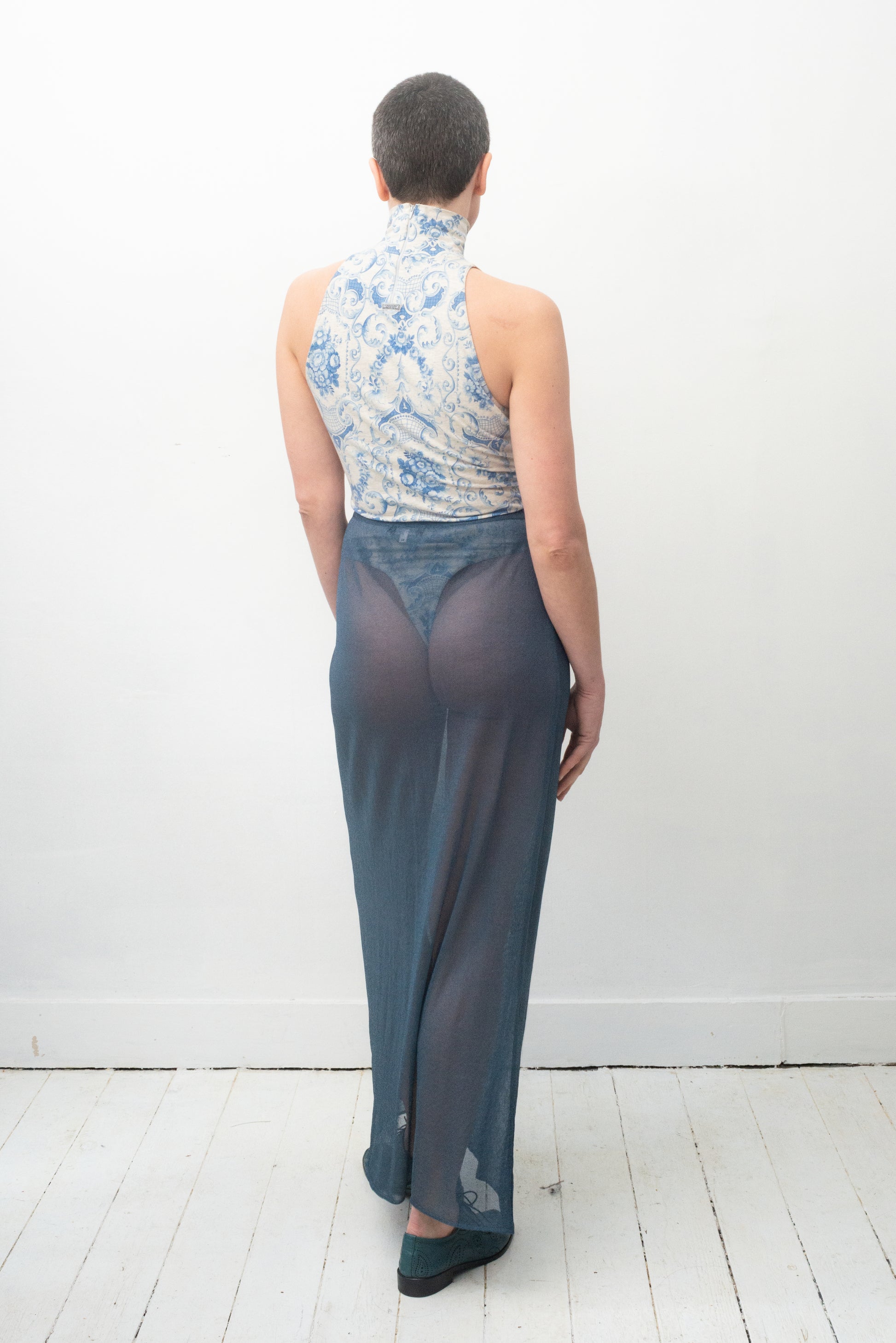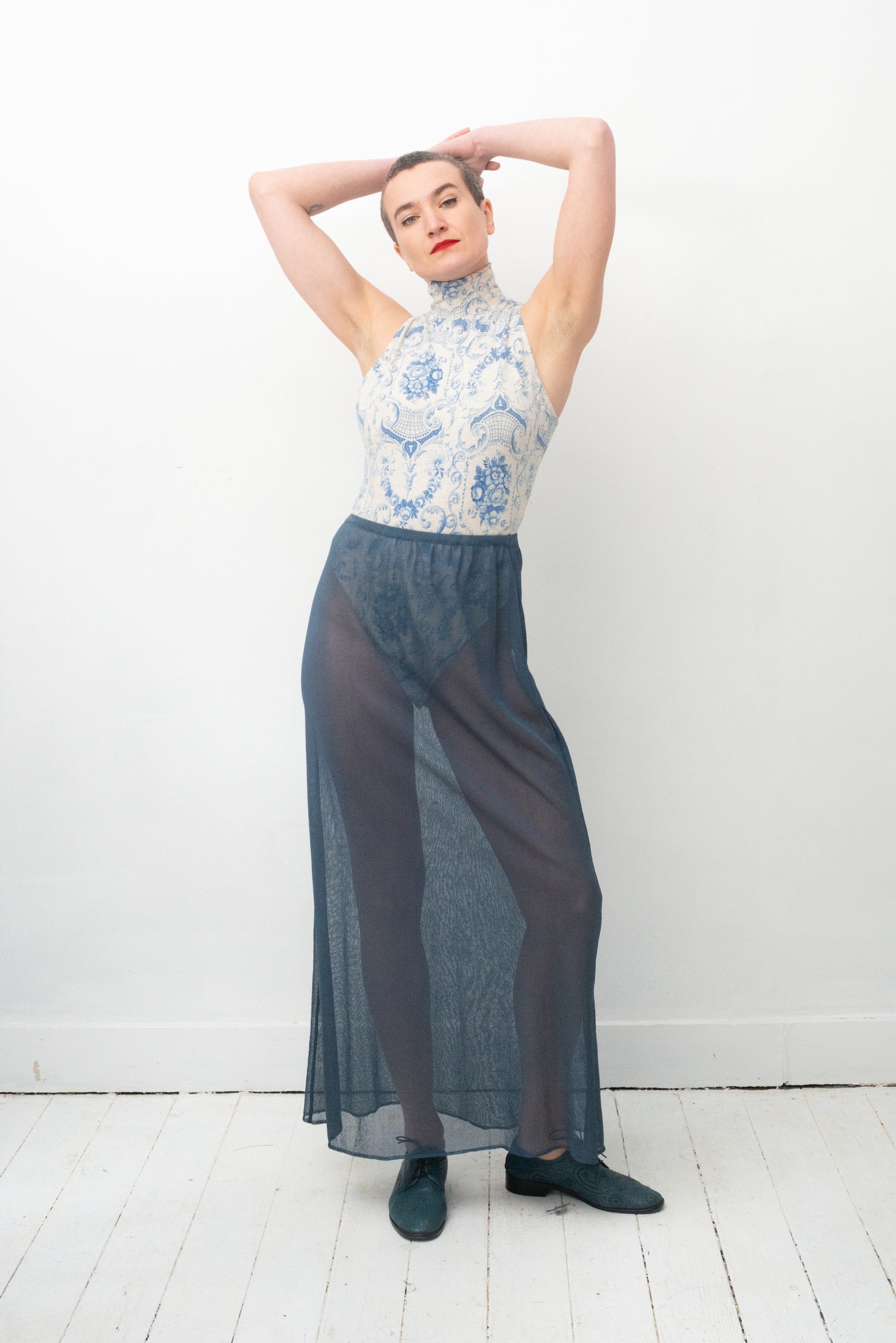 90's bodysuit from Fendi's Fendissime line, with a beautiful light blue porcelain pattern print.