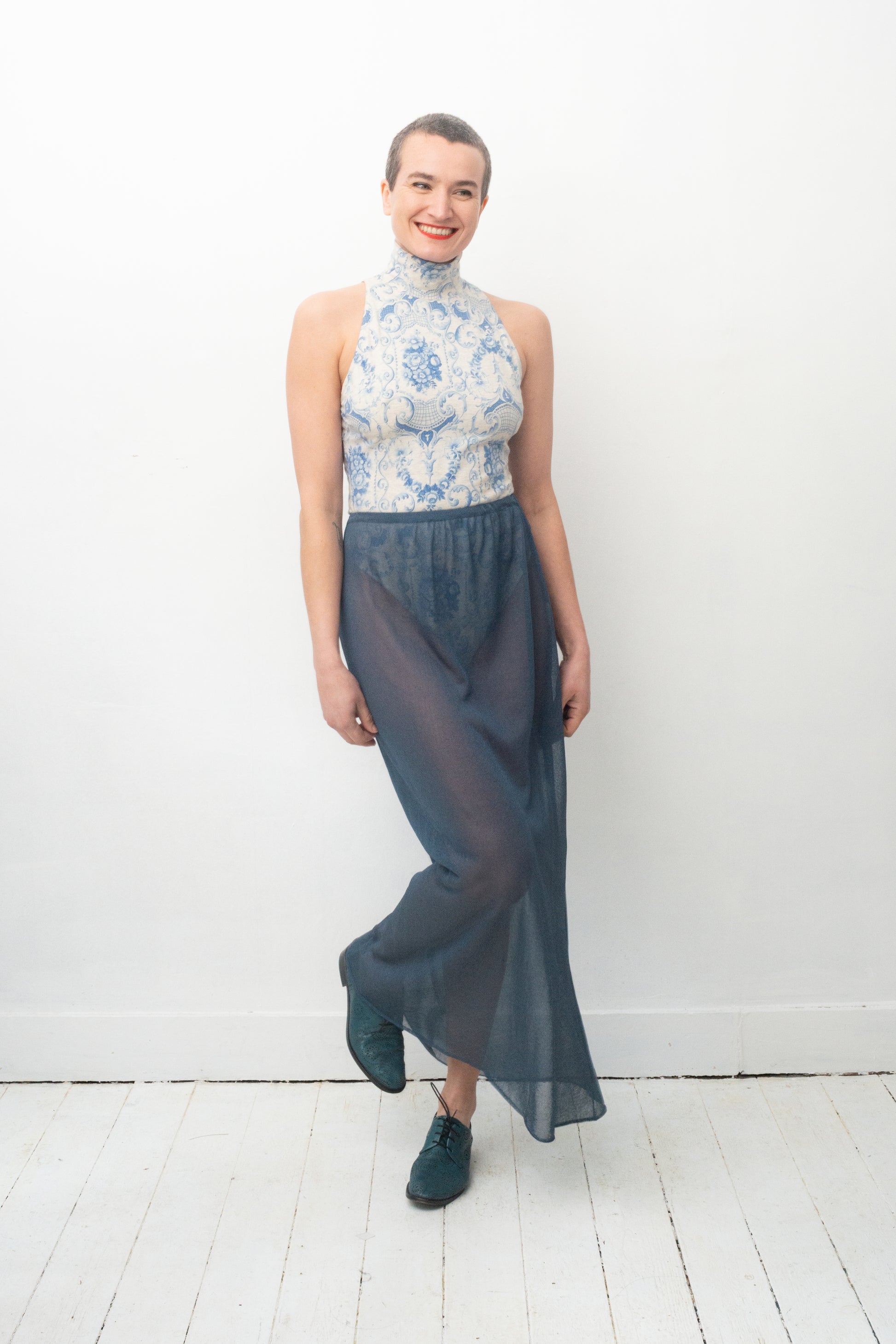 Here worn with a 2000's Anna Sui blue knit skirt, also available online