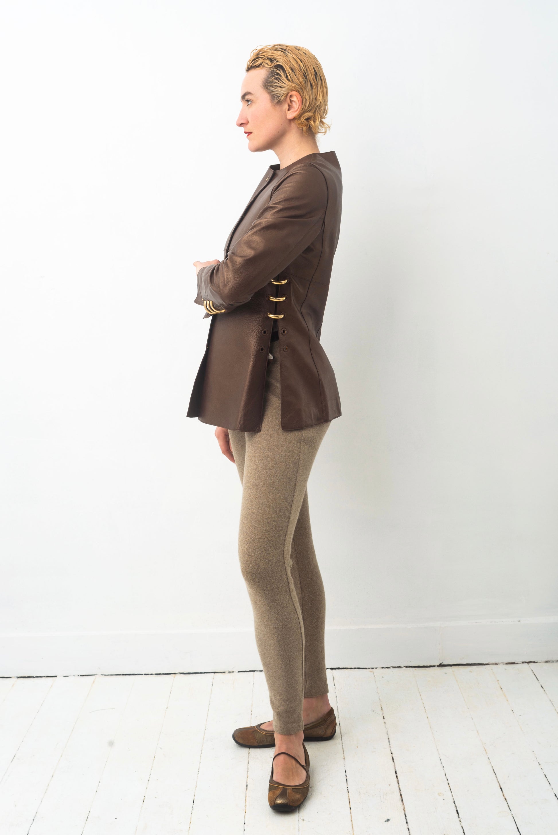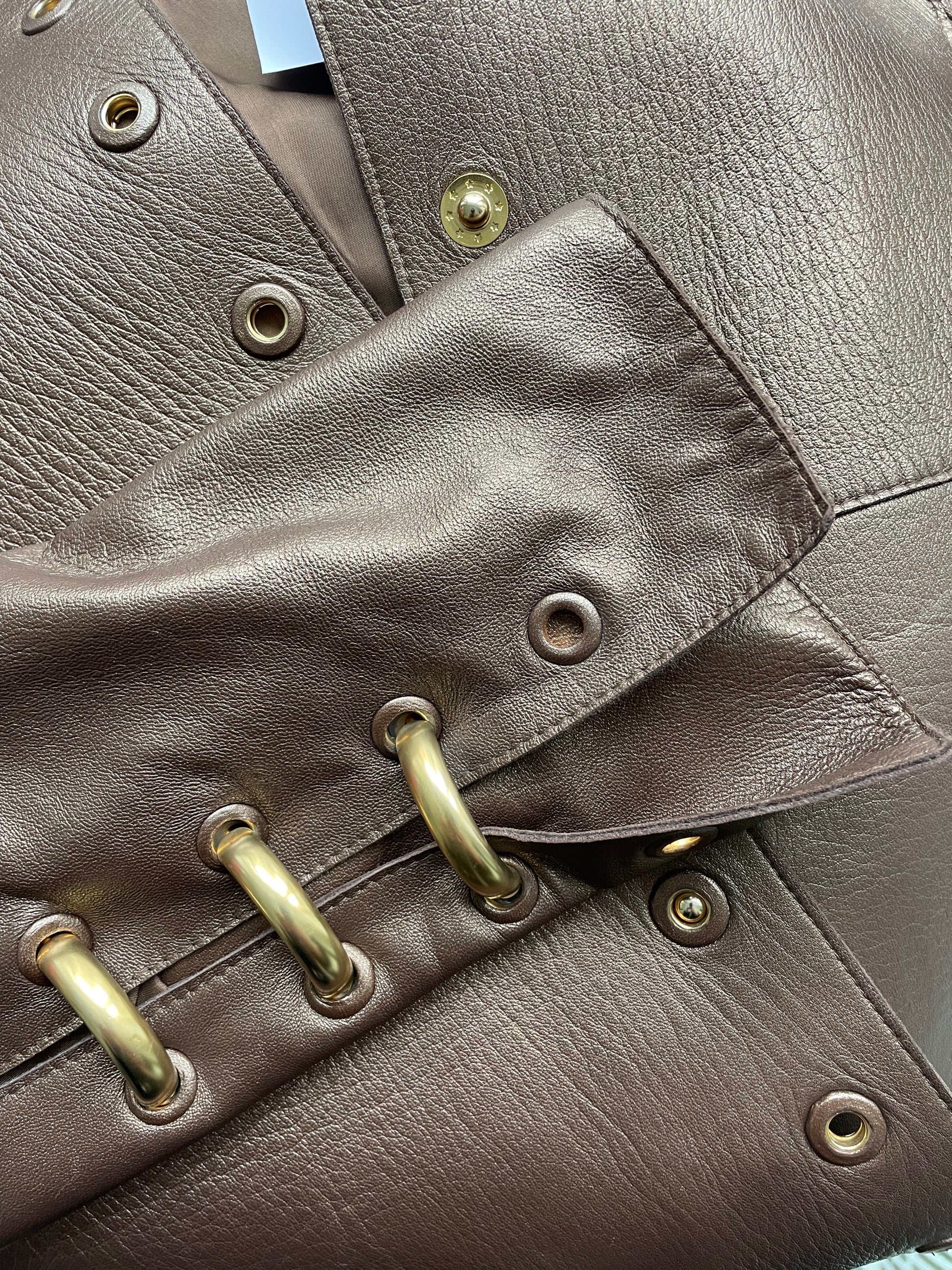 Gianfranco Ferre 80´s bronze leather jacket with golden pierced rings